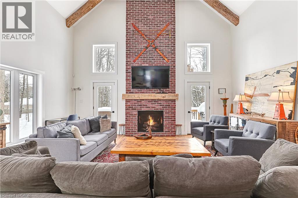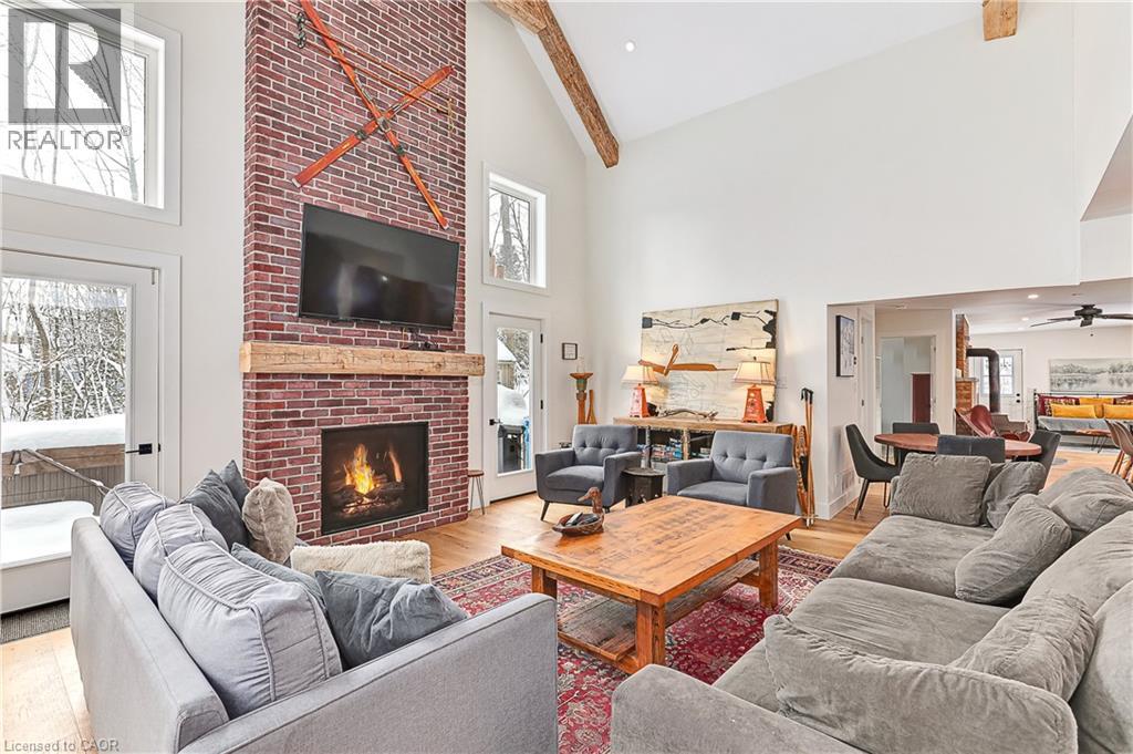 Spectacular year-round family retreat in the heart of Eugenia Village. Beautifully renovated in 2019, this 2,100+ sq ft modern home checks all the boxes with 5 bedrooms, 3 full bathrooms and a best-in-class open-concept layout built for entertaining. The showpiece kitchen includes an extra-large island and flows into a bright living area featuring a soaring 2-storey brick fireplace with a frameless Town & Country gas insert. White oak plank flooring throughout the main level adds a warm, contemporary feel. Designed for large groups, the home offers a private lower-level suite, a generous principal bedroom, and excellent indoor/outdoor usability. Step outside to relax in the 6-person hot tub, unwind around 2 firepits, or enjoy the wooded lot and charming bunkie with hydro. Just 7 minutes to Beaver Valley Ski Club, and a short walk to Lake Eugenia’s crystal-clear waters for boating, paddleboarding, swimming and fishing. Minutes to the Bruce Trail, Eugenia Falls Conservation Area. Exceptional value for a turnkey getaway, full-time home, or income-producing investment in one of Ontario’s most sought-after four-season destinations. (id:4555)