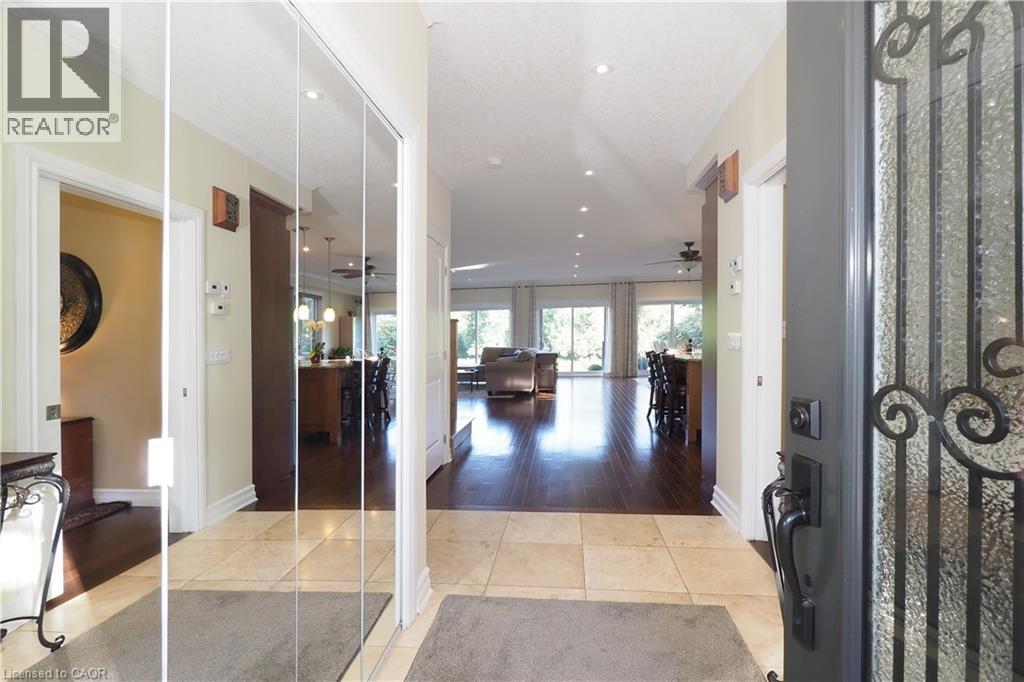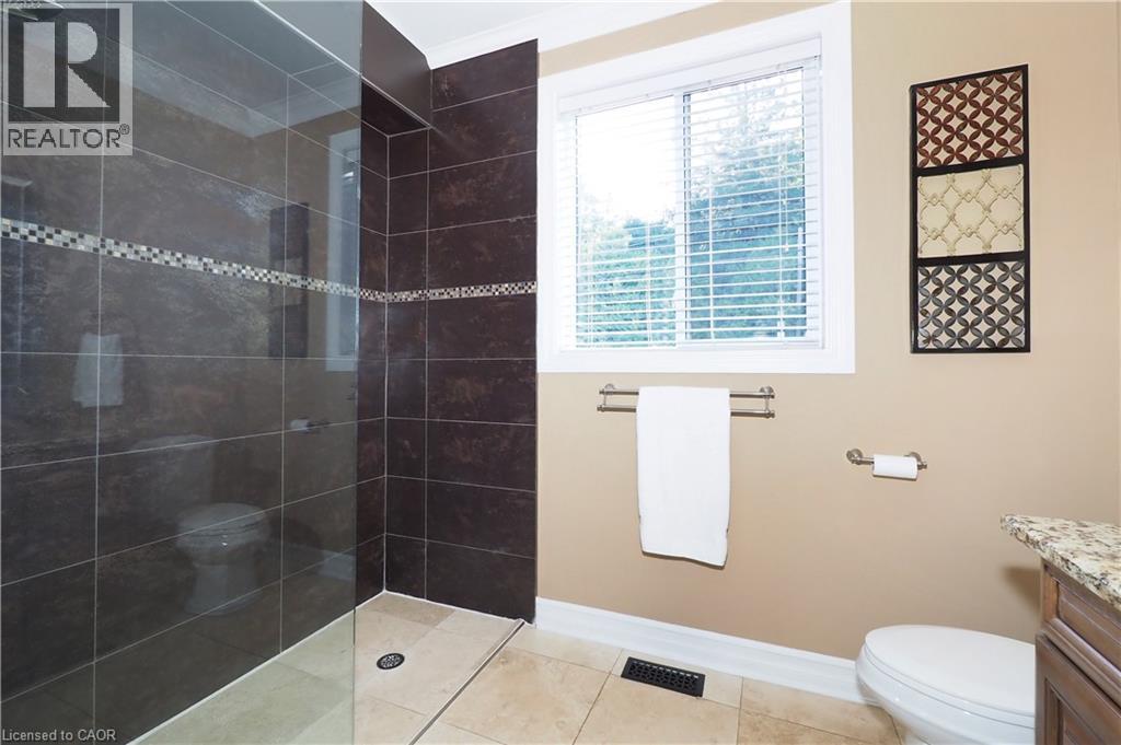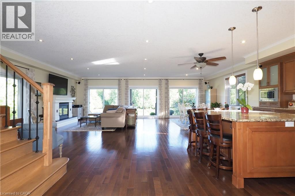 Welcome home to a stately and luxurious waterfront oasis. With a solid palatial cultured Arriscraft stone exterior, a thoughtfully designed placement of windows and balconies, an impressive overall architectural design that enhances curb and riverside appeal (not to mention interior ergonomic comfort), this home has so much more than meets the eye. Consider the following quality enhancements: A rocklike ICF structure with additionally augmented insulation, a highly efficient, multi-zoned supplementary in-floor heating system, a wheelchair friendly interlocking stone front entrance that transitions seamlessly to a spacious open concept main floor living area, a massive driveway, an oversized garage with in-floor heating, a main floor bedroom and 3 piece bathroom with roll-in shower, a separate great room with bathroom that could easily be converted to an in-law suite with separate entrance, and so much more. This spacious executive home with its perfectly sublime combination of comfort and convenience is within a short commute to Guelph and Kitchener-Waterloo, as well as within cycling distance to Elora and walking distance to downtown Fergus. Live a year-round cottage lifestyle without sacrificing urban convenience. Book your viewing and come see for yourself. Again, this home offers so much more than meets the eye. (id:4555)