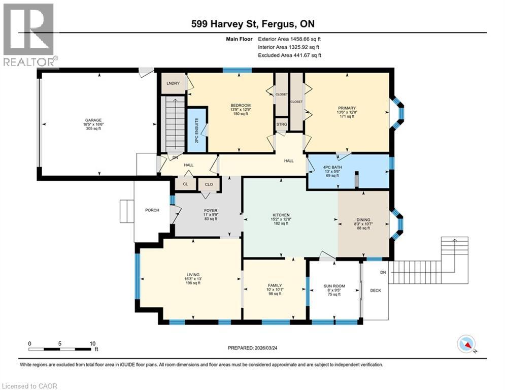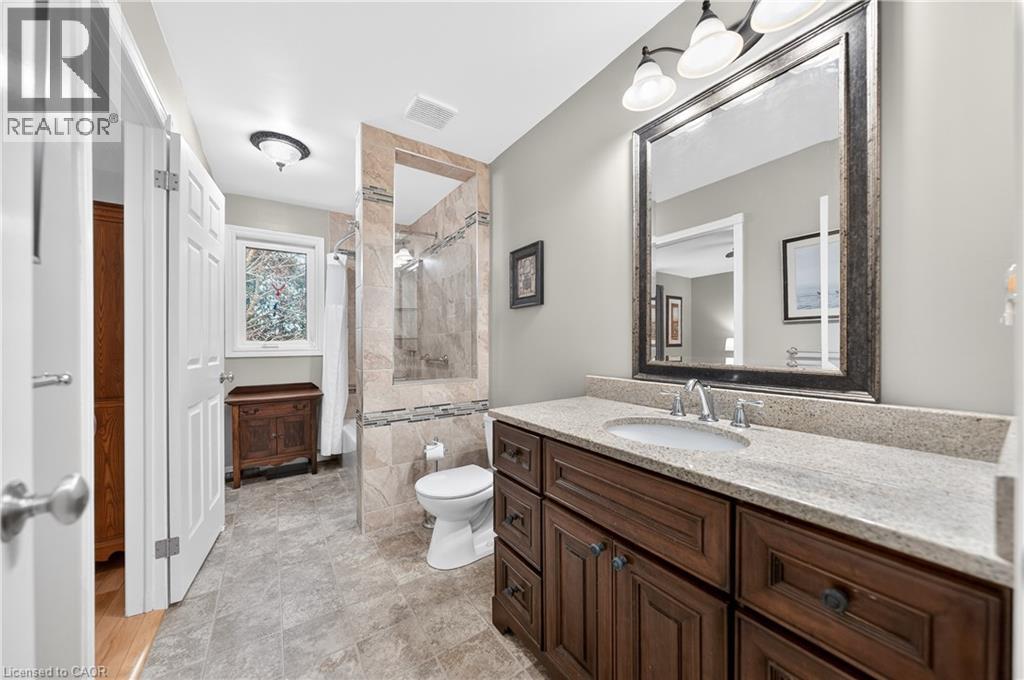Beautiful Wrighthaven built bungalow in a very desirable Fergus neighbourhood, a great location close to Downtown Fergus, local schools, Sportsplex and shopping etc. This immaculate bungalow has a generous size foyer, beautiful maple hardwood flooring throughout the main floor, a nice bright living room with vaulted ceiling, a formal dining area, the kitchen has been beautifully renovated with custom cabinetry, quartz counter tops, ceramic tile backsplash and Maytag stainless appliances, a good sized dinette area and a 75 sq ft sunroom with patio doors leading out to a deck overlooking the nicely landscaped backyard. The main floor also has 2 good sized bedrooms, the primary bedroom has a cheater style 4piece renovated bathroom, the second bedroom comes with a Murphy bed, a 2 piece en-suite as well as in-suite laundry. Head down to the finished walkout basement and you will find the 2 bedroom in-law suite with a 4 piece bathroom, very spacious open concept living area, a well equipped kitchen, dining area, living room with gas fireplace, storage and laundry room for this unit, and a walkout leading to a nice interlocking stone patio. This is a perfect home for anybody looking for additional accommodation with a separate entrance for family members, or making the suite into a legal basement unit subject to permits for additional income, or even additional living space for the larger family. (id:4555)