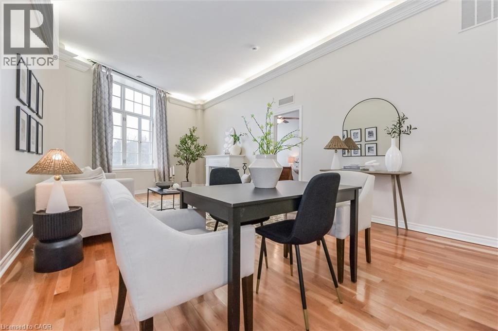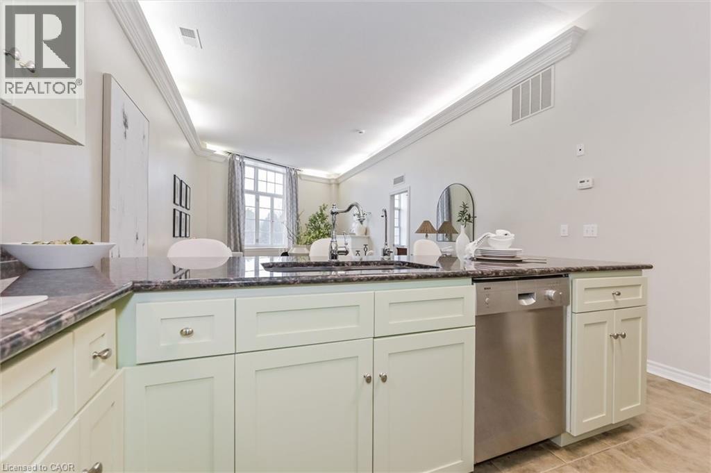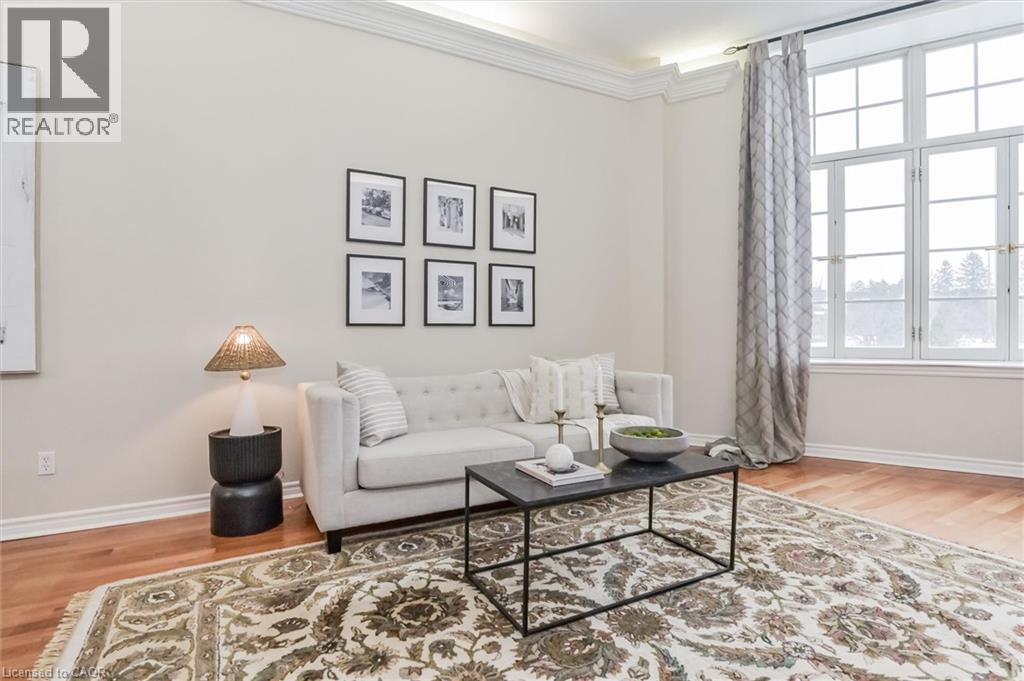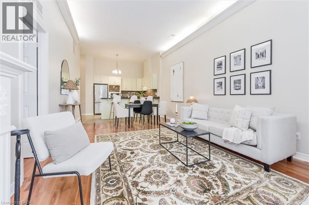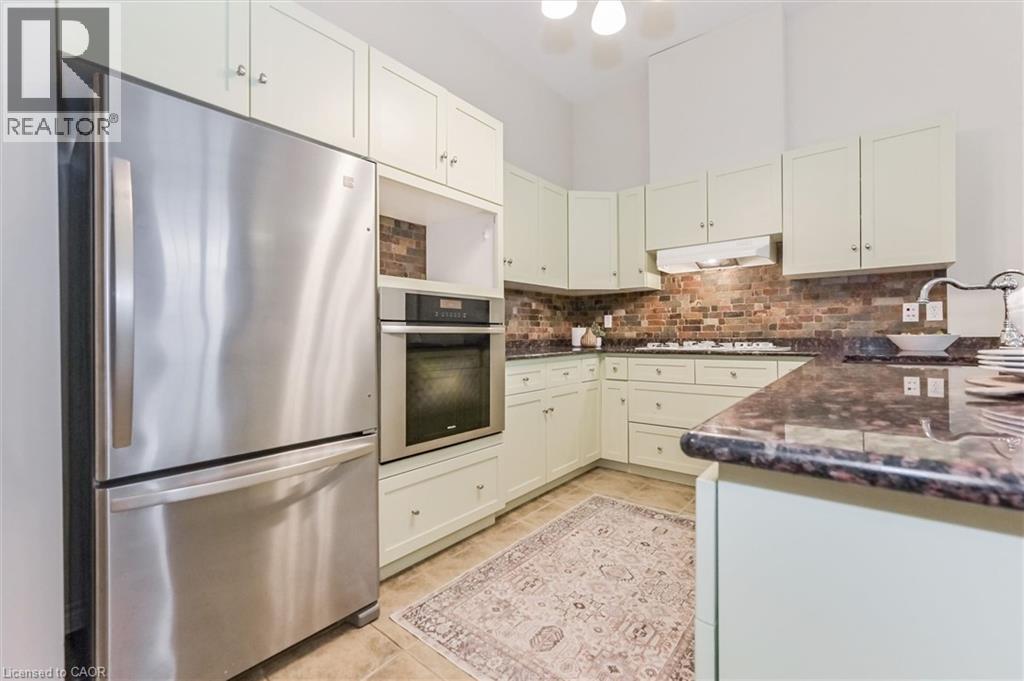 Heritage Charm Meets Riverside Serenity. A rare opportunity to downsize without compromise: Suite 104 at the Fergus Mill offers unmatched value with **6 months of condo fees included in the purchase**, giving you a worry-free start to homeownership. Set in one of Centre Wellington's most iconic buildings, this ground-level condo blends historic character with modern comfort. It features soaring ceilings, hardwood floors, and oversized windows that frame breathtaking views of the Grand River Falls. Thoughtfully designed for ease and elegance, the spacious 1-bedroom-plus-den layout includes two full bathrooms, a beautifully updated kitchen with high-end appliances, and a cozy fireplace perfect for quiet evenings. Enjoy direct access to scenic walking trails, patios, and tranquil waterfront views. Located just steps from downtown Fergus with its cafes, shops, and restaurants and minutes from the lively village of Elora. Explore nearby St. Jacobs and its famous farmers' market, or head into Kitchener-Waterloo for vibrant city life, all within a 30-minute drive. Stratford's acclaimed theatre district and Lake Huron's cottage country are also nearby for easy escapes. With two parking spaces (including a private garage), a personal storage locker, and pet-friendly amenities, this turnkey suite is truly the complete package. Whether you're retiring, rightsizing, or seeking a peaceful pace of life, this is your front-row seat to nature, community, and timeless architecture. (id:4555)