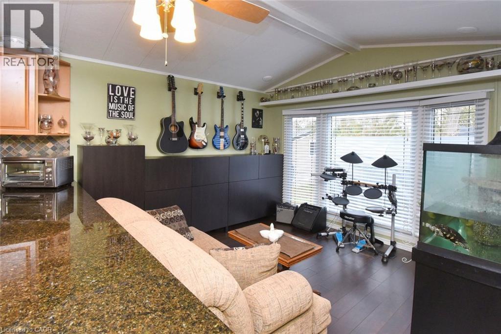 Amazing and exceptional private one of a kind setting for this spacious two bedroom home with many quality upgrades. Thoughtfully landscaped with a cascading waterfall. goldfish pond and terraced patio area. Must be seen! Two private driveways with an abundance of parking. Two spacious garden sheds. Wrap around deck with Gazebo - overlooking the ravine. A serene private setting for quiet enjoyment in this year round, all ages park adjoing the hiking trails. (id:4555)