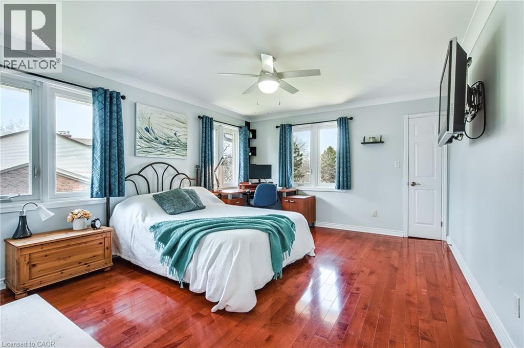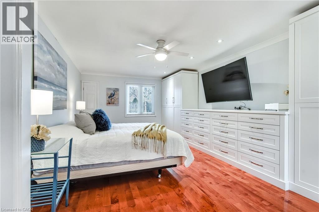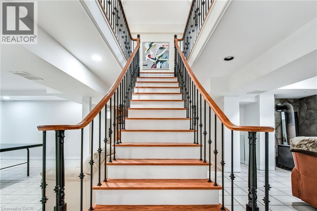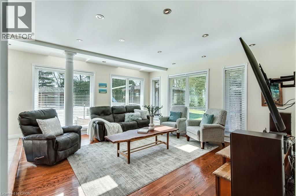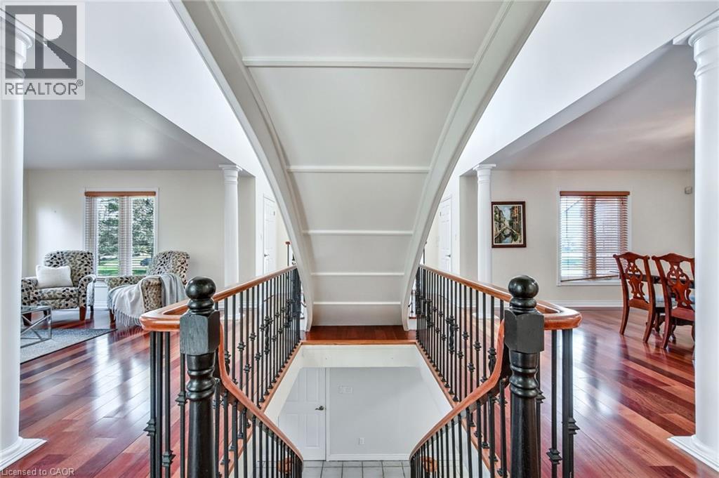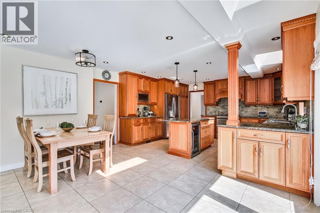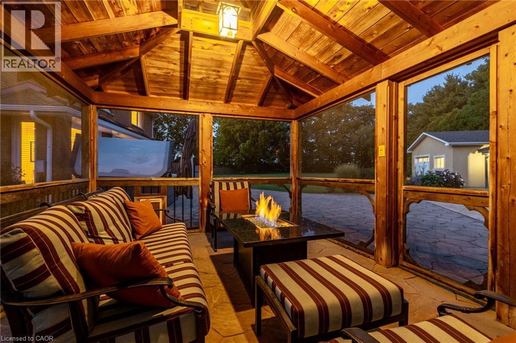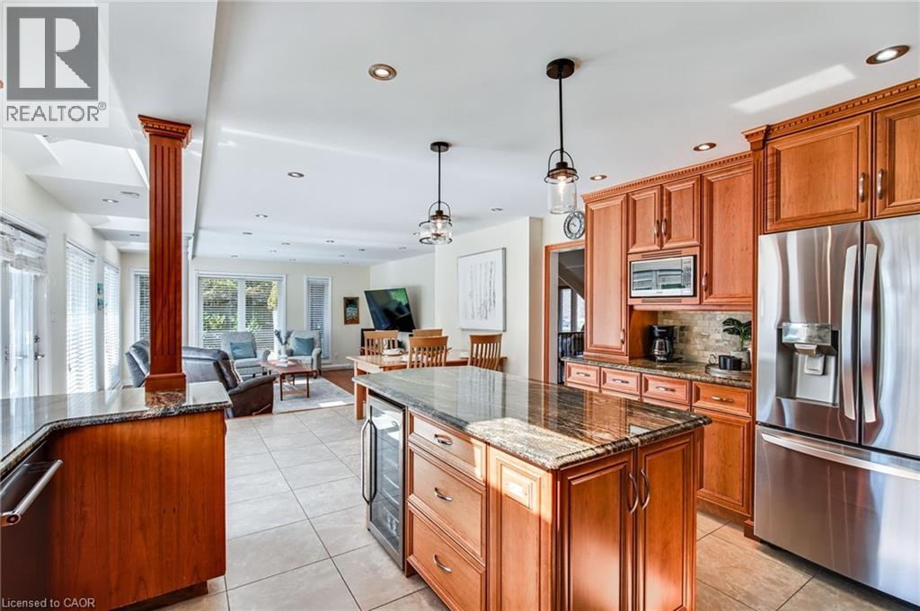 Situated on a quiet, beautifully manicured 0.99-acre lot in one of the most exclusive enclaves in the area, this impressive two-storey brick estate immediately captures attention with its elegant curb appeal, circular driveway, and landscaped centrepiece. This home has it all, offering four bedrooms, four bathrooms and over 4000 square feet of living space. No rear neighbours, an inground pool, hot tub, workshop & gazebo with a natural gas fireplace outside. The backyard is flat, unobstructed and surrounded by trees. Plenty of useable space for entertaining, family games/events and a huge ice rink. Breathtaking foyer illuminated by cascades of natural light and a stunning centre staircase. Exquisite Brazilian hardwood flooring flows seamlessly through the formal dining and entertainment spaces, where a natural gas fireplace adds a warm, ambiance ideal for both grand entertaining and intimate gatherings. The custom kitchen is a masterpiece of craftsmanship, featuring cherry maple oak soft-close cabinetry, under-cabinet lighting, heated floors, granite countertops, skylights, and a toe-kick central vacuum for effortless living. The step-down living room features large windows overlooking the private back yard, pot lights through-out and gleaming hardwood floors. The expansive primary suite impresses with two walk-in closets, custom built-in wall-to wall cabinetry, and an elegant ensuite featuring dual vanities and a walk-in shower. The fully finished basement features a spacious recreation room, a bathroom, a private office, an oversized storage room, and a separate walk-up staircase leading directly to the garage. Nestled in a prime location just five minutes from Waterdown, this location offers unrivaled access to excellent schools, parks, trails, golf courses, and fitness centers, a rare setting where every lifestyle amenity is within easy reach, yet the surroundings remain serene and exclusive. (id:4555)