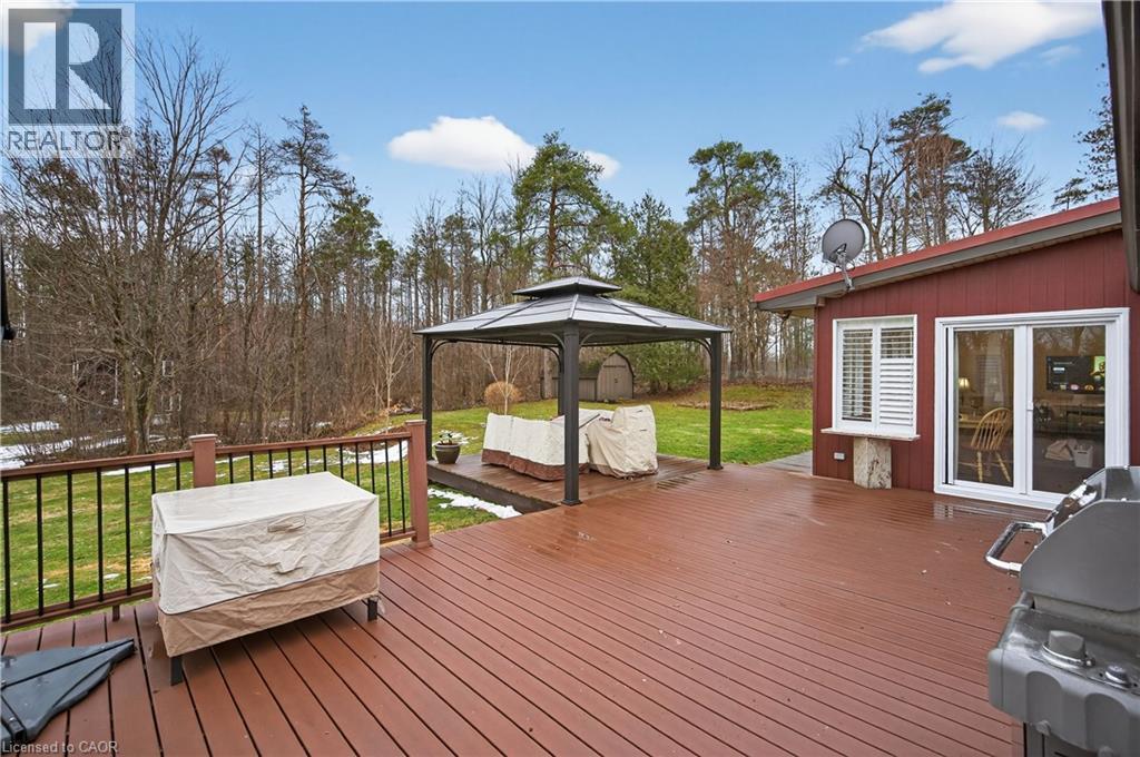 Tucked away on a breathtaking 10-acre wooded property just outside Carlisle, this beautifully updated 3-bedroom, 2-bathroom bungalow offers the perfect blend of privacy, comfort, and rural charm. Surrounded by mature trees and natural beauty, the home features a highly functional layout designed for everyday living and effortless entertaining. The inviting family room showcases spectacular views of the property, creating a peaceful space to relax while taking in the surrounding landscape. Thoughtful updates throughout the home provide modern comfort while maintaining the warmth and character you’d expect from a country retreat. Beyond the home itself, the property truly shines. Two versatile outbuildings offer exceptional flexibility for hobbyists, storage, workshops, or future projects. One of the buildings includes an upper level with exciting potential to be converted into additional living space, guest quarters, or a private studio. Beautiful wrought iron fencing with security gates enhances both the privacy and presence of the property, creating a grand yet welcoming entrance. Despite its tranquil setting, the location offers easy access to both Highway 401 and Highway 403, making commuting simple while remaining close to everyday amenities. This is the type of property that rarely becomes available - a private country escape with space, versatility, and convenience all in one remarkable setting. (id:4555)