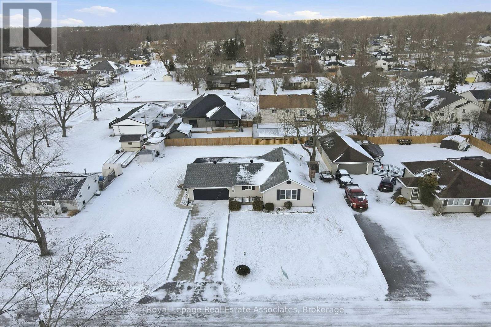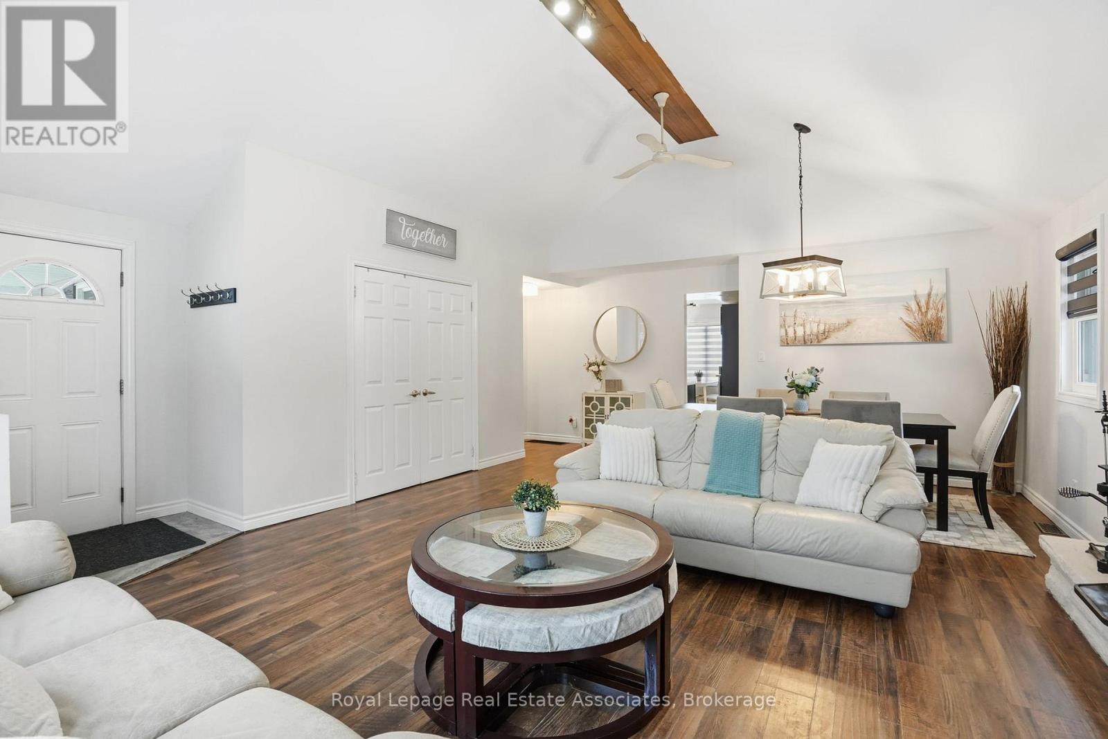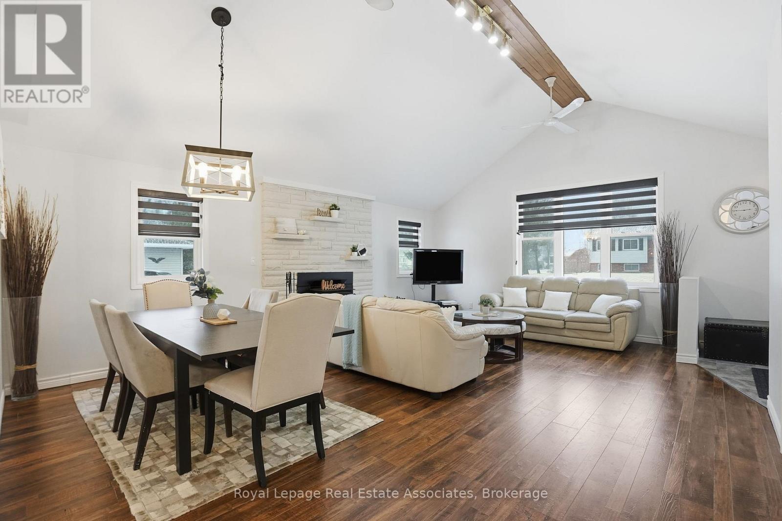 Enjoy one-floor living in a superb location just a short walk to the beautiful beach in upscale Ridgeway. This well-maintained, sprawling bungalow sits on an impressive 104 x 125 lot, offering exceptional space, privacy, and versatility. Inside, you'll find an elegant great room with soaring 12-foot ceilings and a striking brick fireplace, creating a warm and inviting focal point. The large eat-in kitchen offers easy access to the backyard and deck, making it perfect for everyday living and entertaining. The home features three generously sized bedrooms plus a den, ideal for a home office or additional living space. Additional highlights include a huge garage with high ceilings, and a generous concrete driveway with ample parking. A fantastic opportunity in a highly desirable, walkable beachside community. (id:4555)