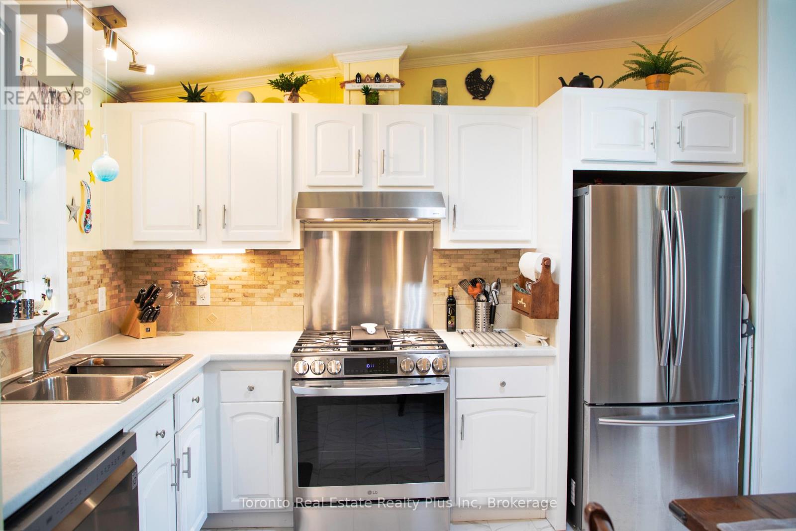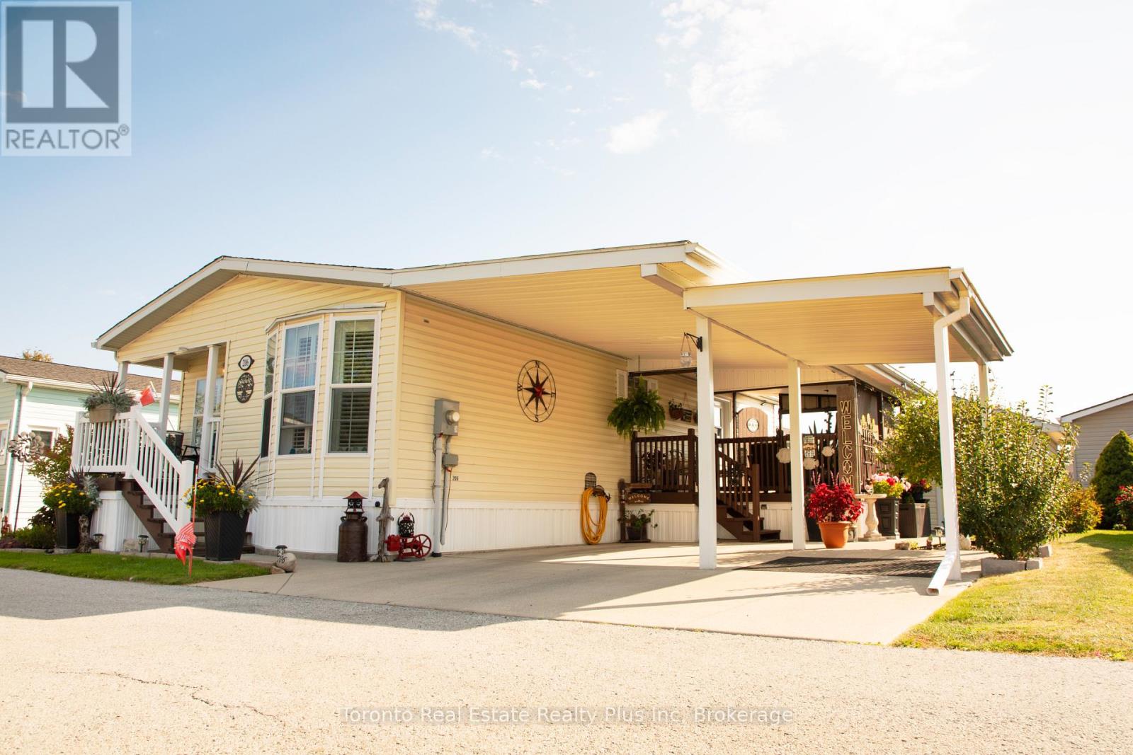Welcome to 20603022 Townline Rd (Trillium Trail) - a beautiful updated 2-bedroom, 2-bath bungalow in the sought-after Parkbridge Black Creek Adult Lifestyle Community. This move-in ready home offers a concrete double driveway, carport, covered deck with back entrance, and a large shed on a Concrete Slab. The drive way was originally configured to accommodate two vehicles, including a pickup truck: the current owners later added an extended carport to house a golf cart, which can easily be removed if additional paring space is desired. Inside you'll find newer floors, California Shutters, and a bright open layout for easy living. The primary suite features a walk-in closet and ensuite, while the guest bedroom enjoys it own 4-piece bath. Recent upgrades include furnace (2022) owned electric hot water tank (6 yrs) roof (2022) and shed rood (4 yrs). Living here means more than just a home - it's a lifestyle. Enjoy a secure gated community with indoor and outdoor pools, sauna, library, tennis courts, community hall and over 20 social activities designed for active retirement living. Monthly Fees: Land Lease $825.00 + Taxes $222.58 = $1,047.68. (id:4555)