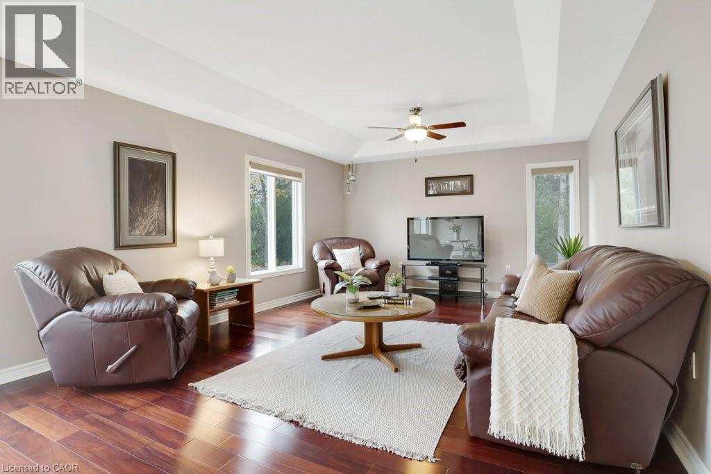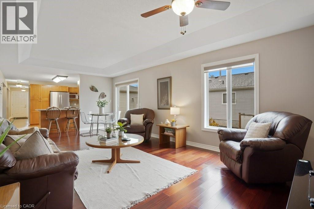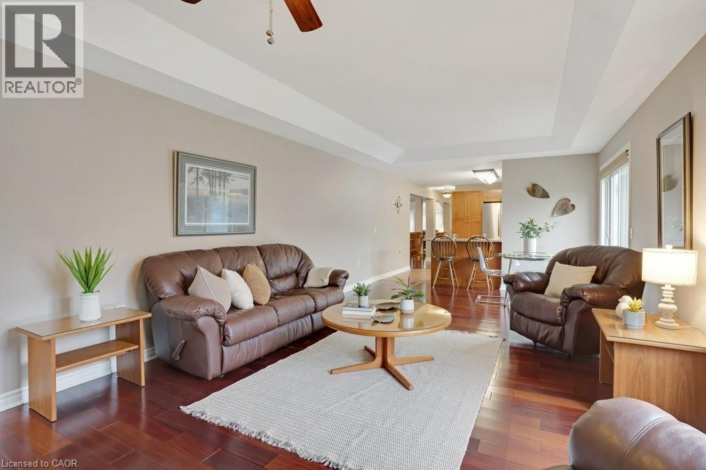 Looking for affordable luxury in an active adult community? Welcome to 117 Bushmill Circle located in in Antrim Glen - a Parkbridge Adult Lifestyle Community located in a peaceful rural setting, yet only 15 minutes to Cambridge or Waterdown. This custom designed home takes advantage of its private court setting and wooded backdrop with no rear neighhbours. The manicured gardens add curb appeal as you walk up to the front door and covered porch area finished in exposed aggregate cement. The 1667 Sq. Ft. main floor with an additional 1050 Sq. Ft of finished living space in the lower level ensures comfort along with spaciousness. The modern kitchen opens to the oversized family room with its vista views and access to the exposed aggregate patio taking advantage of privacy and the properties natural setting. The primary suite naturally has its own private bath and full walk in closet. The finished lower level offers lots of opportunity to entertain with its large open space, fireplace, spare bedroom or den and full bathroom. The double car garage and double wide drive way ensures convenient parking options. Antrim Glen is more than just a place to live; it's a lifestyle. Residents enjoy access to an array of amenities, including a community centre, heated saltwater pool, and various organized activities that foster a lively and engaging environment. Monthly fees of $1208.36 includes property taxes and unlimited access to these exceptional amenities. Antrim Glen provides a quiet and safe environment where neighbours become friends, creating a social and safe environment to call home. Whether you're looking to relax by the pool, socialize with fellow residents, or simply enjoy the tranquility of your own home don't miss this opportunity to experience the perfect blend of independence, community, and luxury. Schedule your private tour today! (id:4555)