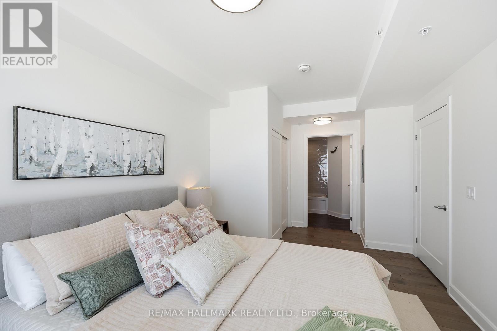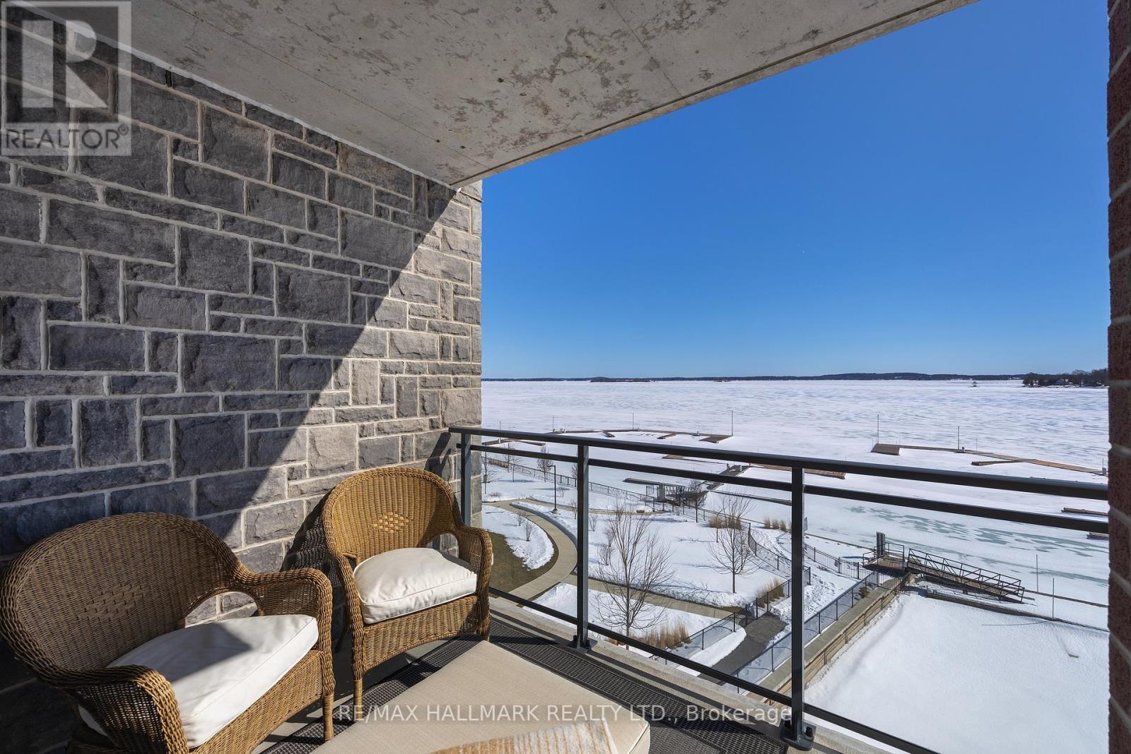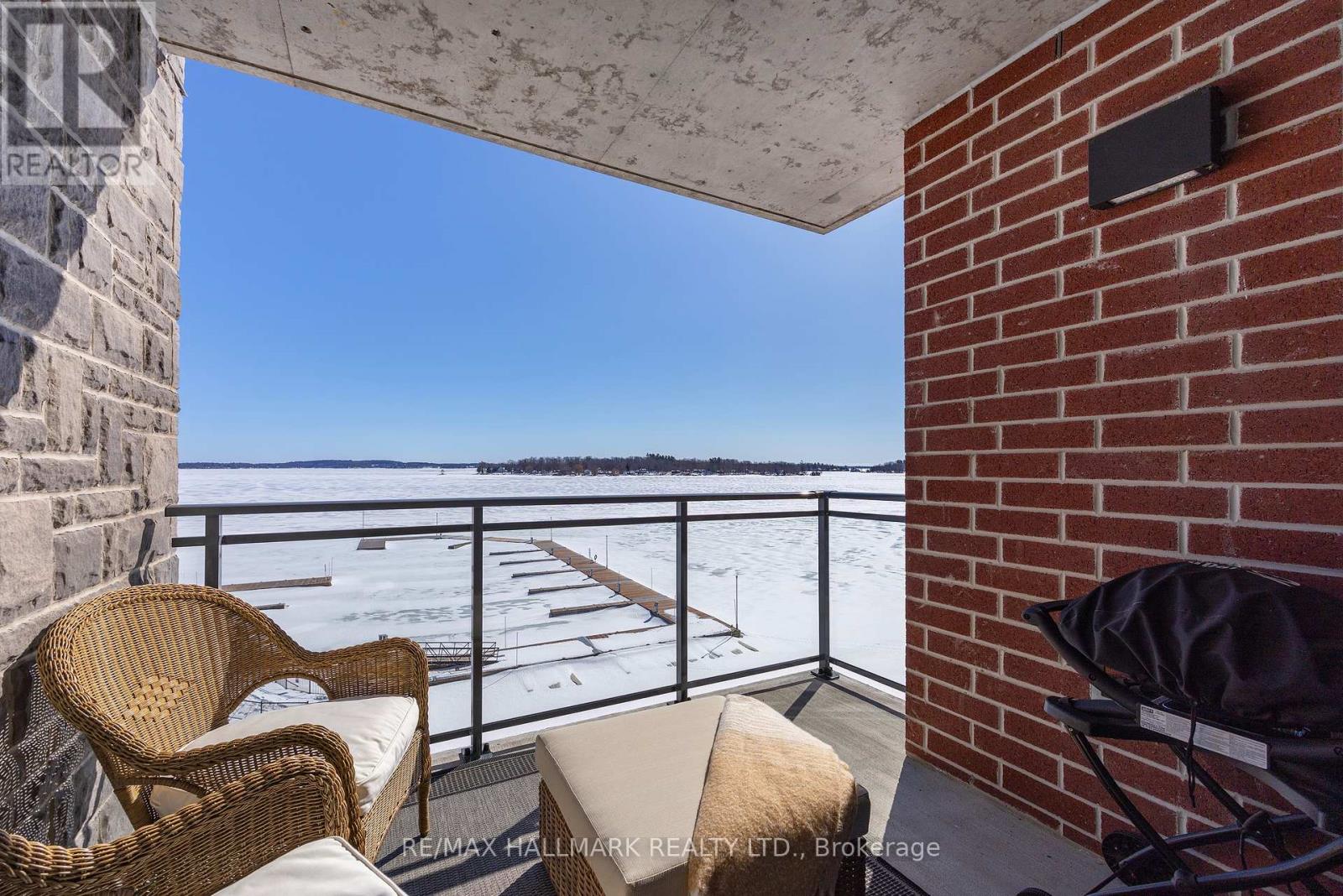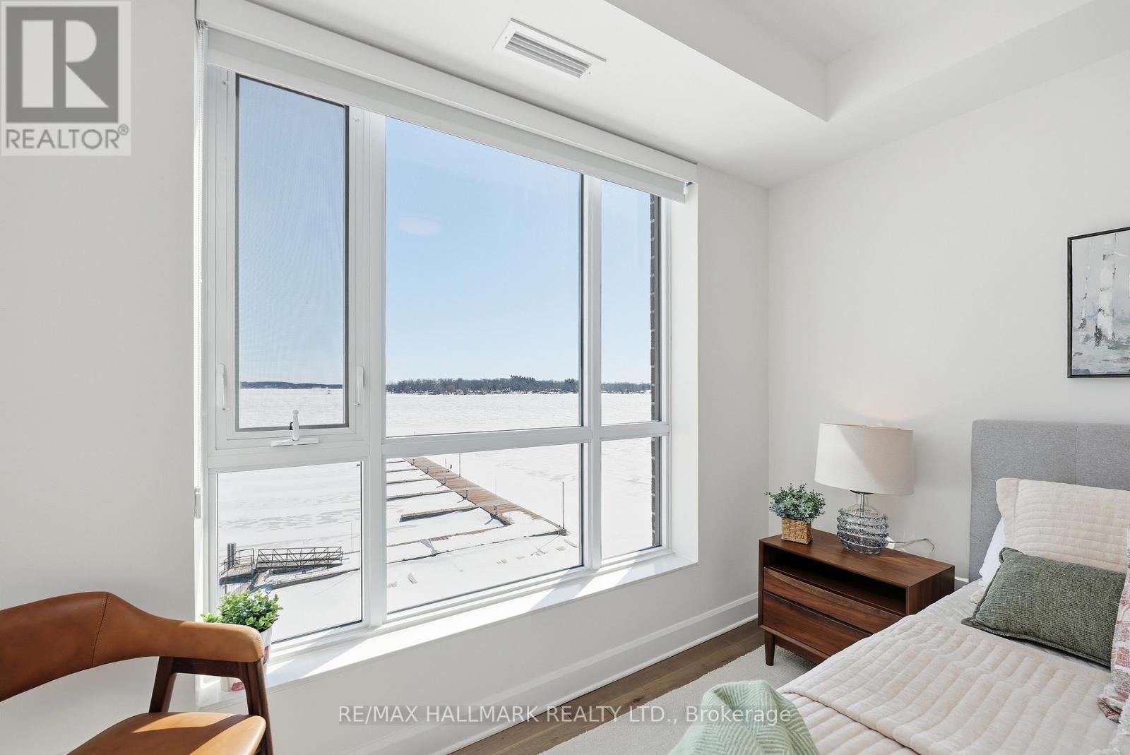 Modern 1000 Islands Lifestyle ~ water, trees & wildlife. Come & experience Stone & South on the St. Lawrence River. Designed for an active, easygoing lifestyle, this 1-bedroom + den offers a comfortable & convenient waterfront retreat. Features include; smooth ceilings, hardwood floors, quartz counters, and well-proportioned rooms filled with abundant natural light. The practical 802 sq ft layout includes a private balcony with unobstructed southwest water views, while the flexible den space adapts easily as a home office, a dedicated dining area, or a cozy guest room. Convenient underground parking with easy access to a large format storage locker. Built by CaraCo & designed by Chamberlain Architect in 2021, the building amenities include; fitness centre, party room, visitor parking, BBQ patio, and marina access. Efficient central heating & A/C energy incl. in maintenance fee. The 1000 Islands diverse & welcoming community that offers boating, golf, kayaking, swimming, fishing, hiking & so much more! Set in the historic town of Gananoque & steps from Thousand Islands Playhouse. Enjoy community events, walkable shops, pubs, dining, and outdoor sight-seeing. And for those that need a bigger city fix, historic Kingston is only 25 mins away, while Toronto, Ottawa & Montreal are a reasonable cottage drive. Life is better in the Islands! (id:4555)