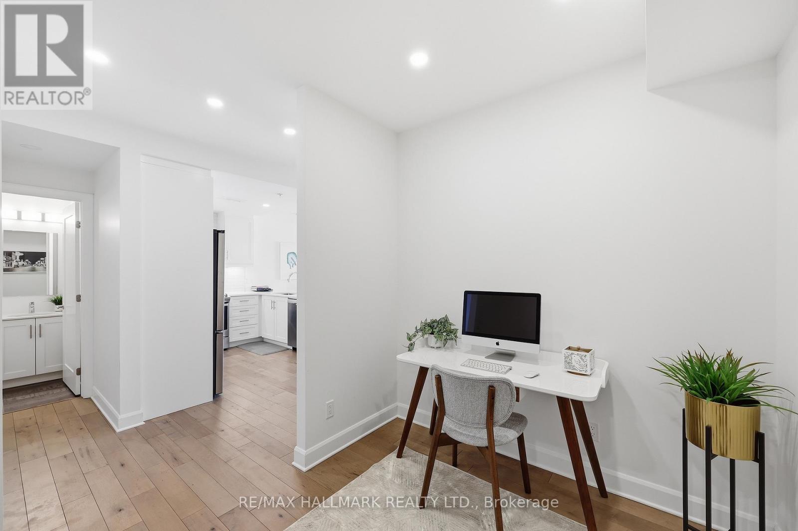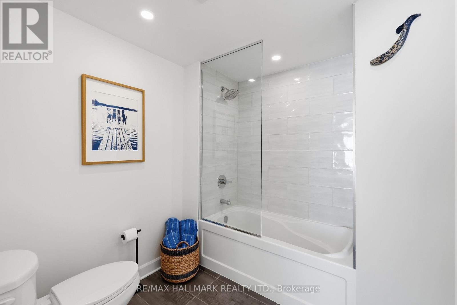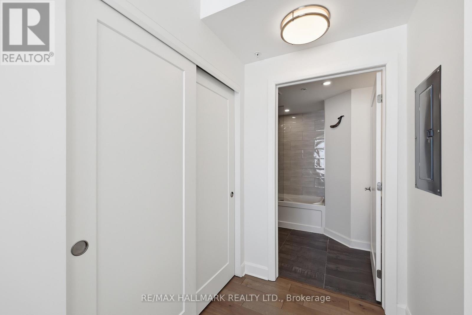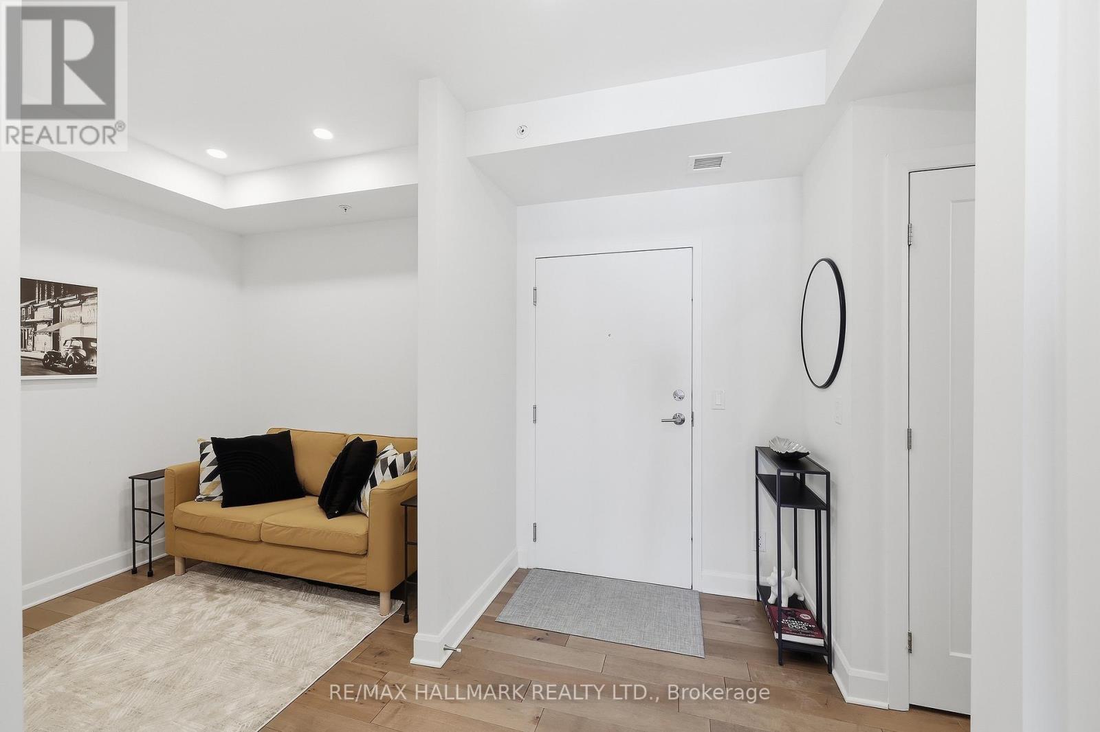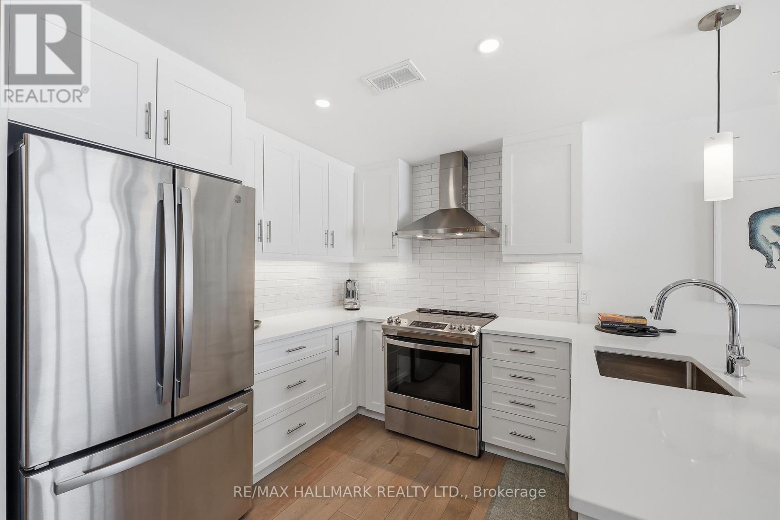 Modern 1000 Islands Lifestyle ~ water, trees & wildlife. Come & experience Stone & South on the St. Lawrence River. Designed for an active, easygoing lifestyle, this 1-bedroom + den offers a comfortable & convenient waterfront retreat. Features include; smooth ceilings, hardwood floors, quartz counters, and well-proportioned rooms filled with abundant natural light. The practical 802 sq ft layout includes a private balcony with unobstructed southwest water views, while the flexible den space adapts easily as a home office, a dedicated dining area, or a cozy guest room. Convenient underground parking with easy access to a large format storage locker. Built by CaraCo & designed by Chamberlain Architect in 2021, the building amenities include; fitness centre, party room, visitor parking, BBQ patio, and marina access. Efficient central heating & A/C energy incl. in maintenance fee. The 1000 Islands diverse & welcoming community that offers boating, golf, kayaking, swimming, fishing, hiking & so much more! Set in the historic town of Gananoque & steps from Thousand Islands Playhouse. Enjoy community events, walkable shops, pubs, dining, and outdoor sight-seeing. And for those that need a bigger city fix, historic Kingston is only 25 mins away, while Toronto, Ottawa & Montreal are a reasonable cottage drive. Life is better in the Islands! (id:4555)