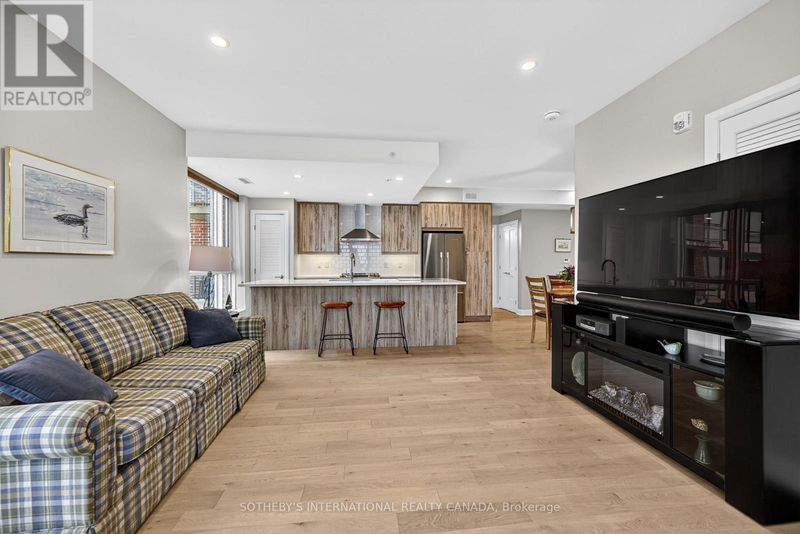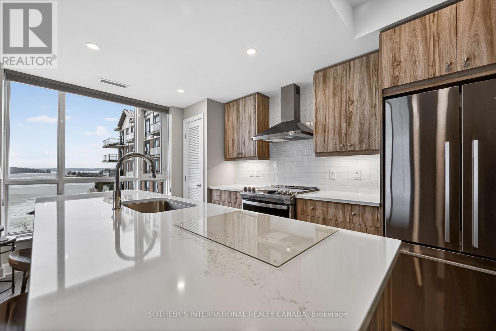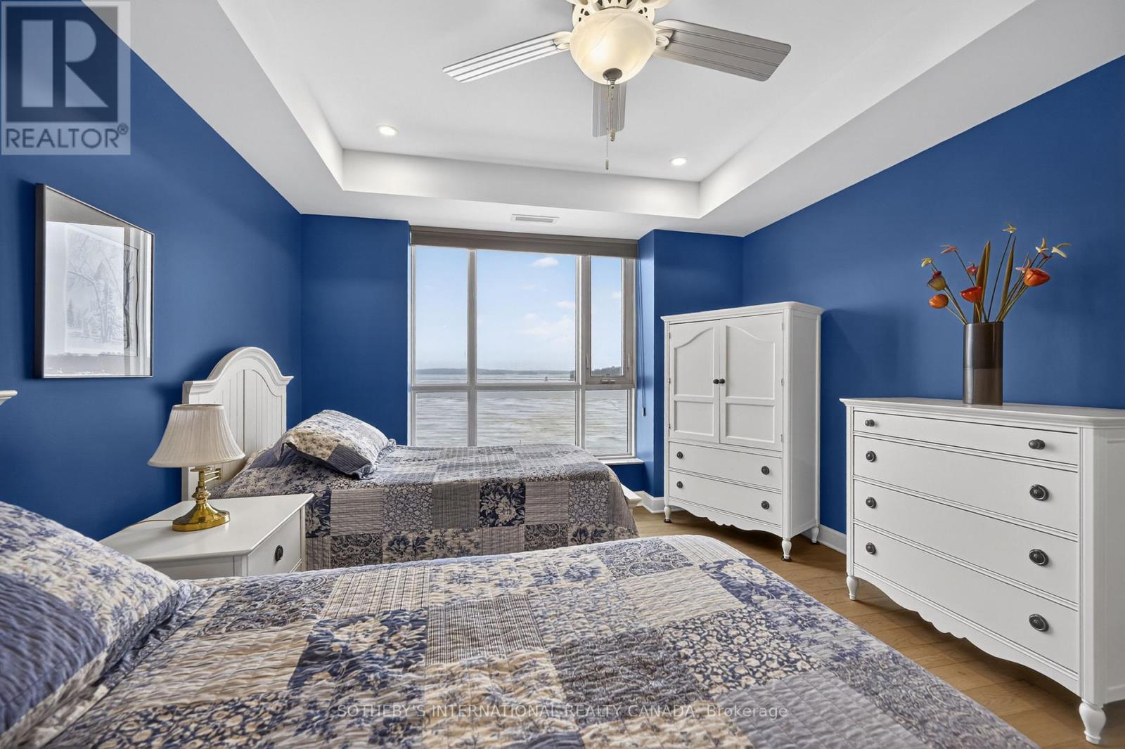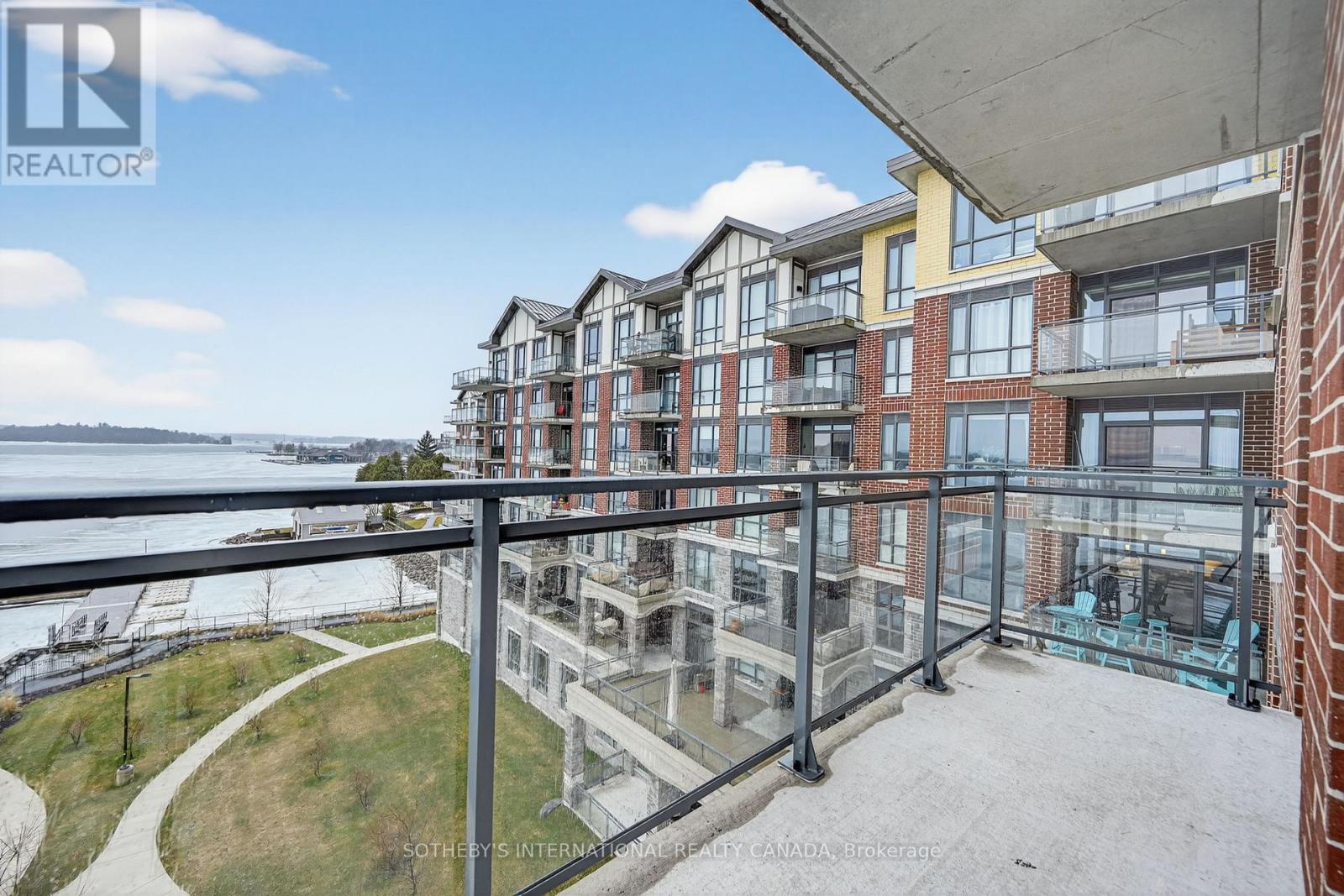 Take note of this luxury Thousand Islands Waterfront 2 bedroom 2 bathroom Condominium available with flexible possession. Imagine spending the summer by the river with marina access and within walking distance of everything you need to enjoy the beauty and charm of this unique area. Your condo features hardwood and ceramic floors, a chef's dream kitchen with an extended island and added cupboard space, in-suite laundry, an ensuite bathroom with heated floors and most importantly, a panoramic view of the St. Lawrence River with a wraparound balcony to fully enjoy it. Click through the photos or take the tour to see how the outdoors pours into all the bright, airy spaces. Temporary rain keeping you indoors? Slip downstairs to the common room for a game of pool or some social interaction, hit the high-end gym/workout space or simply watch the clouds roll by from your floor to ceiling windows. Walk to the Thousand Islands Playhouse, restaurants and all the cultural panache Gananoque has to offer. Your storage locker is just down the hall for easy access. The perfect setup for years of enjoyment is waiting for you. Book a showing today. (id:4555)