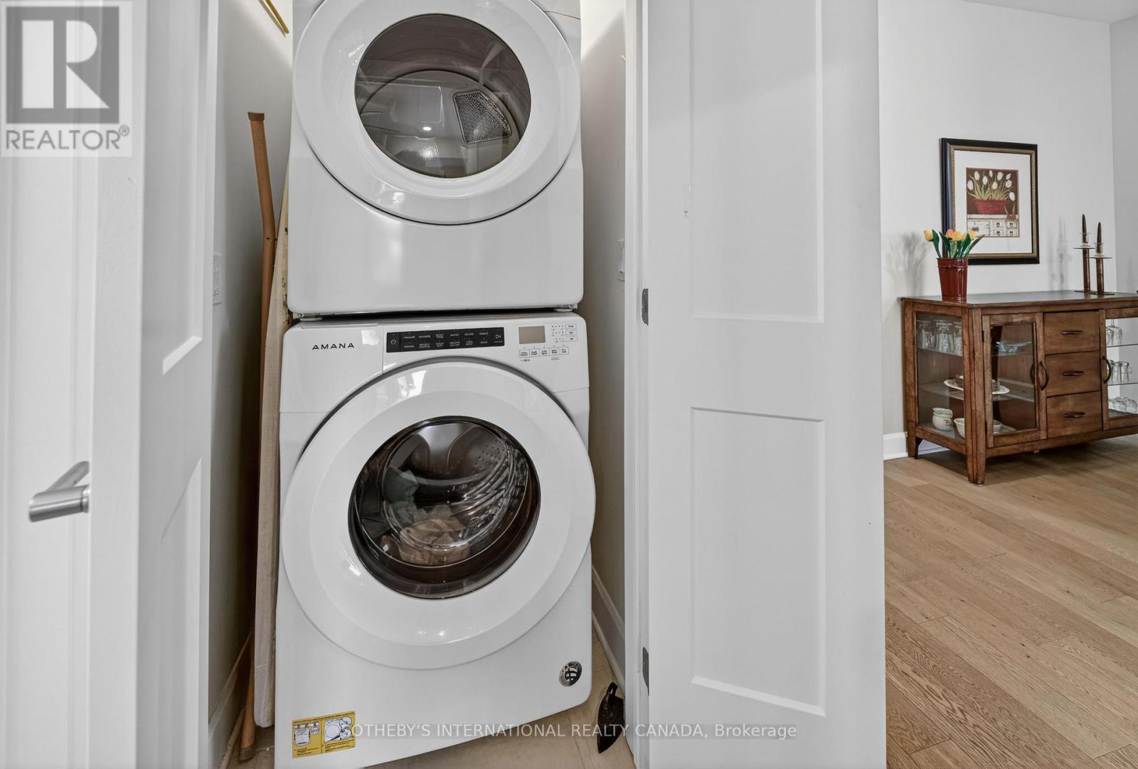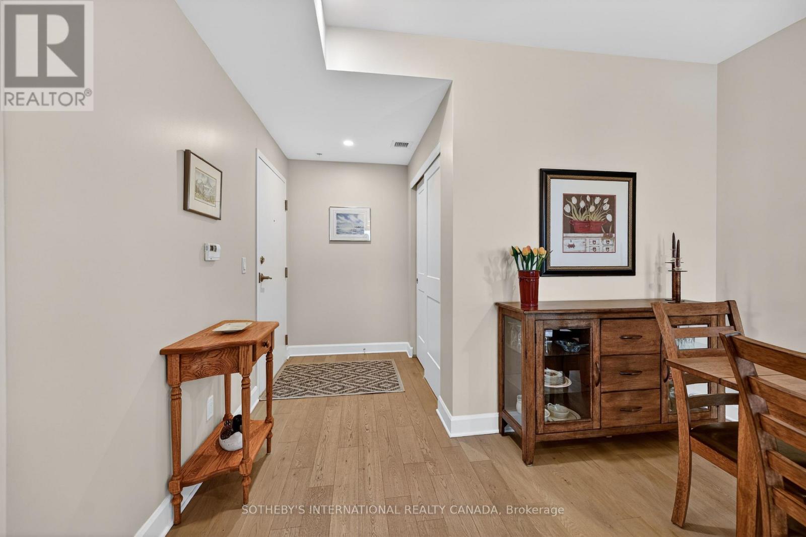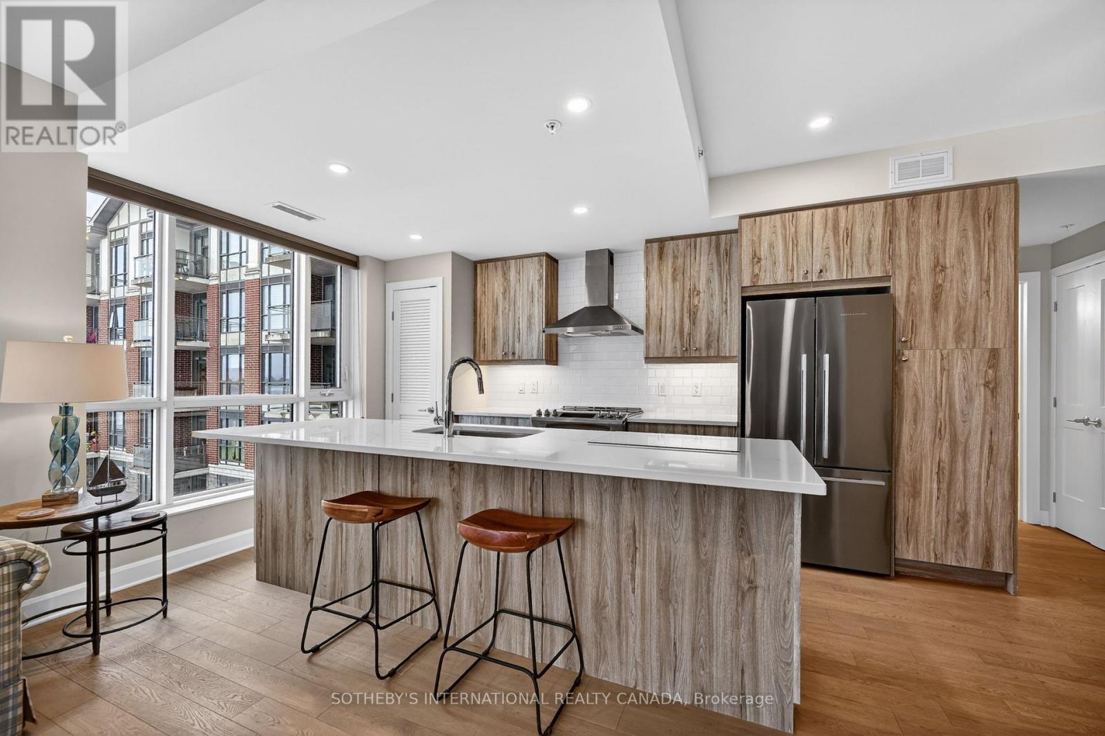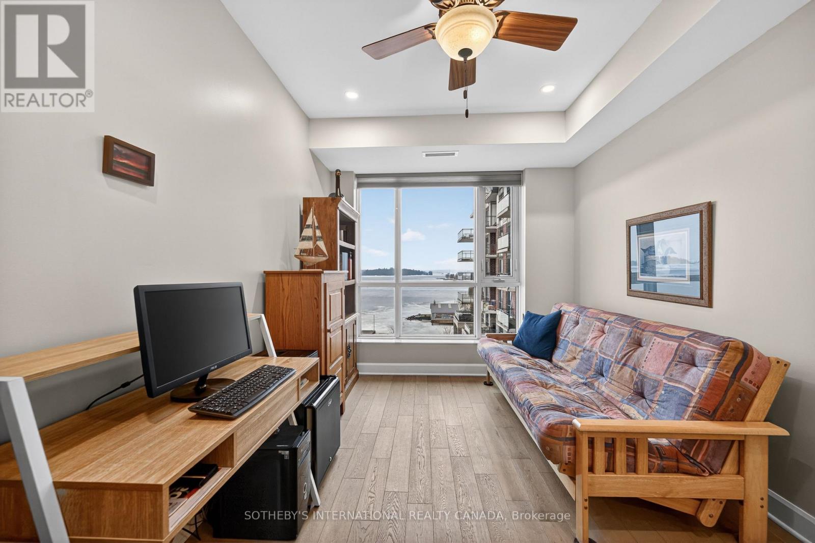 Take note of this luxury Thousand Islands Waterfront 2 bedroom 2 bathroom Condominium available with flexible possession. Imagine spending the summer by the river with marina access and within walking distance of everything you need to enjoy the beauty and charm of this unique area. Your condo features hardwood and ceramic floors, a chef's dream kitchen with an extended island and added cupboard space, in-suite laundry, an ensuite bathroom with heated floors and most importantly, a panoramic view of the St. Lawrence River with a wraparound balcony to fully enjoy it. Click through the photos or take the tour to see how the outdoors pours into all the bright, airy spaces. Temporary rain keeping you indoors? Slip downstairs to the common room for a game of pool or some social interaction, hit the high-end gym/workout space or simply watch the clouds roll by from your floor to ceiling windows. Walk to the Thousand Islands Playhouse, restaurants and all the cultural panache Gananoque has to offer. Your storage locker is just down the hall for easy access. The perfect setup for years of enjoyment is waiting for you. Book a showing today. (id:4555)