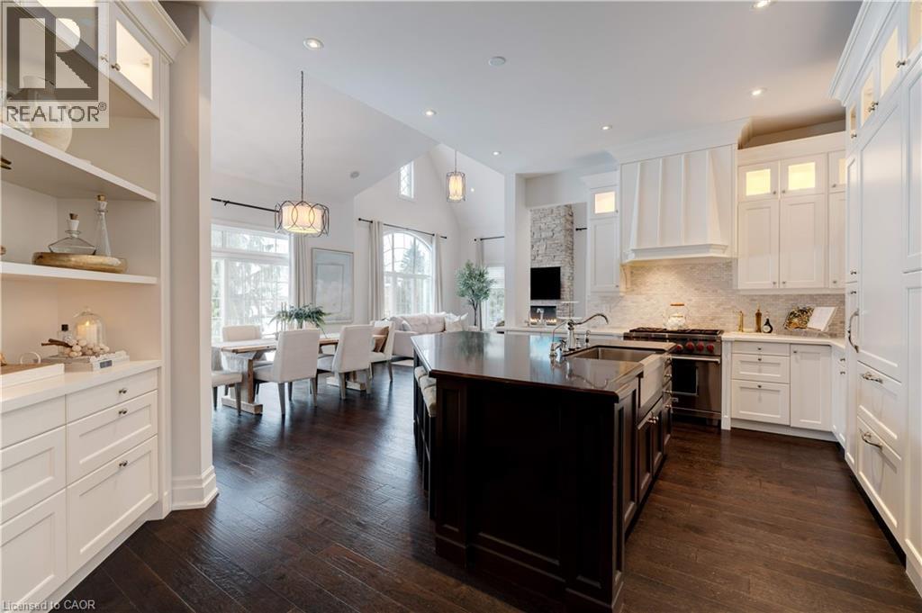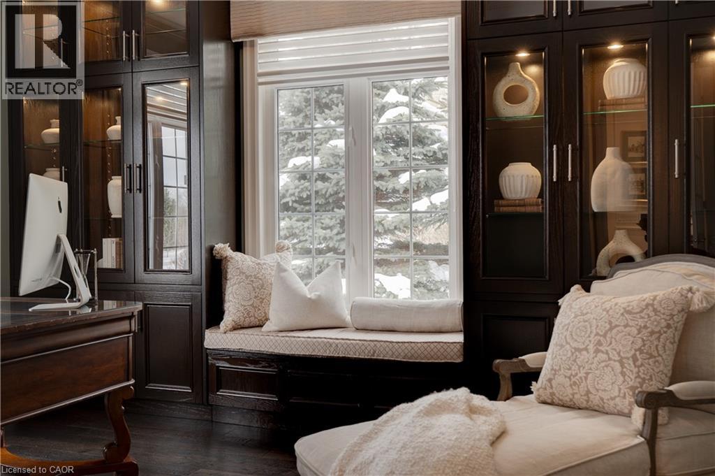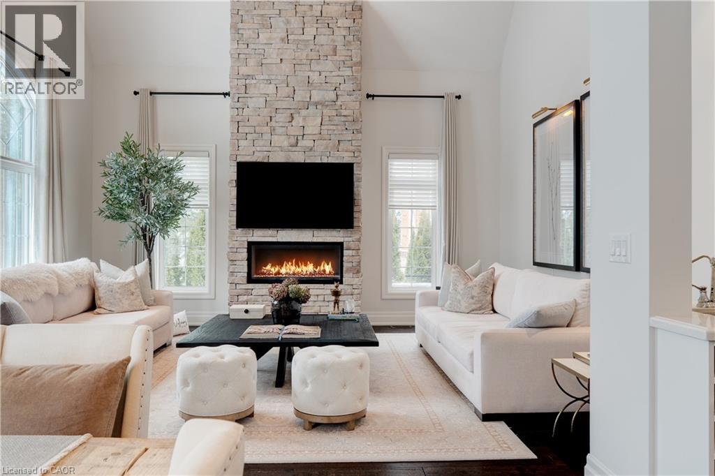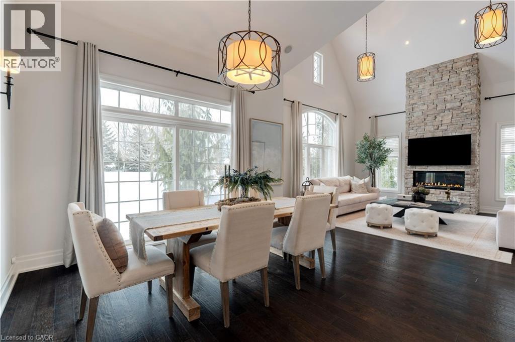 Stunning bungaloft located in the prestigious Meadows on the Glen community in Glen Williams. This exceptional former model home offers approximately 6,000 sq. ft. of beautifully finished living space, showcasing premium upgrades and timeless design throughout. The gourmet kitchen features a large centre island, high-end finishes, and a convenient butler's pantry, all overlooking the impressive two-storey great room with a floor-to-ceiling stone fireplace and sun-filled breakfast area. A formal dining room sits opposite a charming office, complete with a coffered ceiling and built-in window seat. The main level is anchored by a luxurious primary suite with its own fireplace and a spa-inspired ensuite. A second private bedroom suite is also located on this floor. The fourth bedroom on the main floor has been thoughtfully repurposed as a functional home office, offering a quiet and versatile workspace that can easily be converted back to a bedroom if desired. The upper level offers a library loft overlooking the great room, along with a third spacious bedroom suite. The fully finished lower level is designed for entertaining, featuring an outstanding theatre room, a well-appointed bar, and a wine room. Step outside to experience complete serenity-lush gardens, mature landscaping, and peaceful views create the perfect backdrop for morning coffee or an evening glass of wine. A rare offering in one of Glen Williams' most coveted enclaves. This is the lifestyle you've been dreaming of. Let's get you home! Luxury Certified. (id:4555)