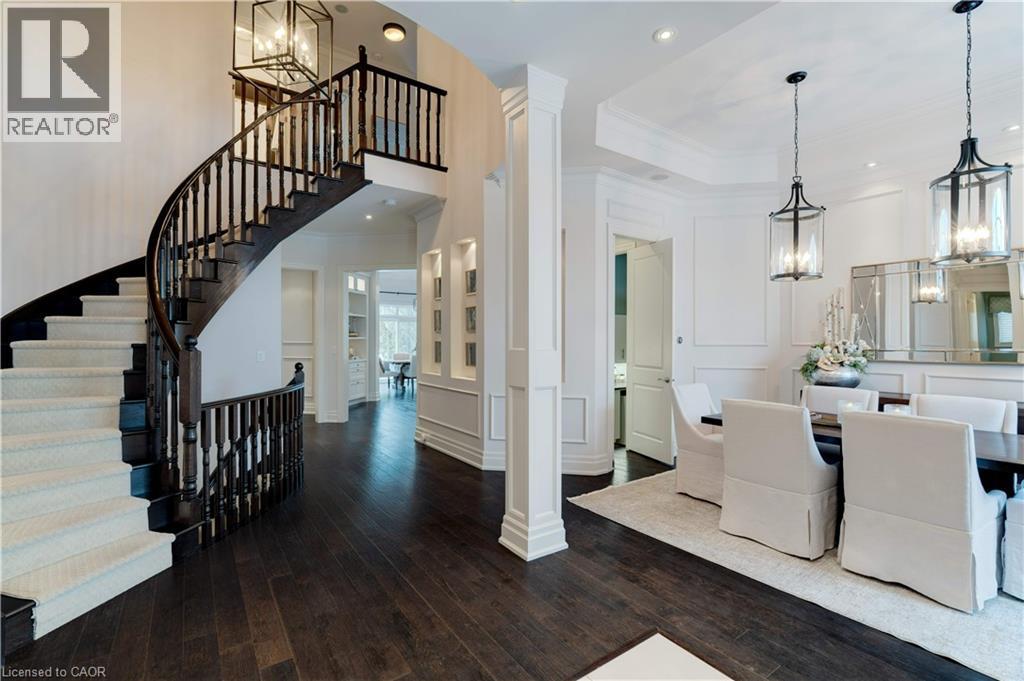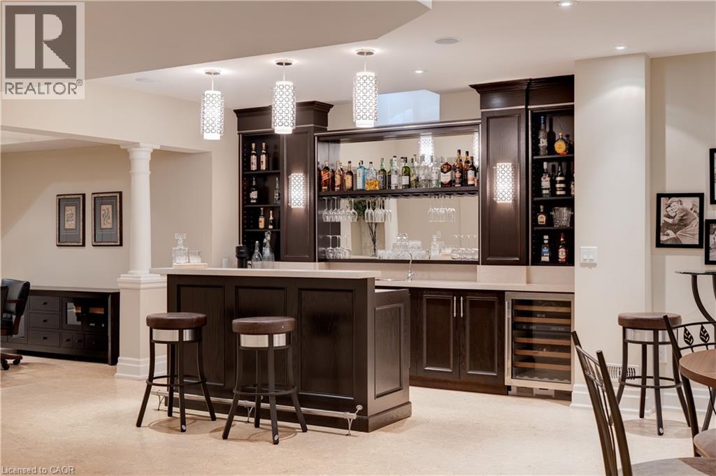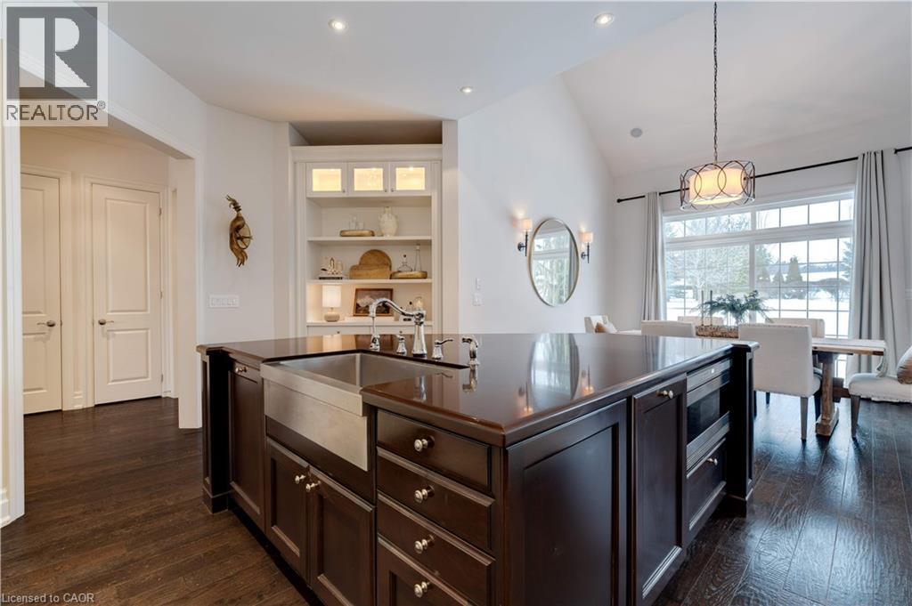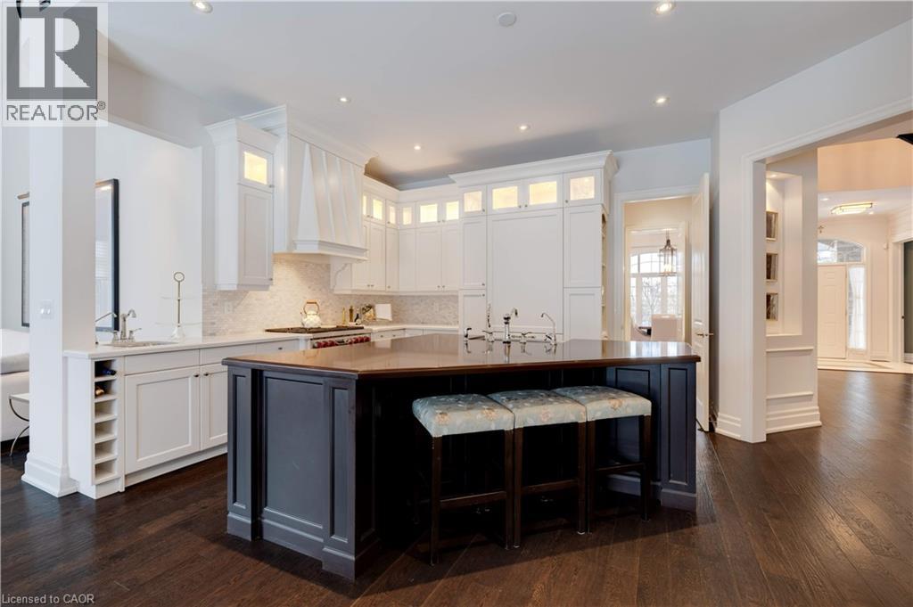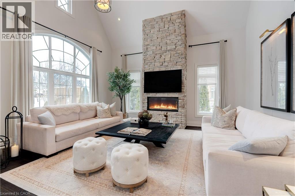 Stunning bungaloft located in the prestigious Meadows on the Glen community in Glen Williams. This exceptional former model home offers approximately 6,000 sq. ft. of beautifully finished living space, showcasing premium upgrades and timeless design throughout. The gourmet kitchen features a large centre island, high-end finishes, and a convenient butler's pantry, all overlooking the impressive two-storey great room with a floor-to-ceiling stone fireplace and sun-filled breakfast area. A formal dining room sits opposite a charming office, complete with a coffered ceiling and built-in window seat. The main level is anchored by a luxurious primary suite with its own fireplace and a spa-inspired ensuite. A second private bedroom suite is also located on this floor. The fourth bedroom on the main floor has been thoughtfully repurposed as a functional home office, offering a quiet and versatile workspace that can easily be converted back to a bedroom if desired. The upper level offers a library loft overlooking the great room, along with a third spacious bedroom suite. The fully finished lower level is designed for entertaining, featuring an outstanding theatre room, a well-appointed bar, and a wine room. Step outside to experience complete serenity-lush gardens, mature landscaping, and peaceful views create the perfect backdrop for morning coffee or an evening glass of wine. A rare offering in one of Glen Williams' most coveted enclaves. This is the lifestyle you've been dreaming of. Let's get you home! Luxury Certified. (id:4555)