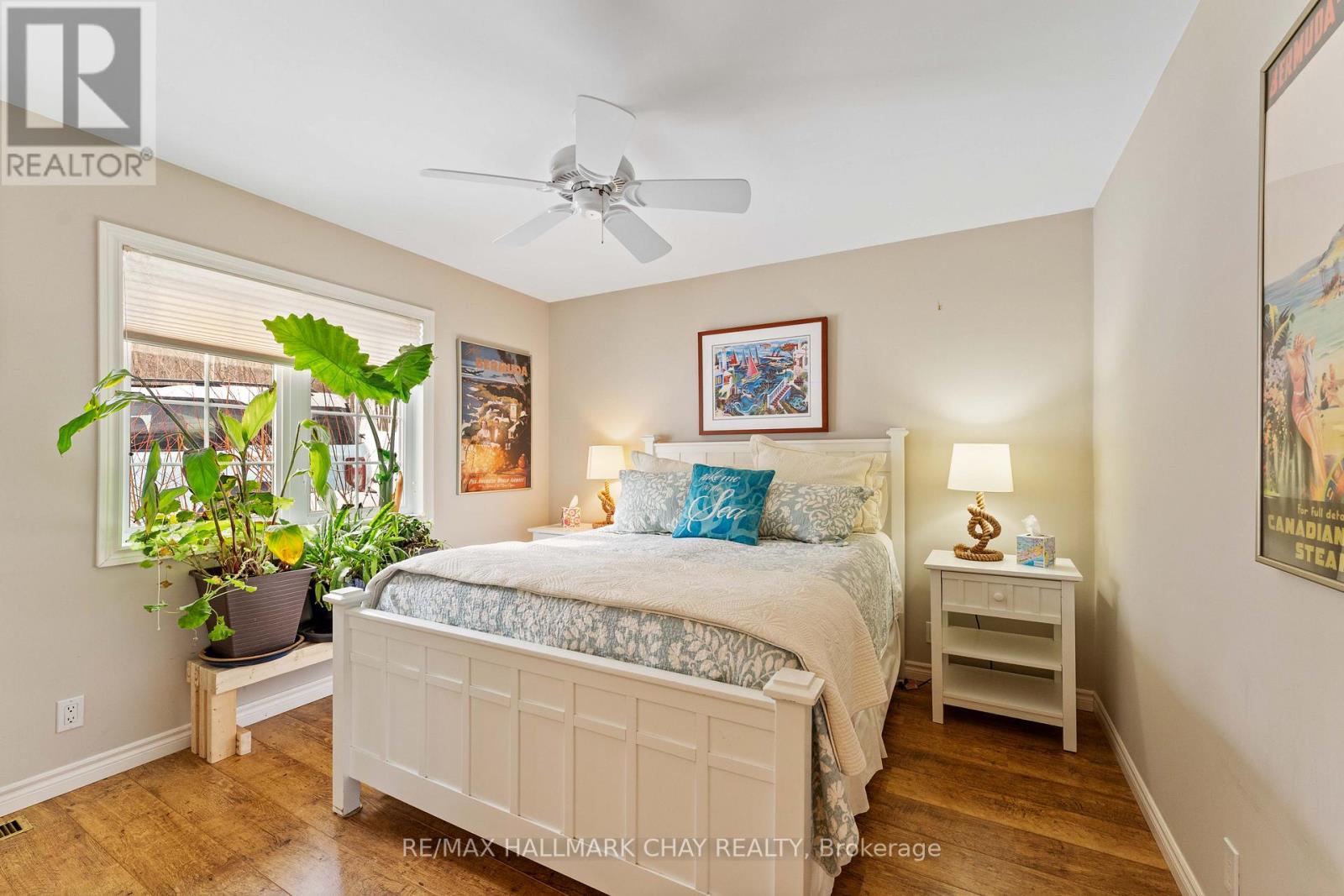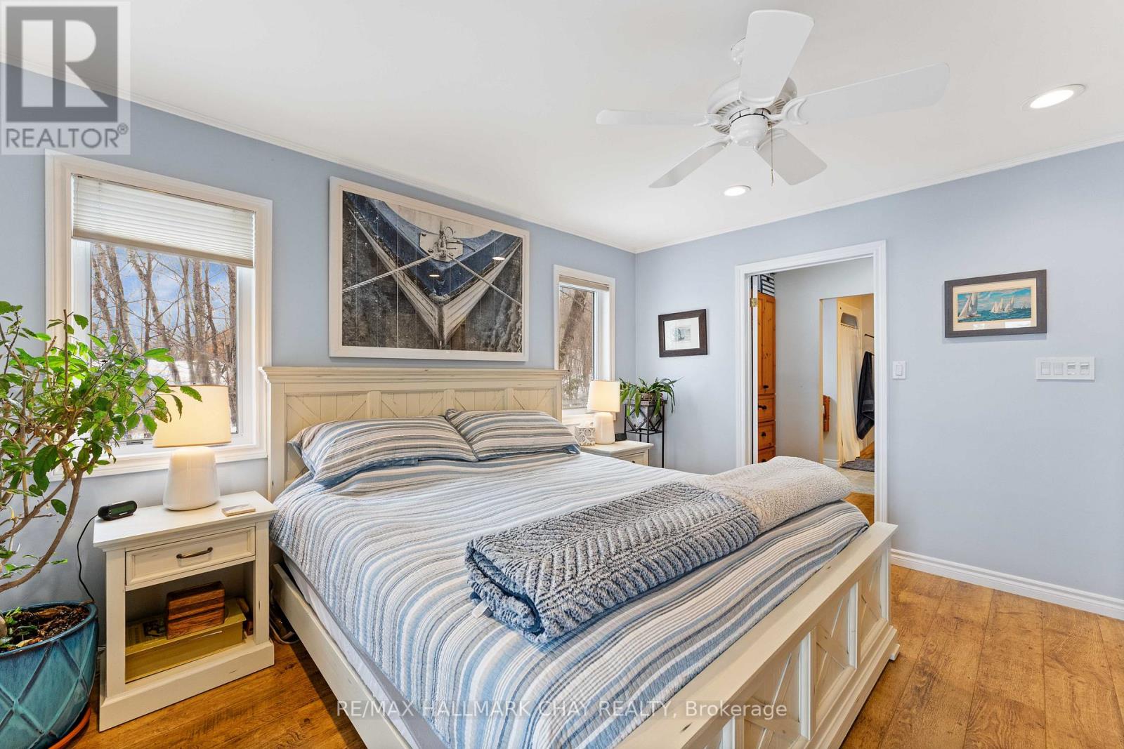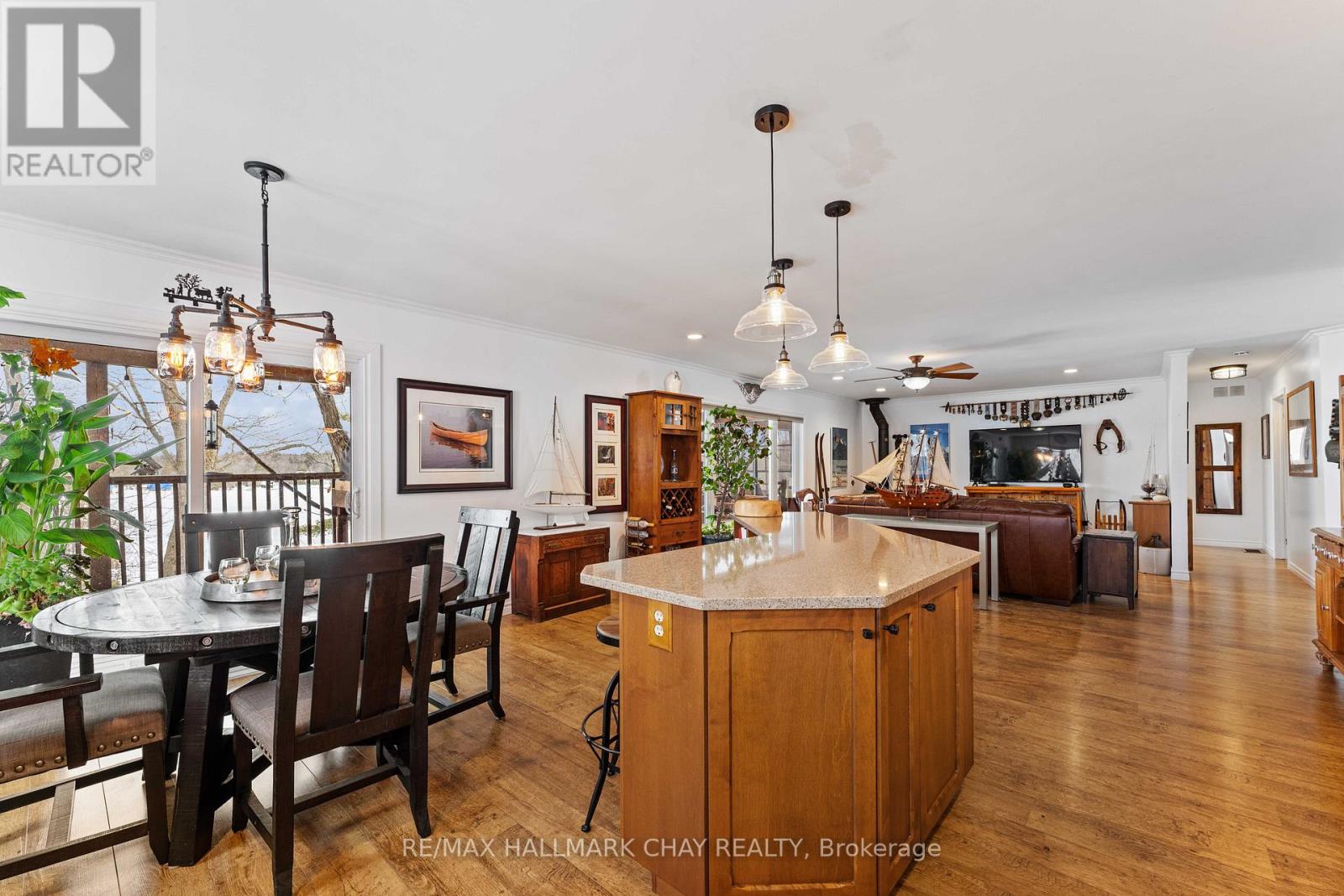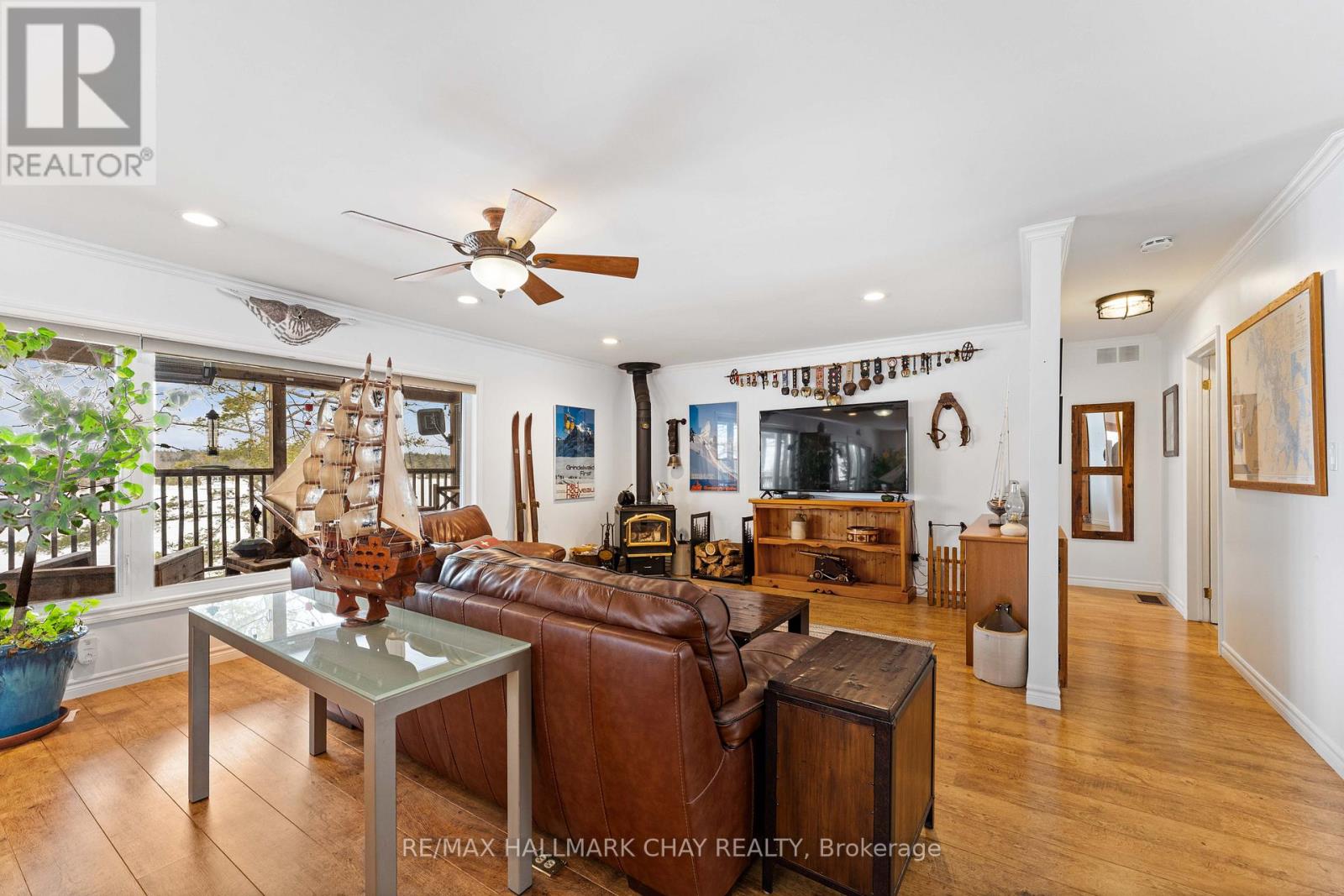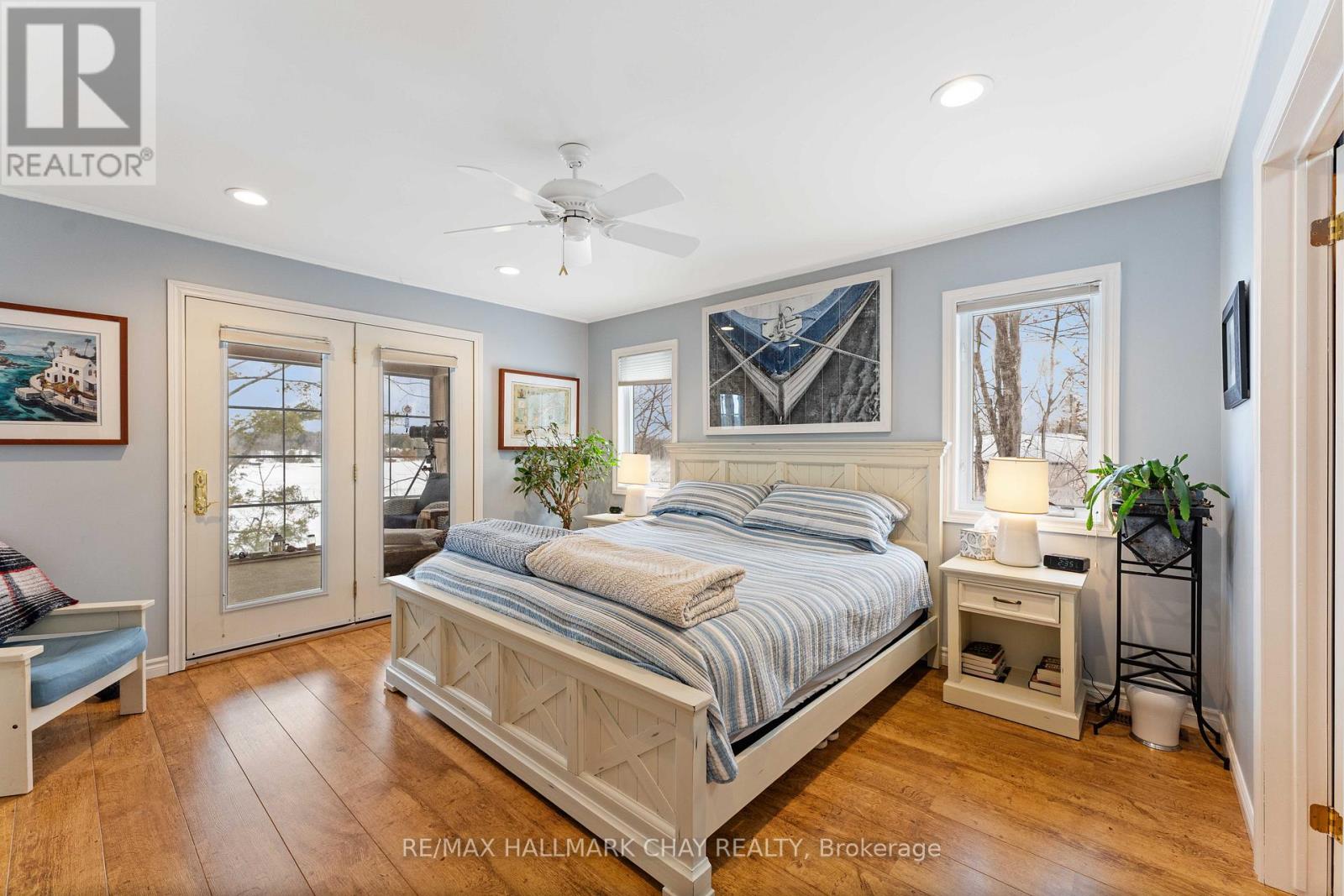 Welcome to Muskoka. Located on White's Bay of Gloucester Pool, at the gateway to Muskoka and Georgian Bay, this exceptional 0.6-acre waterfront property offers privacy, natural beauty, and comfortable year-round living... all just 1.5 hours from Toronto. Set between Crown land and the shoreline, the setting provides a rare sense of seclusion and direct connection to nature. The modern bungalow offers bright, open-concept living with oversized windows that frame peaceful water views. The main level features a comfortable living room and a kitchen that is designed for gathering, with a large sit-at island and seamless flow to the living and dining areas and the 52ft long covered deck. There is a spacious primary suite with a walkout to the 3-season room deck and a walk-through closet with oversize ensuite. The main floor also offers a second bedroom and bathroom as well as a large laundry room. The fully finished walkout lower level extends the living space with a welcoming family room featuring a cozy gas fireplace and direct access to the waterfront, along with a third bedroom, another bathroom, workshop and generous storage. Outdoors, winding paths lead through the Enchanted Forest that has been thoughtfully maintained with beautiful gardens, mature trees, and natural Muskoka granite, creating a peaceful, park-like setting. A detached double garage with workshop provides excellent space for hobbies, storage, or recreational equipment. Gloucester Pool is part of the Trent-Severn Waterway, offering endless boating opportunities and easy access to Georgian Bay just one lock away. The home has been smartly upgraded with a high efficiency propane furnace, stone feature wall propane fireplace, oversized patio doors in lower level, water filtration system, and a new GenerLink transfer switch connection. This is a rare opportunity to own a private waterfront property in one of Muskoka's most accessible and scenic locations, ready to be enjoyed in every season. (id:4555)