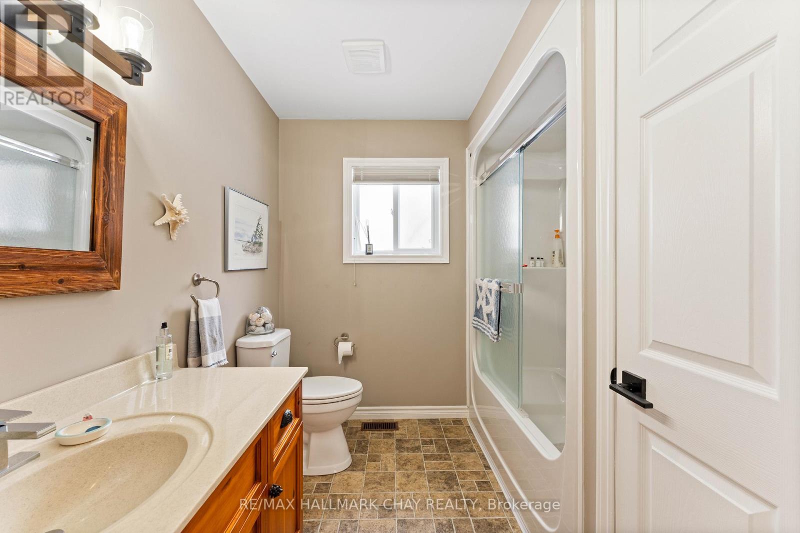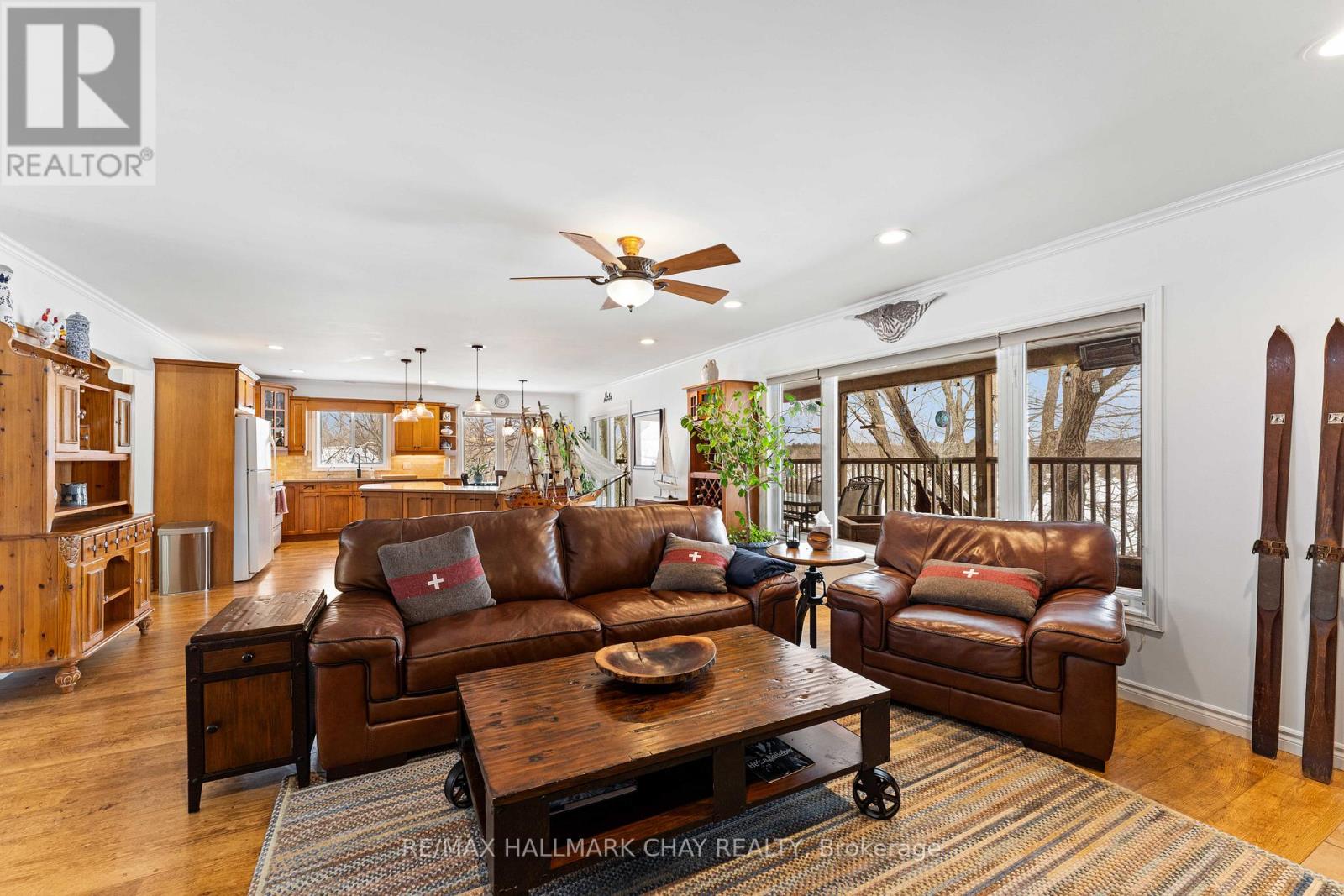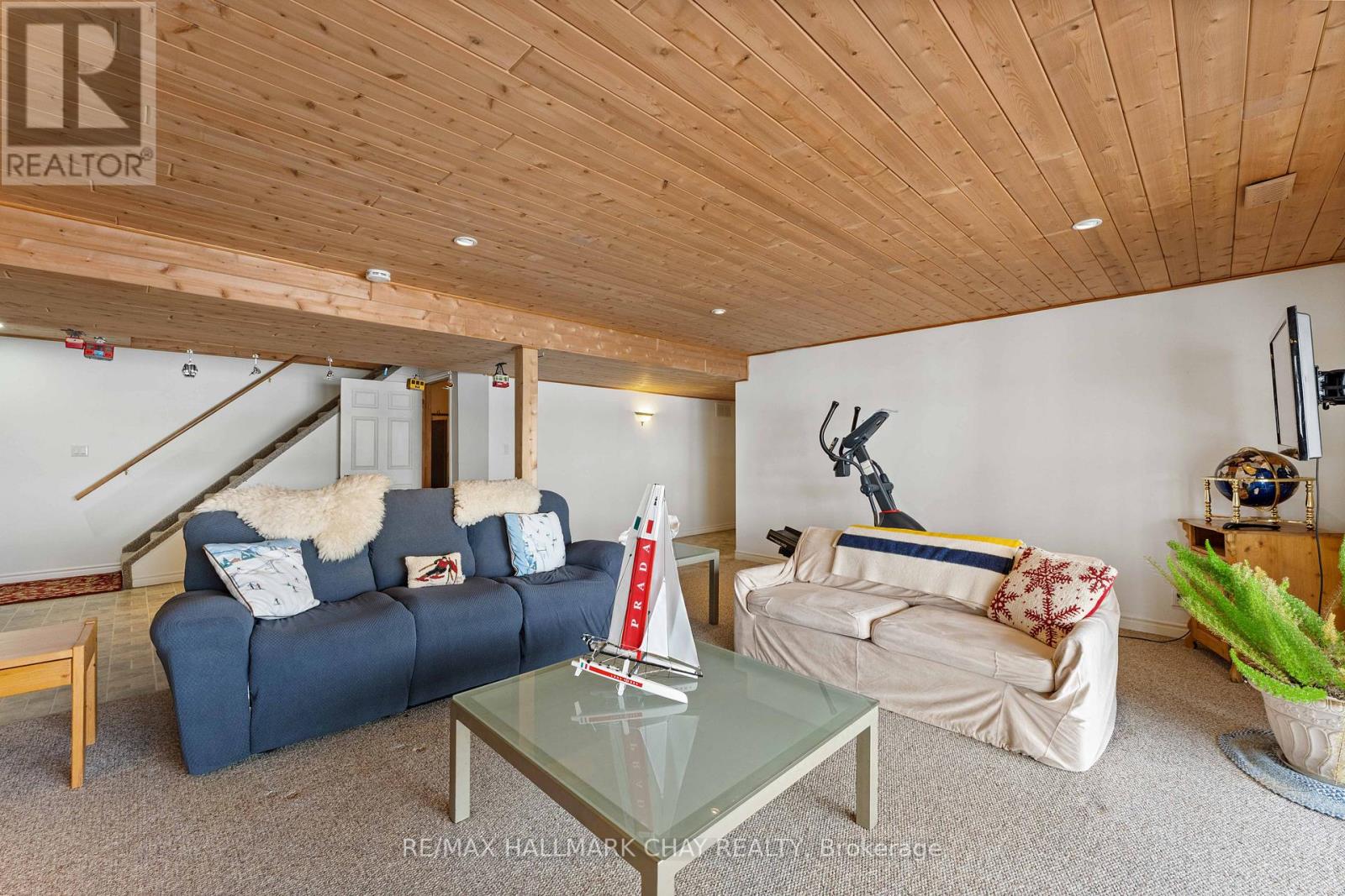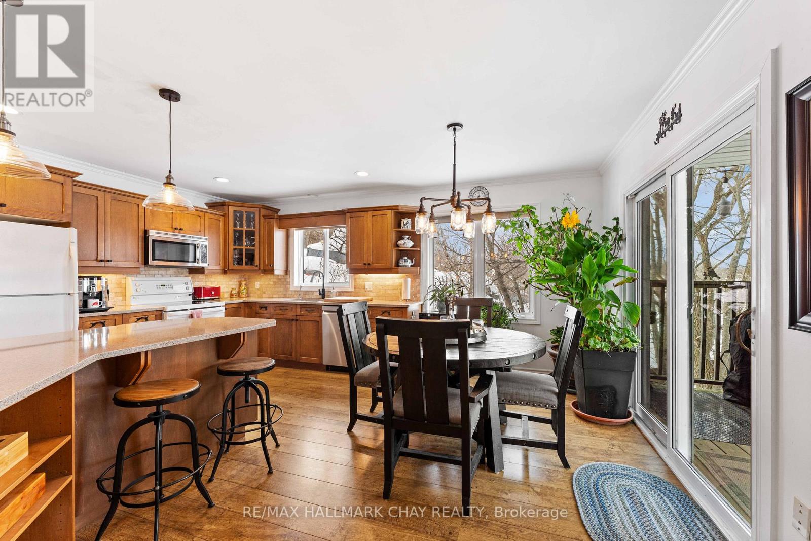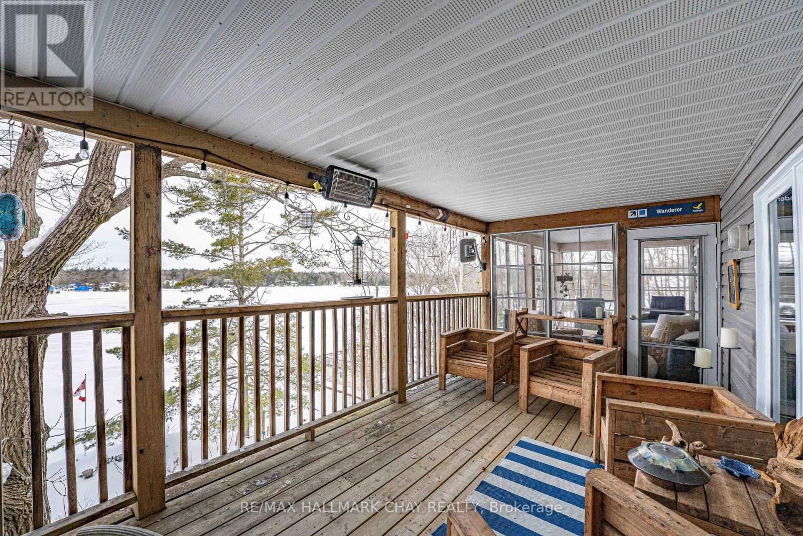 Welcome to Muskoka. Located on White's Bay of Gloucester Pool, at the gateway to Muskoka and Georgian Bay, this exceptional 0.6-acre waterfront property offers privacy, natural beauty, and comfortable year-round living... all just 1.5 hours from Toronto. Set between Crown land and the shoreline, the setting provides a rare sense of seclusion and direct connection to nature. The modern bungalow offers bright, open-concept living with oversized windows that frame peaceful water views. The main level features a comfortable living room and a kitchen that is designed for gathering, with a large sit-at island and seamless flow to the living and dining areas and the 52ft long covered deck. There is a spacious primary suite with a walkout to the 3-season room deck and a walk-through closet with oversize ensuite. The main floor also offers a second bedroom and bathroom as well as a large laundry room. The fully finished walkout lower level extends the living space with a welcoming family room featuring a cozy gas fireplace and direct access to the waterfront, along with a third bedroom, another bathroom, workshop and generous storage. Outdoors, winding paths lead through the Enchanted Forest that has been thoughtfully maintained with beautiful gardens, mature trees, and natural Muskoka granite, creating a peaceful, park-like setting. A detached double garage with workshop provides excellent space for hobbies, storage, or recreational equipment. Gloucester Pool is part of the Trent-Severn Waterway, offering endless boating opportunities and easy access to Georgian Bay just one lock away. The home has been smartly upgraded with a high efficiency propane furnace, stone feature wall propane fireplace, oversized patio doors in lower level, water filtration system, and a new GenerLink transfer switch connection. This is a rare opportunity to own a private waterfront property in one of Muskoka's most accessible and scenic locations, ready to be enjoyed in every season. (id:4555)