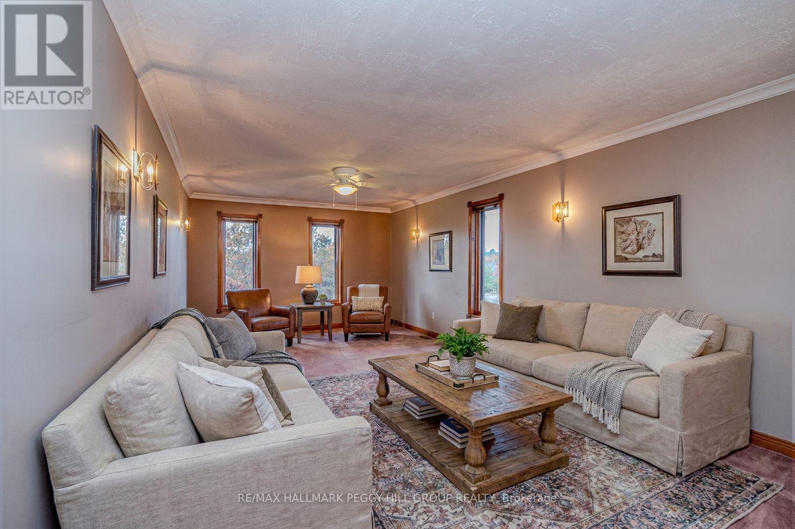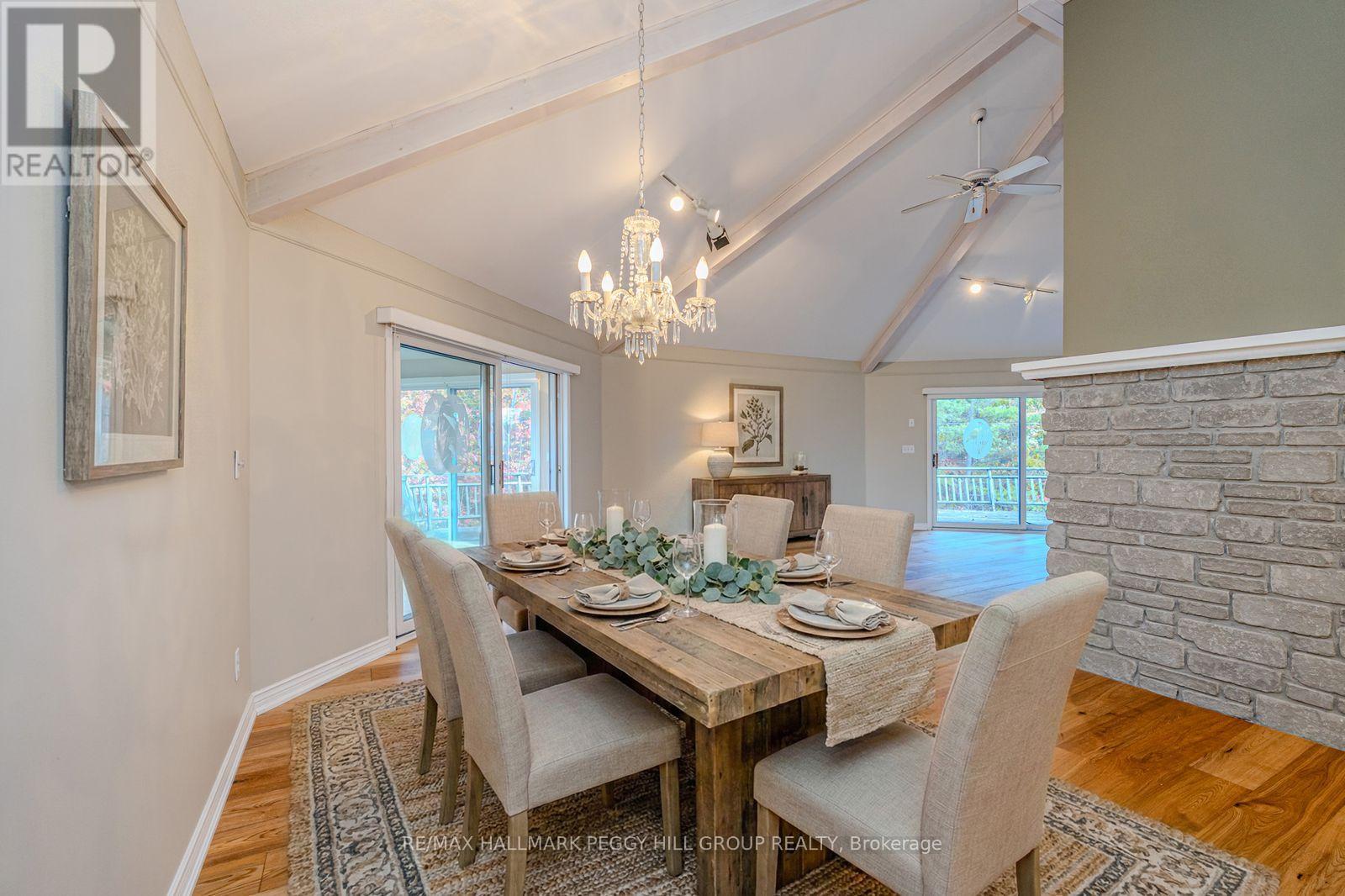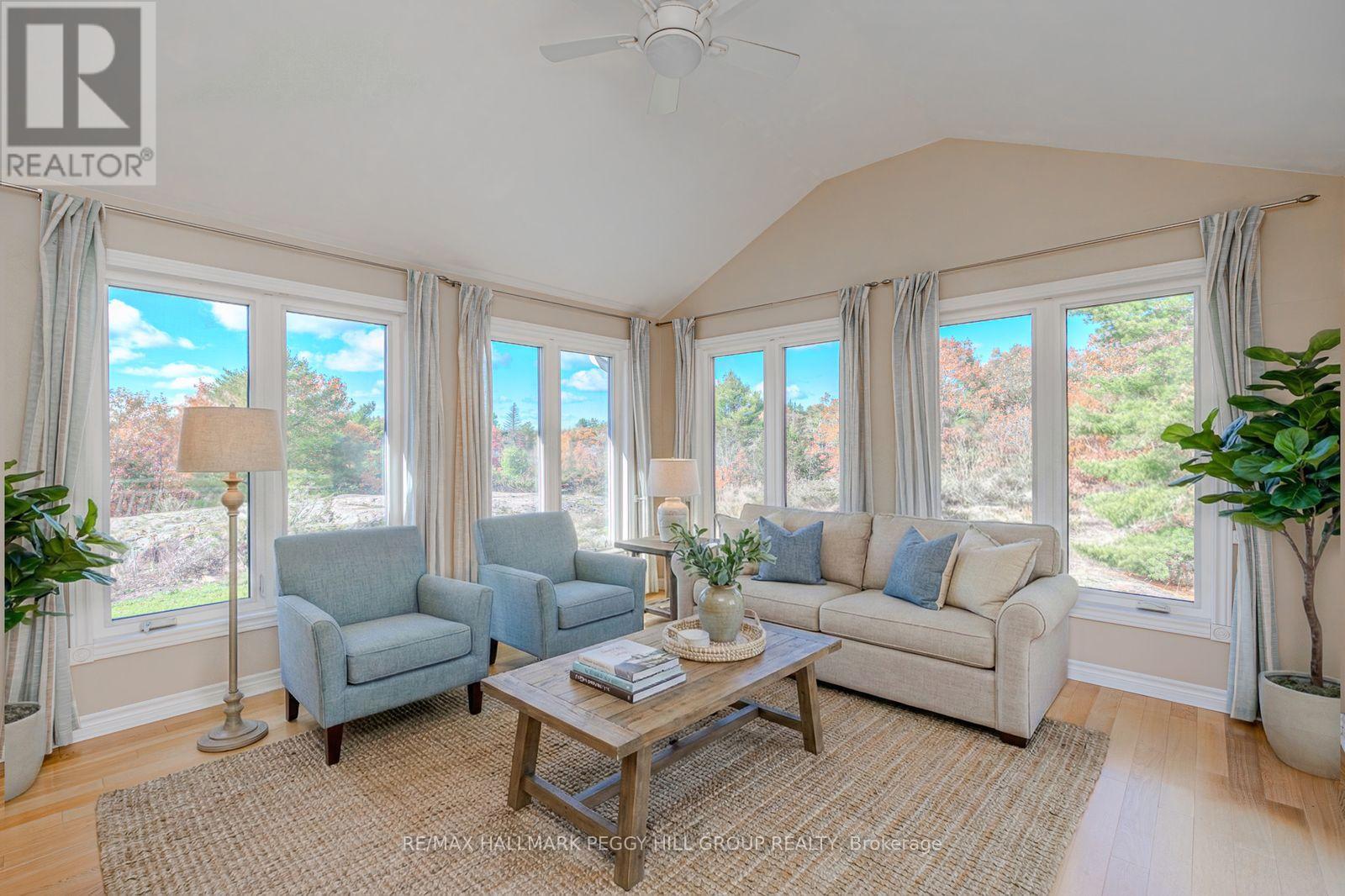 SPACIOUS BUNGALOW SET ON 7.81 ACRES WITH AN ATTACHED GARAGE, HEATED DETACHED SHOP WITH LIVING/OFFICE SPACE & MINUTES TO GEORGIAN BAY! Discover the kind of property buyers dream about but rarely find: 7.81 acres of privacy and natural beauty just minutes from Georgian Bay. Towering trees and rugged Canadian Shield rock frame beautifully landscaped grounds, with armourstone accents, flower beds, and an interlock walkway with steps leading to the front door. A triple-wide driveway provides parking for up to 15 vehicles, complemented by an attached double-car garage and an impressive 30 x 40 ft detached heated shop/garage featuring a finished office or living area and a 14 ft door, offering endless possibilities for hobbyists, contractors, or anyone in need of additional space. This bungalow presents over 2,300 sq ft on the main level with spacious, light-filled living areas, including a great room with a 15 ft beamed cathedral ceiling, a fireplace, and an adjoining dining area, plus a separate living room with crown moulding. The well-appointed kitchen showcases a centre island, pantry, a mix of white and warm wood cabinetry, tile flooring, and a second fireplace, while the vaulted sunroom with large windows and a walkout to the expansive back deck provides the perfect place to enjoy the view. Four generously sized bedrooms include a primary retreat with a 4-piece ensuite featuring a relaxing jetted tub and a glass-walled shower, while another bedroom also offers its own 3-piece ensuite. Main floor laundry adds everyday convenience with a handy sink. Practical features include forced-air propane heating in both the home and the shop/garage, a heat pump in the home for efficient heating and cooling, a drilled well, and 200-amp service. All of this is just minutes from beaches, marinas, the public school, library, LCBO, church, parks, and everyday essentials in Honey Harbour. (id:4555)