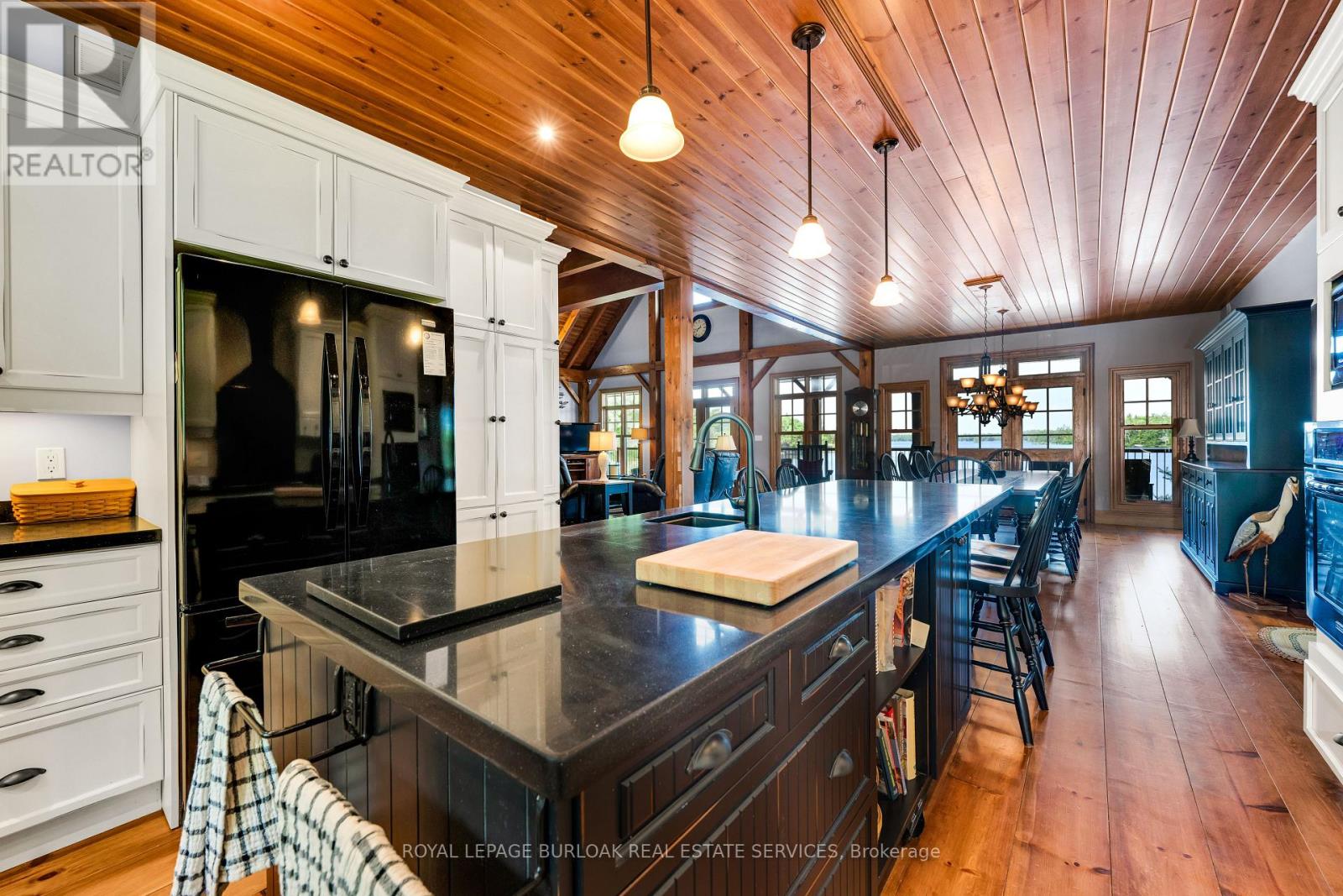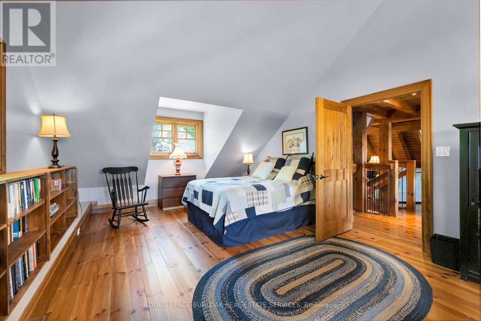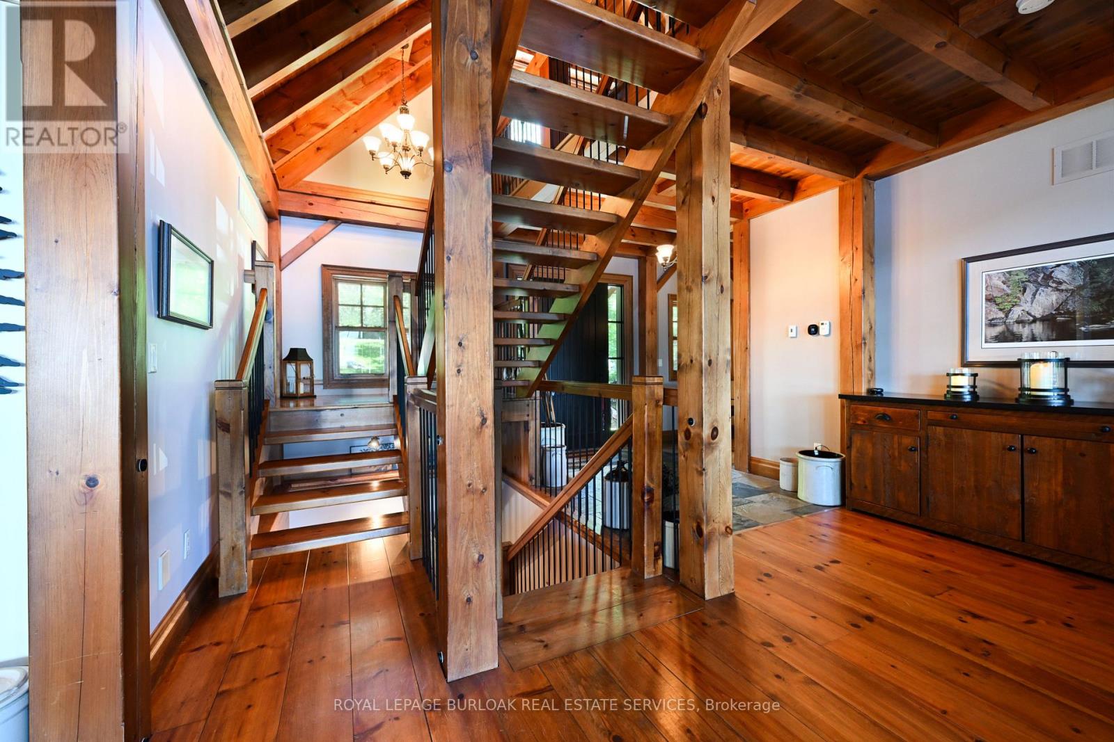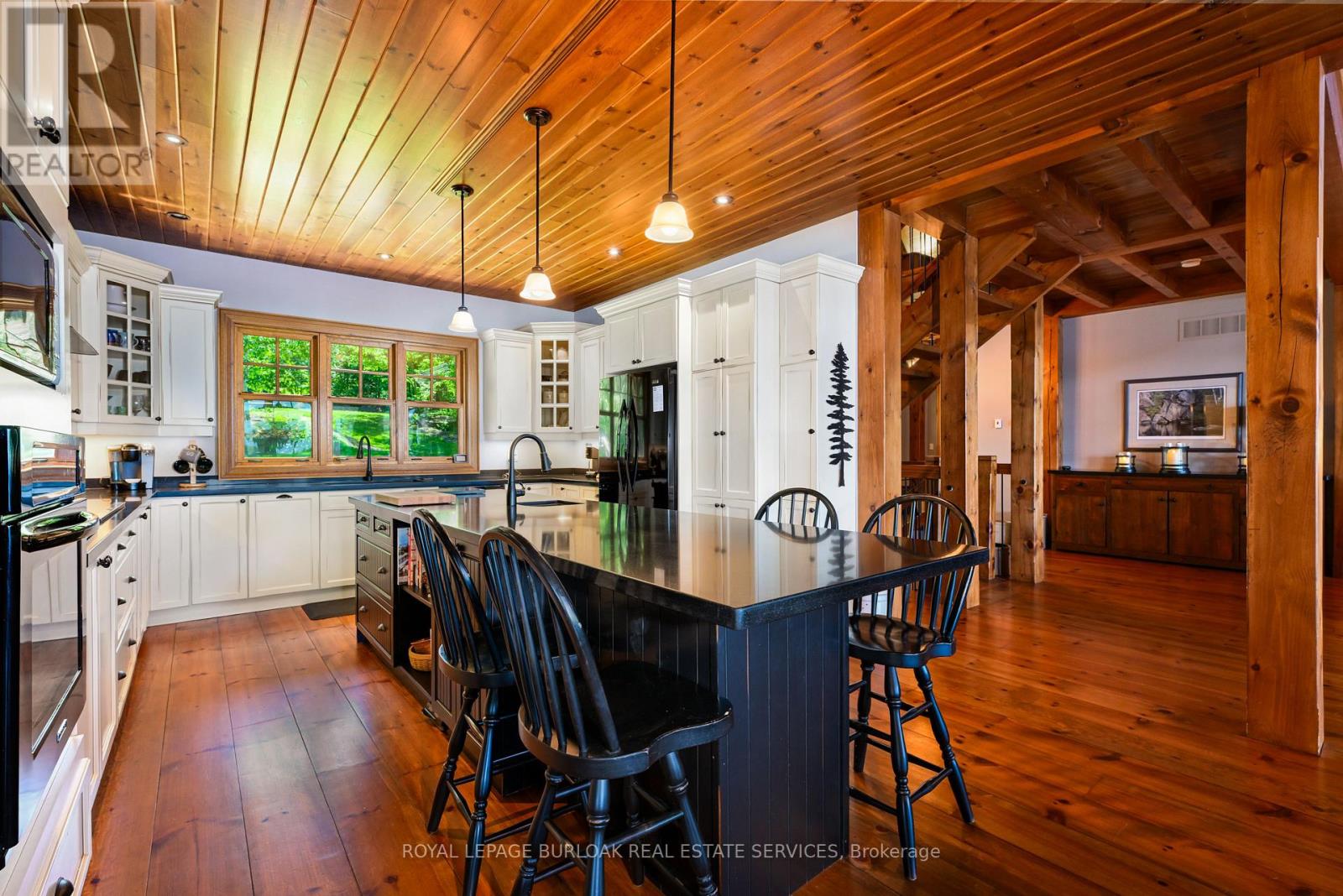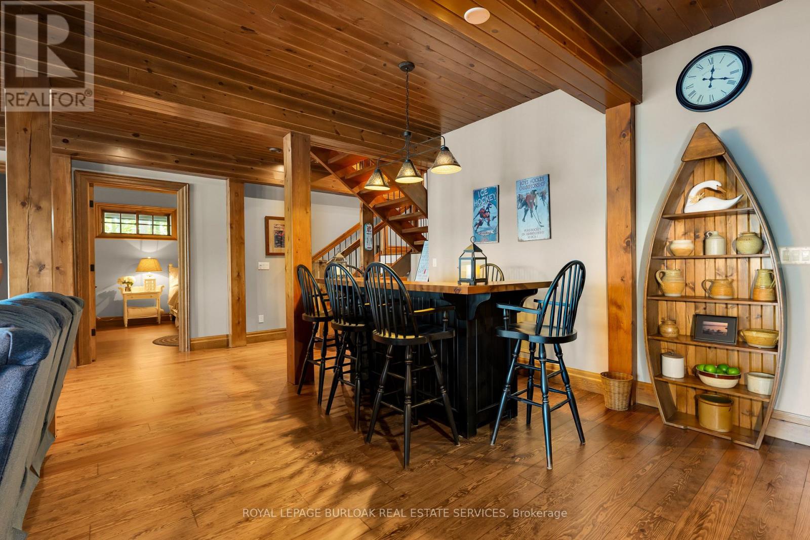 Remarkable Muskoka lakeside retreat on Six Mile Lake, on year-round municipal road, only 90 minutes from GTA. Impressive custom-build w/stunning lake views may be most prestigious property on "the mile." Expansive 333ft of prime, deep waterfront, 1.66 acres w/mature trees & privacy, & absolute show-stopper 6000 sqft, 6 bedrm lake house w/gorgeous pine detail T/O. Open-concept main lvl overlooks lake & accesses the 68x12 covered deck, & includes the kitchen w/quartz CTs & 11ft centre island w/breakfast bar, great rm w/granite stone F/P & 22ft vaulted ceiling, spacious dining rm, main floor primary bedrm w/6pce ensuite, Muskoka rm,2pce bath, & mud rm/laundry rm. 2nd lvl has a den/office, & 2 very large bedrms that could be converted to 4 if desired. Walk-out lower lvl offers a family rm w/granite stone F/P, bar area w/seating for 6, 3 more large bedrms, 8pce bath, & sliding doors to patio & lake. Red Pine &slate floors T/O, 10ft ceilings & in-floor heating on main & lower lvl, pine ceilings, & post &beam construction & ICF foundation, all display the care in this magnificent homes design. Exterior offers an oversized double garage w/600sqft man cave/loft w/heat & AC, triple garage w/2 insulated & heated, & another single garage at side of property, plus parking for 20 more on driveways. Clear & pristine waterfront 6-12ft deep off docks, + bonus shallow wading area at side. 1500sqft of decks & docks along water, including U-shaped boat slip engineered to support a boathouse, plus 1400 sqft of covered deck & patio overlooking the water, & 450 sqft of deck at back of home, totalling over 3350 sqft of decking & patio. NE exposure at waterfront provides beautiful sunrises &sunsets. 280 sqft bunkie at water's edge. Systems include geothermal heating/cooling, drilled well w/complete water system, bio-filter septic system, on-demand water heater, & generator. Floor plans, boathouse drawings, & full write-up & details of the property available. (id:4555)