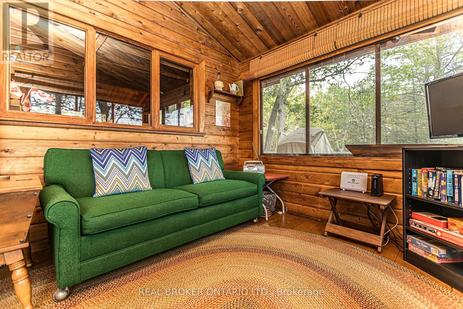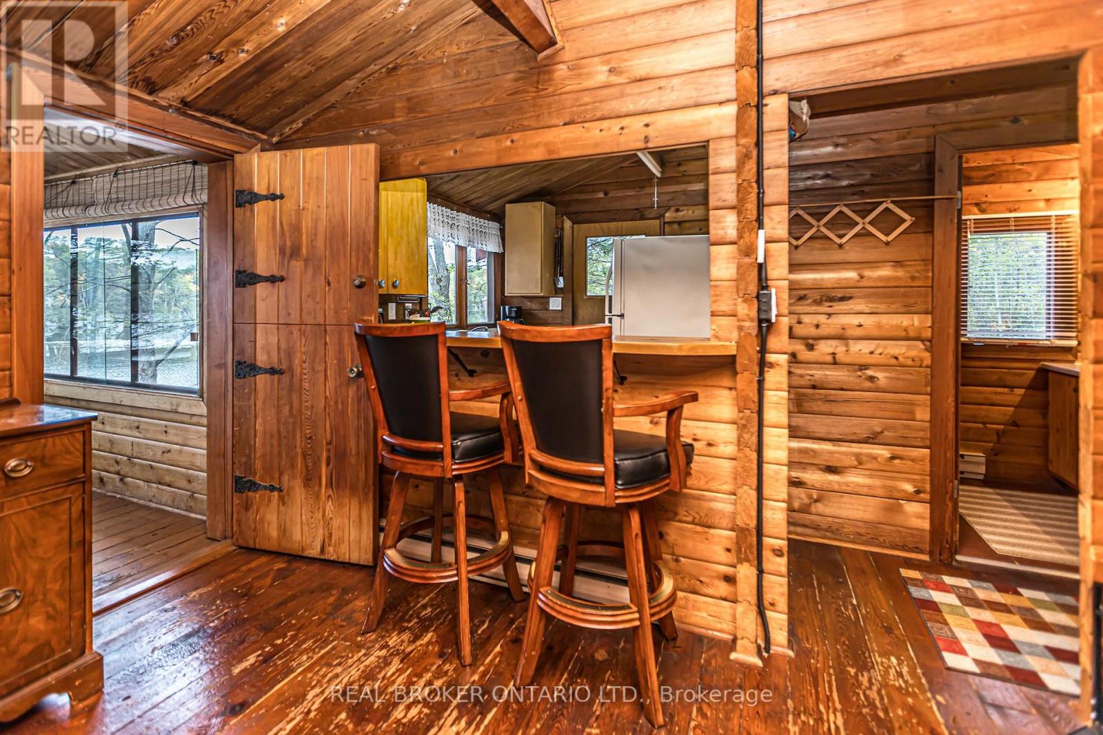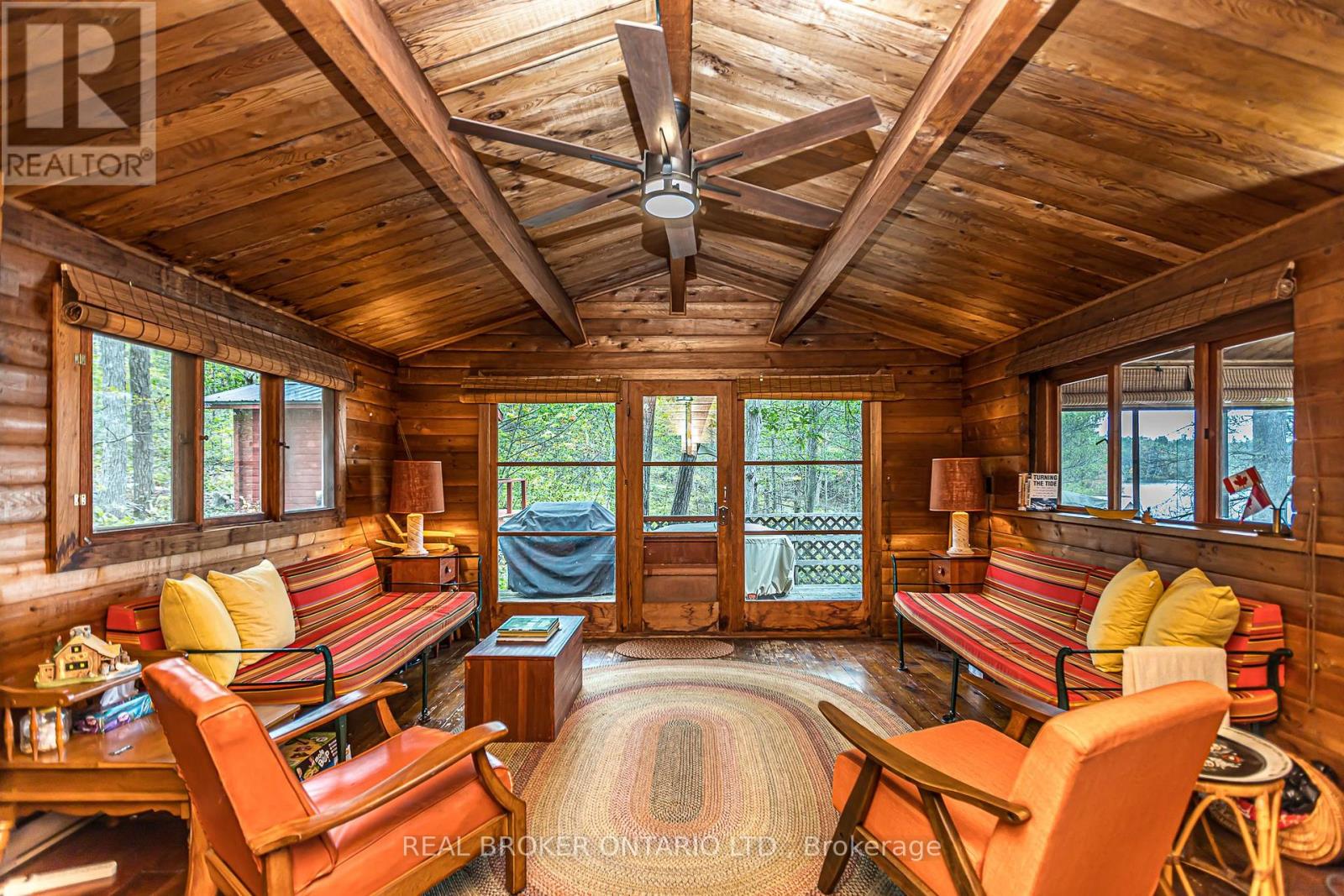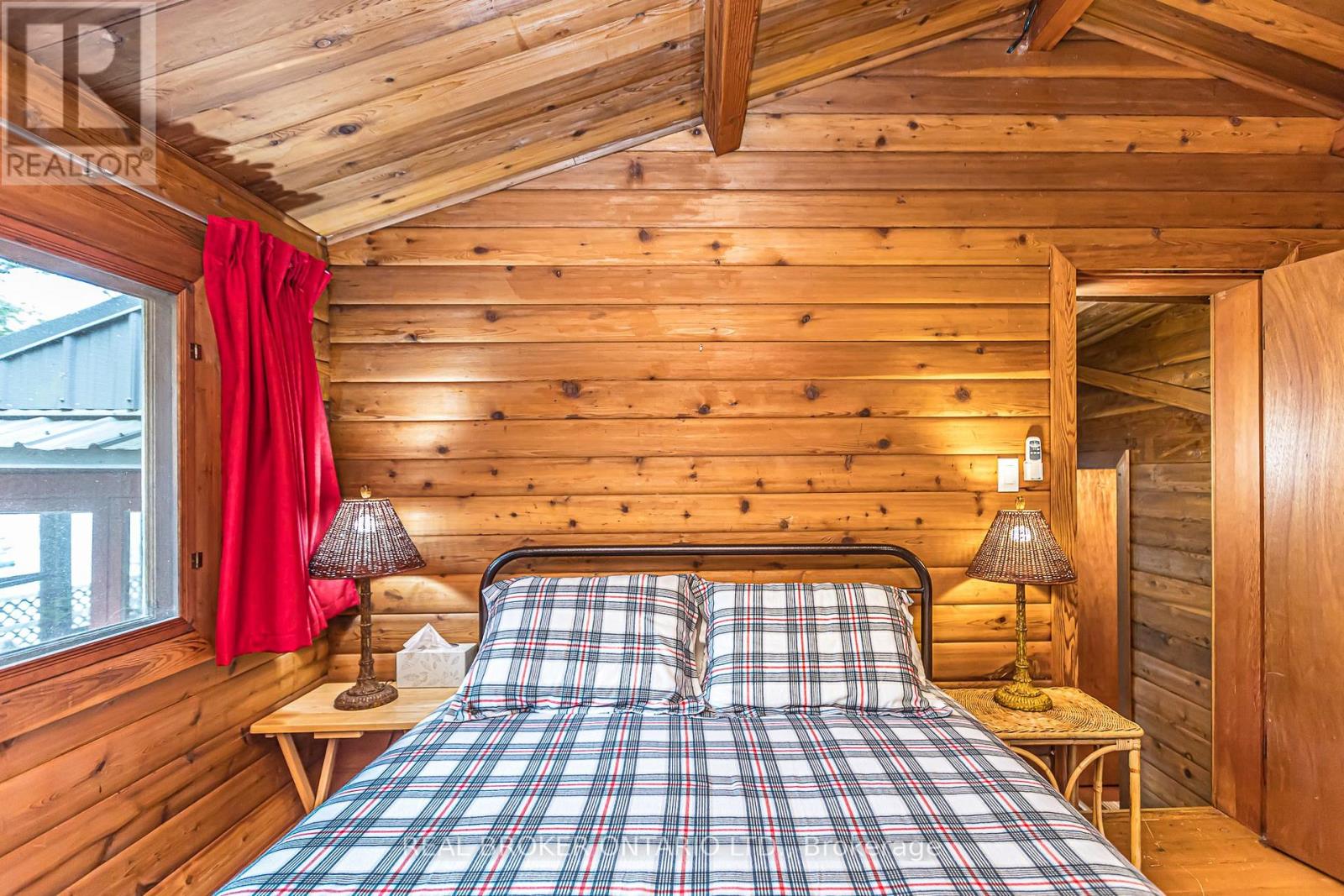 Looking for a waterfront escape where you can unplug? Look no further. This Panabode Cedar cottage has 208ft of waterfront shoreline with Southern exposure ensuring light all day, and 1.65Acres of serene greenbelt. Vintage charm on the cottage interior is sure to bring back and create nostalgic memories. This 1 bedroom cottage boasts sleeping for 8 Between the bedroom, fold down couches, and private bunkie with 2 separate beds. Bunkie is accessible to the cottage within a short wooden path connected to the main cottage deck. Enjoy swimming from your own dock. Electrical wiring with 100amp panel all replaced in 2021. Metal roof, wood fireplace, new water pump (2024). Cottage is water access providing privacy and peace while deeded access to your private and gated parking, boat ramp, trailer parking and private dock ensure easy and secure parking and access to your boat. Boat ride is approximately a 5 min from parking lot to cottage dock. Enjoy amenities in the area with wonderful restaurants in the Port Severn Area, close proximity to Six Mile Lake Provincial Park, OFSC snowmobiling trails and the charm of nearby Muskoka towns with restaurants, shopping and hiking trails. From the cottage, explore Baxter Lake, Gloucester Pool, and access to Georgian Bay via lock 44 and Big Chute. (id:4555)