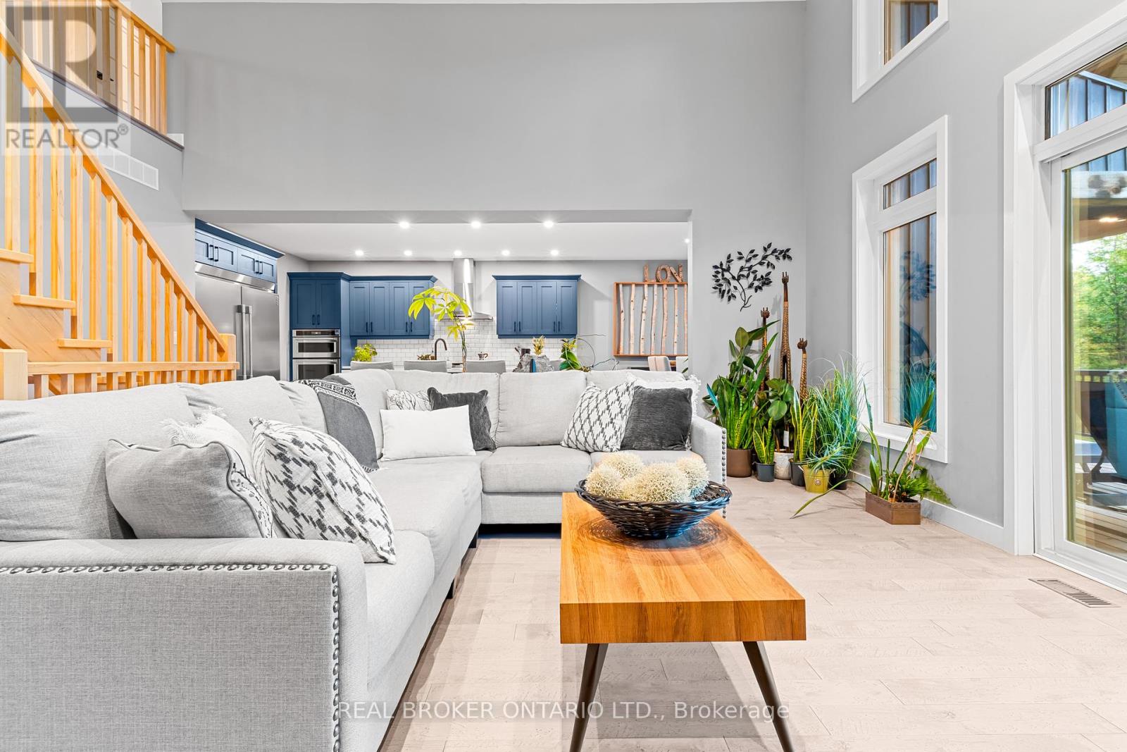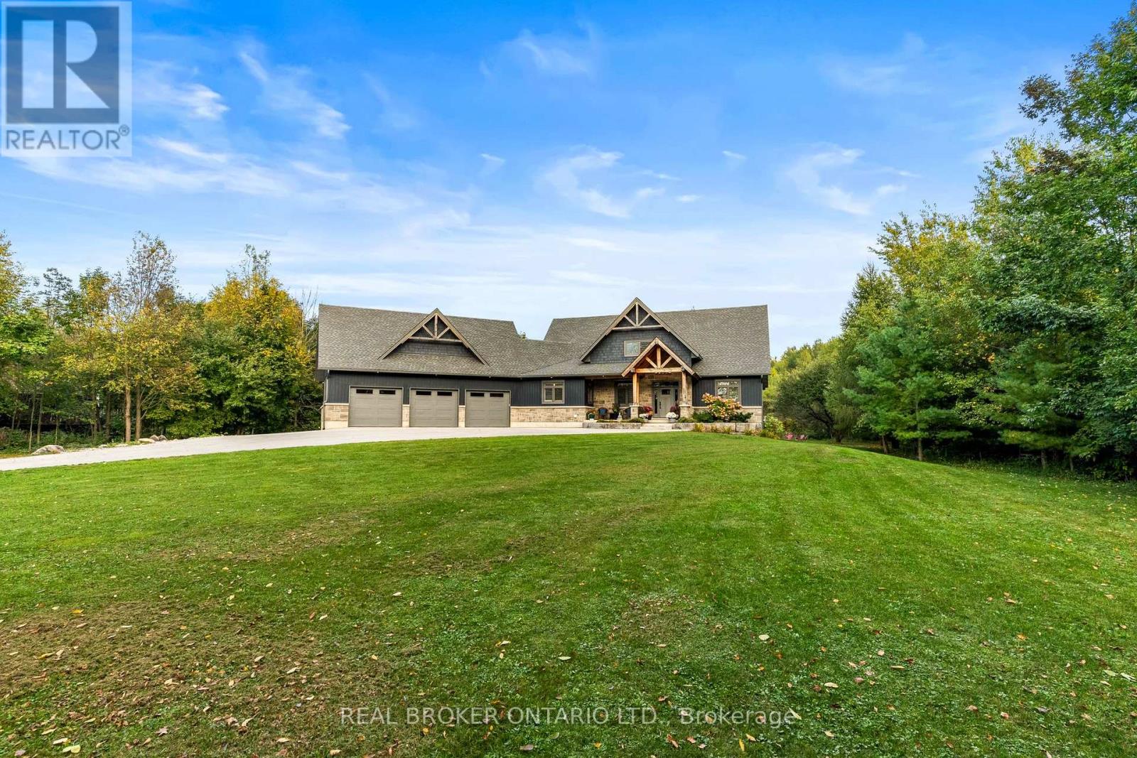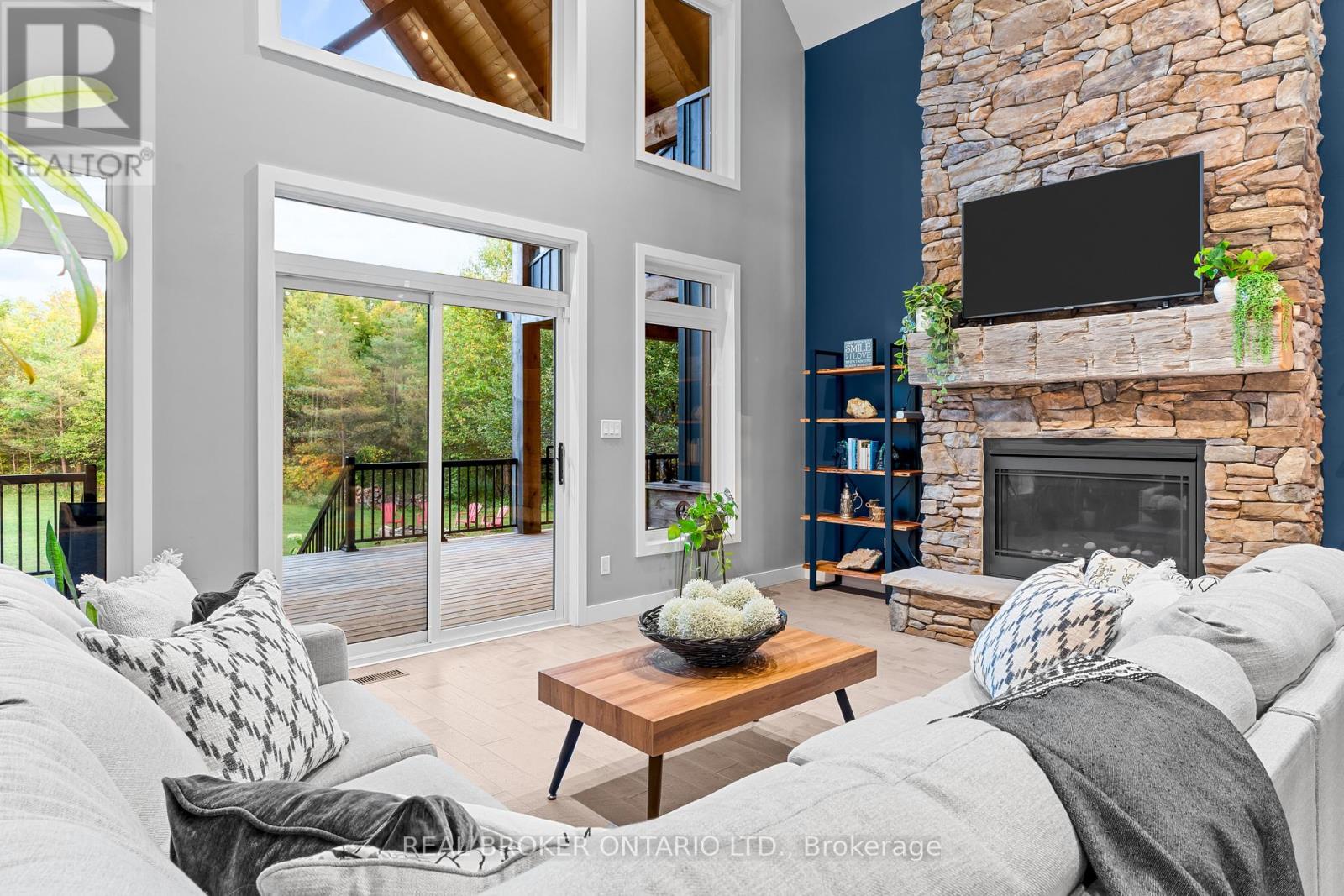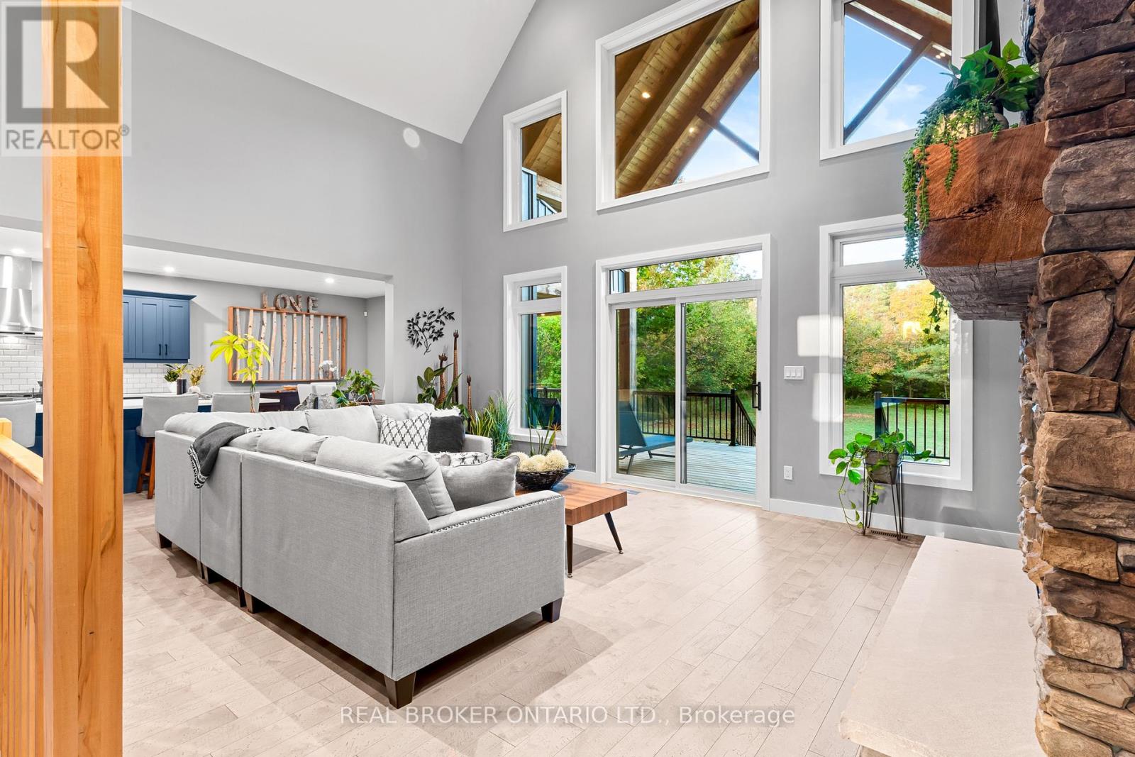 An extraordinary lifestyle opportunity awaits in a sought after neighbourhood in Georgian bluffs. Refined design and natural beauty come together in perfect harmony. Crafted in 2020, this custom timber frame estate rests on nearly 3 acres of secluded, forested grounds and showcases over 4,600 sq. ft. of thoughtfully curated living space. A true sanctuary, this private residence offers an inspired blend of timeless elegance and modern luxury, perfect for those who cherish space, serenity, and a deep connection to nature.Step inside to find soaring 24 foot height cathedral ceilings, a grand stone fireplace, and expansive windows that invite the forest views indoors. The open concept layout flows into a chefs gourmet kitchen featuring a 9x5 quartz island, premium appliances, and a large walk in pantry, perfect for hosting, or enjoying calm mornings in a peaceful setting.The main floor offers a private primary suite with a spa like ensuite and walk in closet. Upstairs, two additional bedrooms, a full bath, and a quiet loft create space for family or guests. The finished lower level includes two more bedrooms, a large rec room with a bar, and a private access to the garage, ideal for extended family, a wellness studio, or private guest quarters.Over $135,000 in thoughtful upgrades bring confidence and ease, including a Generac whole home generator, new asphalt driveway, professional landscaping with armour stone, and a full security system.The heated and insulated triple garage features high ceilings and oversized doors, perfect for your vehicles, storage needs, and space to keep your ATVs, boats, and recreational toys organized and secure.If youre looking for a luxury home with privacy, space, and connection to nature, yet just minutes from town, this one stands apart. Call your REALTOR today to schedule a private showing! (id:4555)