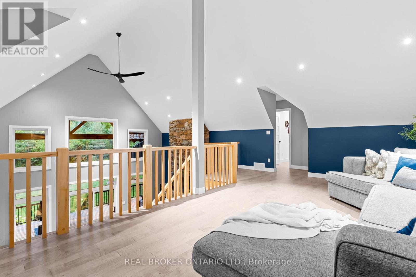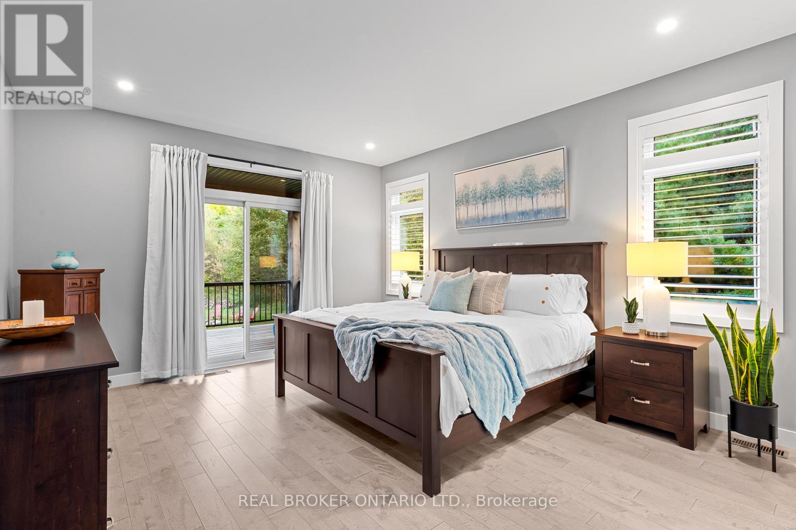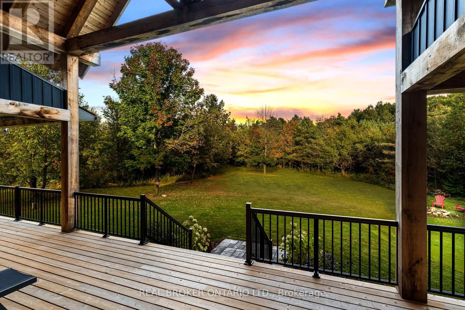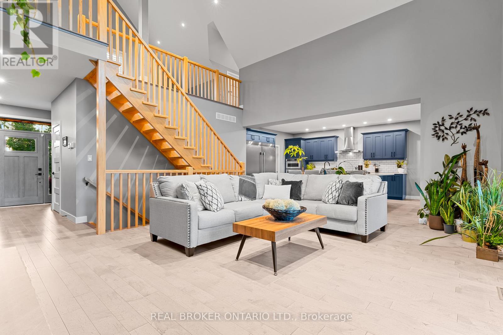 An extraordinary lifestyle opportunity awaits in a sought after neighbourhood in Georgian bluffs. Refined design and natural beauty come together in perfect harmony. Crafted in 2020, this custom timber frame estate rests on nearly 3 acres of secluded, forested grounds and showcases over 4,600 sq. ft. of thoughtfully curated living space. A true sanctuary, this private residence offers an inspired blend of timeless elegance and modern luxury, perfect for those who cherish space, serenity, and a deep connection to nature.Step inside to find soaring 24 foot height cathedral ceilings, a grand stone fireplace, and expansive windows that invite the forest views indoors. The open concept layout flows into a chefs gourmet kitchen featuring a 9x5 quartz island, premium appliances, and a large walk in pantry, perfect for hosting, or enjoying calm mornings in a peaceful setting.The main floor offers a private primary suite with a spa like ensuite and walk in closet. Upstairs, two additional bedrooms, a full bath, and a quiet loft create space for family or guests. The finished lower level includes two more bedrooms, a large rec room with a bar, and a private access to the garage, ideal for extended family, a wellness studio, or private guest quarters.Over $135,000 in thoughtful upgrades bring confidence and ease, including a Generac whole home generator, new asphalt driveway, professional landscaping with armour stone, and a full security system.The heated and insulated triple garage features high ceilings and oversized doors, perfect for your vehicles, storage needs, and space to keep your ATVs, boats, and recreational toys organized and secure.If youre looking for a luxury home with privacy, space, and connection to nature, yet just minutes from town, this one stands apart. Call your REALTOR today to schedule a private showing! (id:4555)