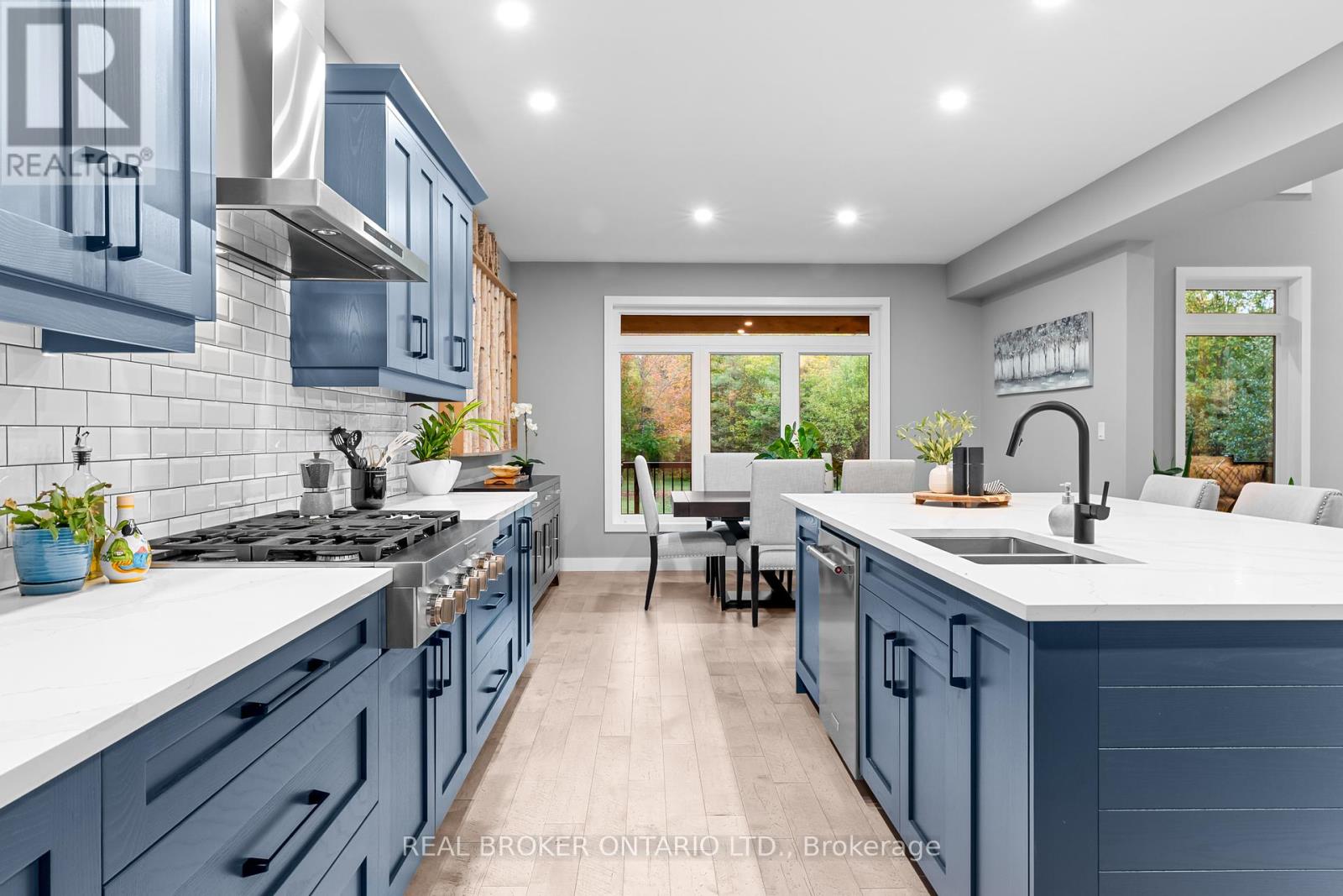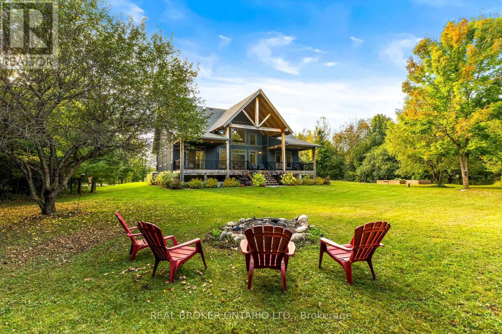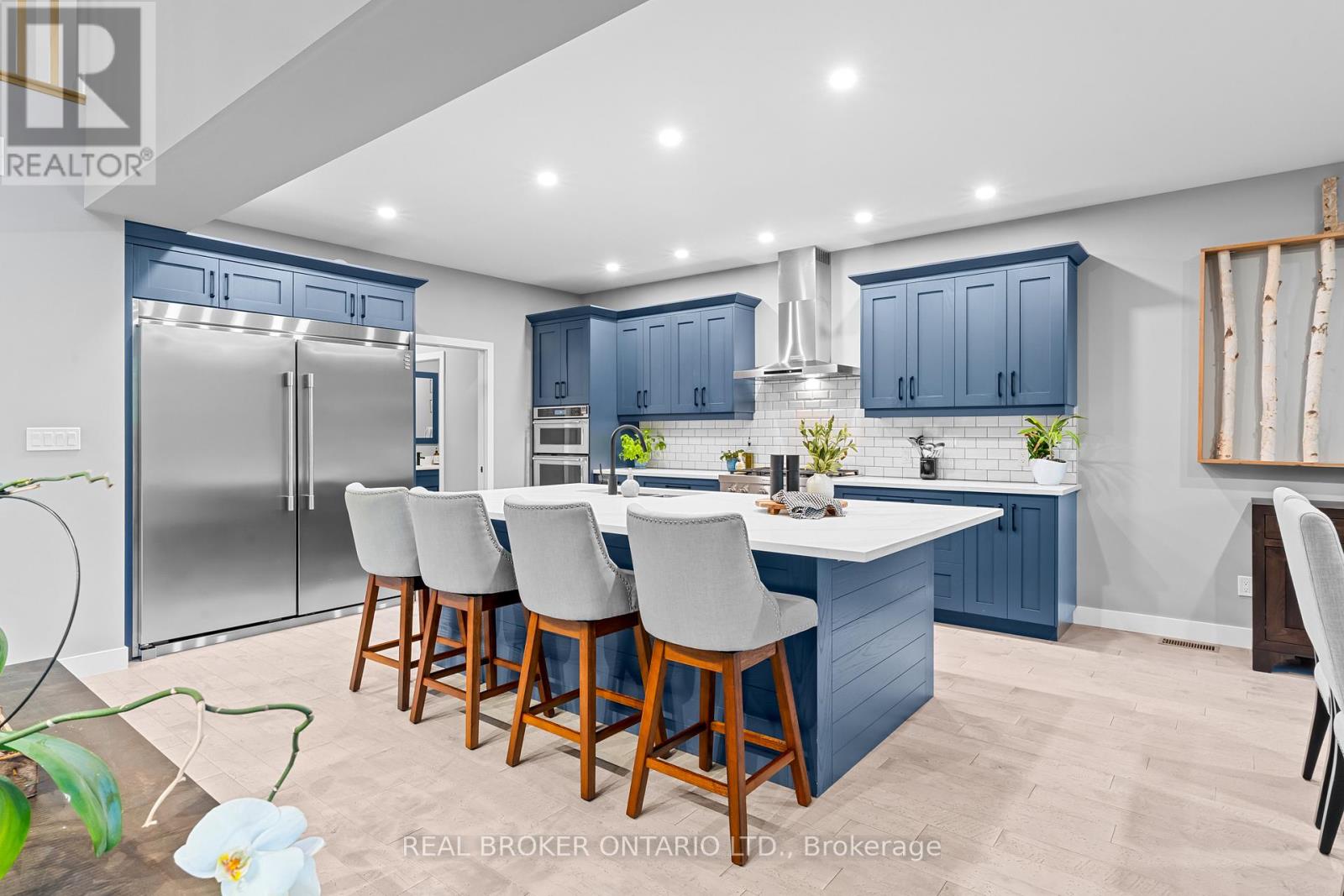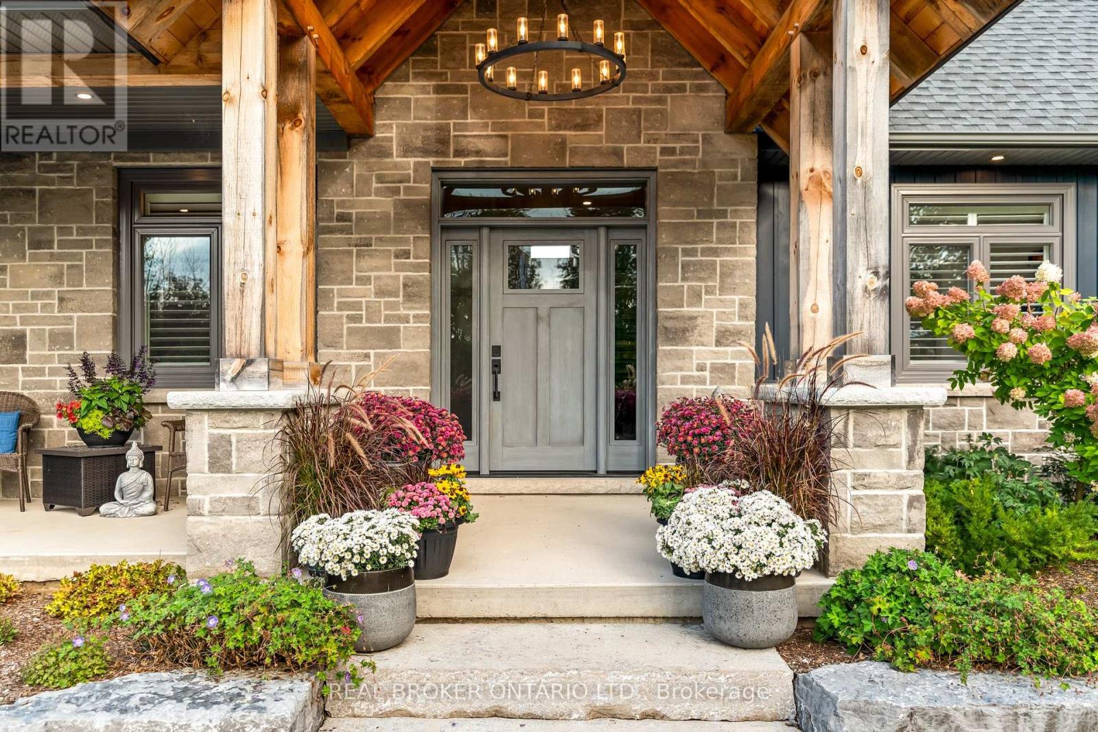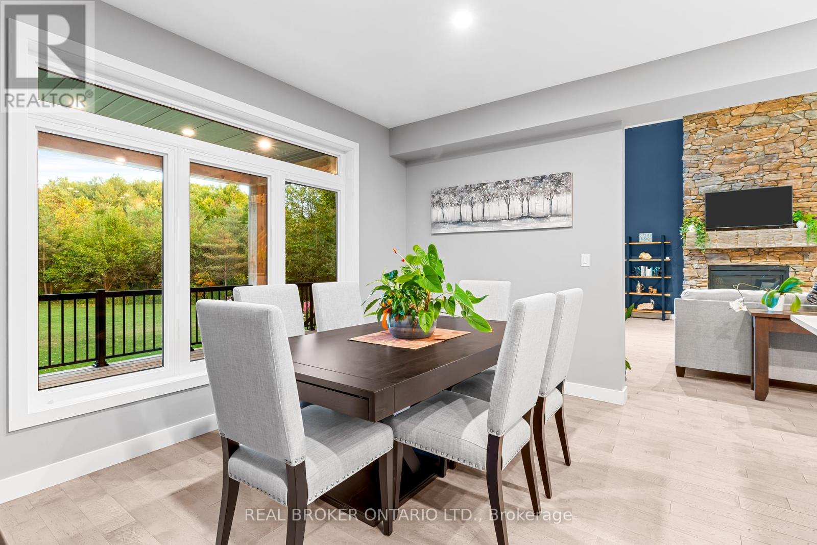An extraordinary lifestyle opportunity awaits in a sought after neighbourhood in Georgian bluffs. Refined design and natural beauty come together in perfect harmony. Crafted in 2020, this custom timber frame estate rests on nearly 3 acres of secluded, forested grounds and showcases over 4,600 sq. ft. of thoughtfully curated living space. A true sanctuary, this private residence offers an inspired blend of timeless elegance and modern luxury, perfect for those who cherish space, serenity, and a deep connection to nature.Step inside to find soaring 24 foot height cathedral ceilings, a grand stone fireplace, and expansive windows that invite the forest views indoors. The open concept layout flows into a chefs gourmet kitchen featuring a 9x5 quartz island, premium appliances, and a large walk in pantry, perfect for hosting, or enjoying calm mornings in a peaceful setting.The main floor offers a private primary suite with a spa like ensuite and walk in closet. Upstairs, two additional bedrooms, a full bath, and a quiet loft create space for family or guests. The finished lower level includes two more bedrooms, a large rec room with a bar, and a private access to the garage, ideal for extended family, a wellness studio, or private guest quarters.Over $135,000 in thoughtful upgrades bring confidence and ease, including a Generac whole home generator, new asphalt driveway, professional landscaping with armour stone, and a full security system.The heated and insulated triple garage features high ceilings and oversized doors, perfect for your vehicles, storage needs, and space to keep your ATVs, boats, and recreational toys organized and secure.If youre looking for a luxury home with privacy, space, and connection to nature, yet just minutes from town, this one stands apart. Call your REALTOR today to schedule a private showing! (id:4555)