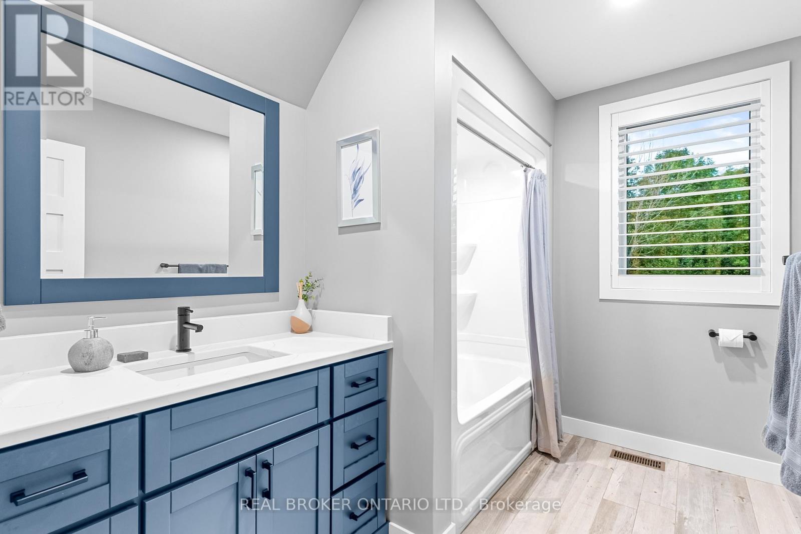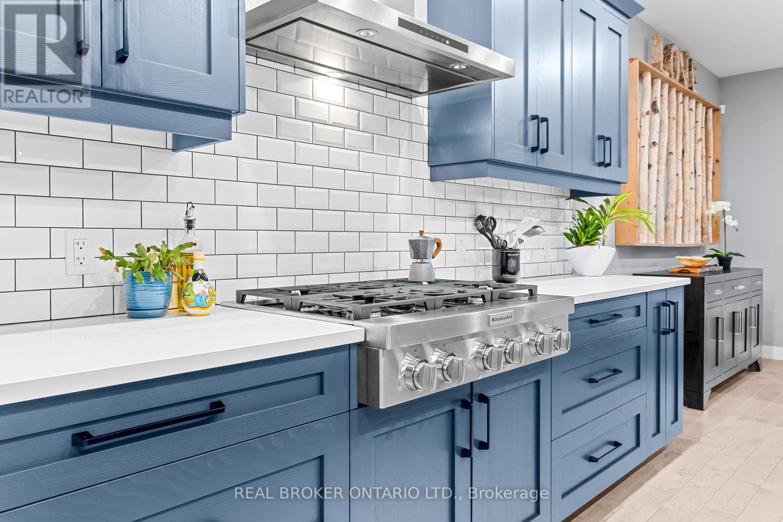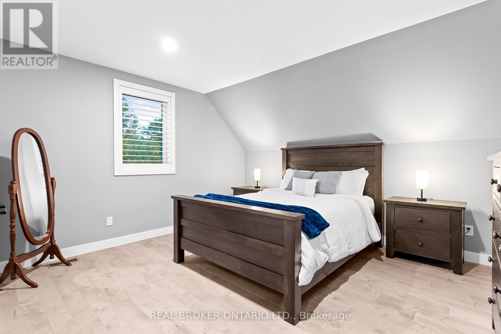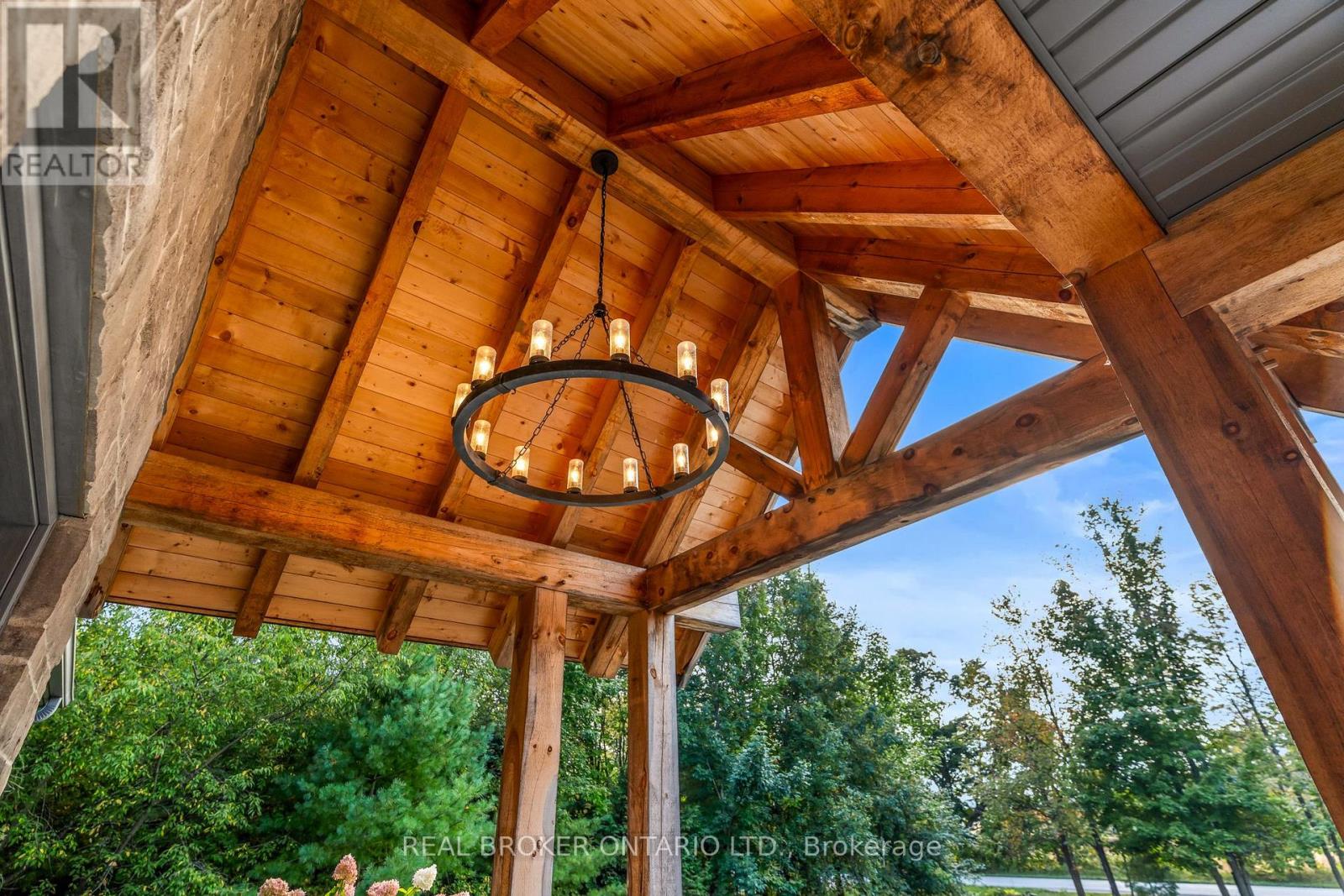 An extraordinary lifestyle opportunity awaits in a sought after neighbourhood in Georgian bluffs. Refined design and natural beauty come together in perfect harmony. Crafted in 2020, this custom timber frame estate rests on nearly 3 acres of secluded, forested grounds and showcases over 4,600 sq. ft. of thoughtfully curated living space. A true sanctuary, this private residence offers an inspired blend of timeless elegance and modern luxury, perfect for those who cherish space, serenity, and a deep connection to nature.Step inside to find soaring 24 foot height cathedral ceilings, a grand stone fireplace, and expansive windows that invite the forest views indoors. The open concept layout flows into a chefs gourmet kitchen featuring a 9x5 quartz island, premium appliances, and a large walk in pantry, perfect for hosting, or enjoying calm mornings in a peaceful setting.The main floor offers a private primary suite with a spa like ensuite and walk in closet. Upstairs, two additional bedrooms, a full bath, and a quiet loft create space for family or guests. The finished lower level includes two more bedrooms, a large rec room with a bar, and a private access to the garage, ideal for extended family, a wellness studio, or private guest quarters.Over $135,000 in thoughtful upgrades bring confidence and ease, including a Generac whole home generator, new asphalt driveway, professional landscaping with armour stone, and a full security system.The heated and insulated triple garage features high ceilings and oversized doors, perfect for your vehicles, storage needs, and space to keep your ATVs, boats, and recreational toys organized and secure.If youre looking for a luxury home with privacy, space, and connection to nature, yet just minutes from town, this one stands apart. Call your REALTOR today to schedule a private showing! (id:4555)