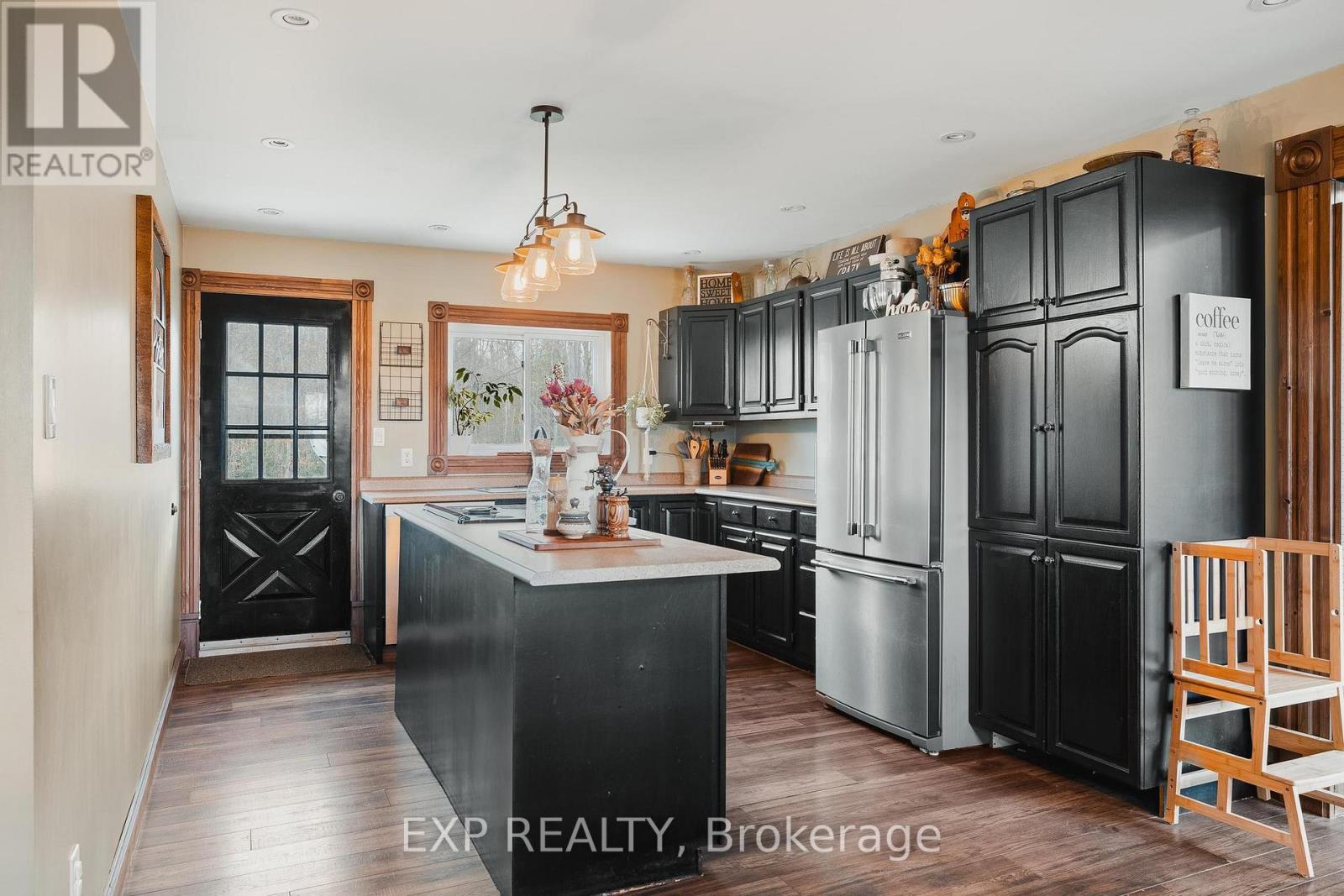 Welcome to 342008 Concession 14, a modern farmhouse retreat tucked into the quiet beauty of Georgian Bluffs. Set on just under an acre and wrapped in mature trees, this updated bungalow offers the kind of calm you can actually feel, the kind that makes you forget the city even exists. Step inside to bright, open living spaces filled with natural light and thoughtful custom details, from the trim work to the barn doors carried throughout the main floor. The newly completed primary suite (2024) feels like a true getaway, complete with a fresh, spa-inspired ensuite. Two additional bedrooms and a modern 4-piece bath round out the main level, keeping family life easy and uncluttered. Downstairs, the finished lower level extends the home's comfort with a fourth bedroom and a cozy wood-burning fireplace, perfect for movie nights or slow winter weekends. This level also offers a third full bathroom and flexible space for guests, hobbies or a quiet retreat. Recent updates bring peace of mind along with the peaceful setting, including a new roof and timber-frame front porch (both 2020), creating a warm and timeless first impression the moment you arrive. And when you're ready to explore, you're minutes from Shallow Lake and a short drive to Wiarton, Sauble Beach and Owen Sound. A place to slow life down with room to breathe, grow and simply be. Welcome home. (id:4555)