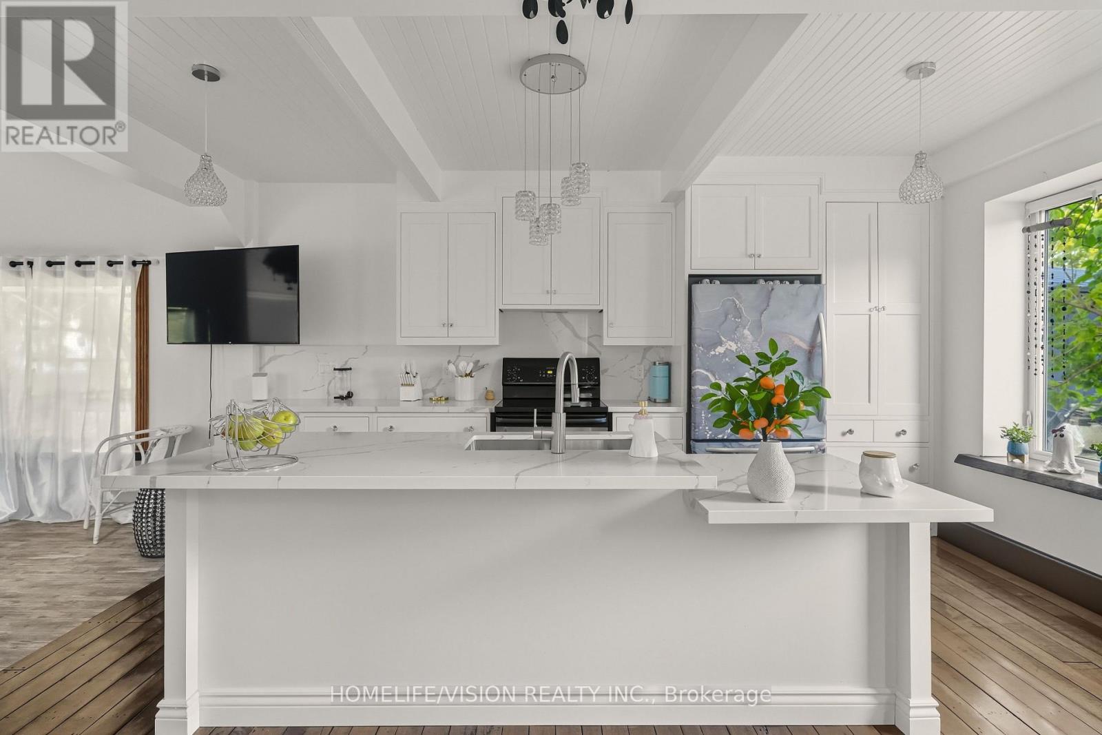This thoughtfully renovated 1.5-storey home on a private road blends modern comfort with cozy charm. Enjoy lake views, mature trees, and a fully fenced yard - perfect for kids, pets, and family gatherings. Vaulted ceilings create a bright, airy feel, and the brand new modern kitchen is a chefs dream with gorgeous quartz countertops, a 36-inch sink, new dishwasher, and all the must-have amenities! Newly renovated bathrooms with one on the main floor and another upstairs. Throughout the home, you'll find all new windows, new interior doors and all new light fixtures. The exterior boasts newer siding and a metal roof. A new shed adds extra storage for all your outdoor essentials! Main floor built with wheelchair accessibility in mind. Located just 10 minutes to Pefferlaw or Beaverton, 17 minutes to Cannington or Sunderland, and only 28 minutes to Uxbridge or Keswick, this home offers small-town serenity with easy access to everything you need. (id:4555)