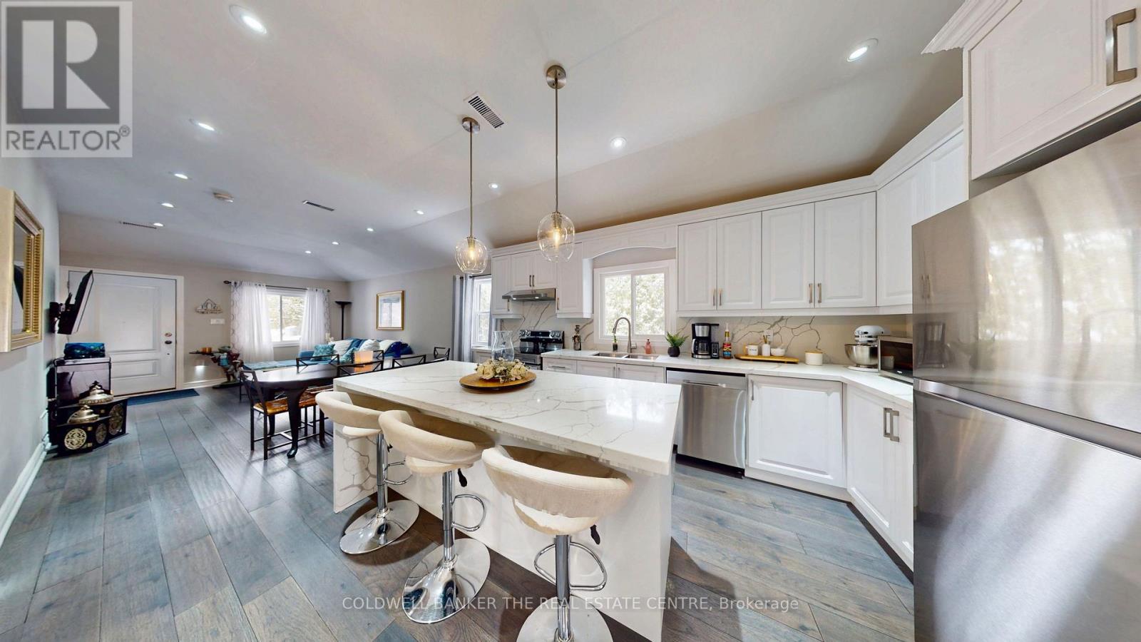 Stunning Turnkey Bungalow with Private Lake Simcoe Access!Welcome to single-level luxury living in this completely renovated 3-bedroom, 2-bathroom bungalow. Every detail has been thoughtfully updated, offering a modern, move-in-ready experience. The heart of the home is the open-concept living, dining, and kitchen area, featuring stunning quartz countertops including a large breakfast island, and sleek stainless steel appliances-perfect for entertaining.Escape to the spectacular primary bedroom retreat, boasting soaring vaulted ceilings, dual closets, and a spa-inspired 5-piece ensuite. Enjoy your morning coffee by stepping directly from the primary suite into the fully fenced backyard.Practicality meets style with a covered front porch leading into an oversized attached garage (with rear man door to the yard). Additional upgrades include updated flooring throughout, modern smart switches, a new furnace, and on-demand hot water (rental). The exterior is equally impressive with a large garden shed and plenty of privacy.Located for an exceptional lifestyle, this property includes private community access to Lake Simcoe and is just minutes from Willow Beach Waterfront Park. Enjoy easy access to schools, shopping, and the 404 extension for a seamless commute. Don't miss out on this gem! (id:4555)