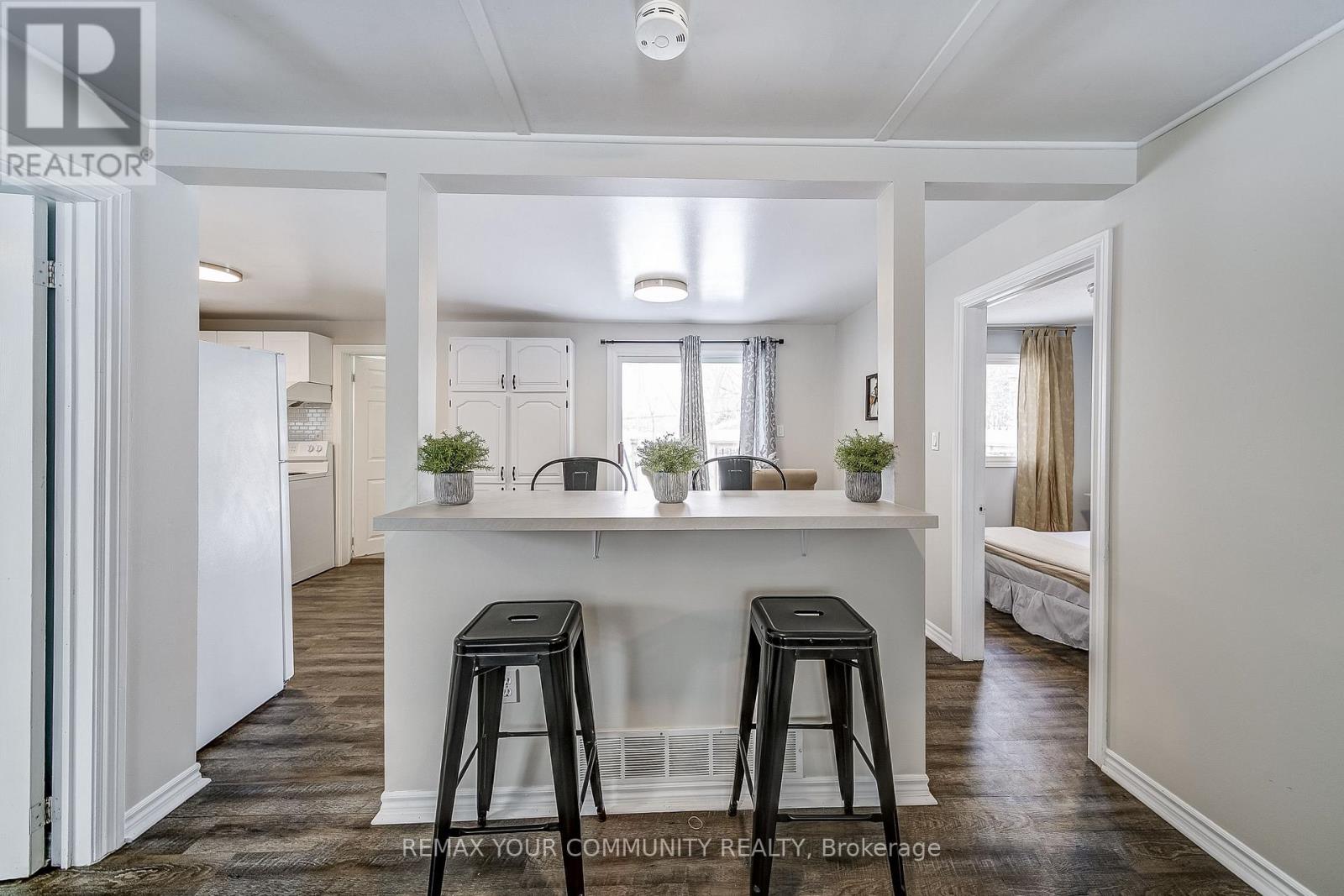IN THIS MARKET IT IS ALL ABOUT VALUE AND HERE IT IS! Don't miss your opportunity to own this detached, updated 3-bedroom bungalow situated on a level 50x127 ft lot. Ideally located within walking distance to the lake and just minutes to shopping, dining, public transit, and Hwy 404. Enjoy private park and lake access at the end of the street (Minimum annual fee), offering year-round recreation in beautiful Cook's Bay. The bright eat-in kitchen features a breakfast bar overlooking the living area, plus a walk-out to a large deck and fully fenced backyard - perfect for entertaining or relaxing outdoors. The home offers three full-sized bedrooms, providing plenty of space to grow. Low-maintenance vinyl flooring runs throughout, complemented by neutral decor. The exterior is tastefully landscaped, and the area above the kitchen includes two finished rooms ideal for indoor storage. A truly move-in-ready home in a desirable lakeside community - this one checks all the boxes! (id:4555)