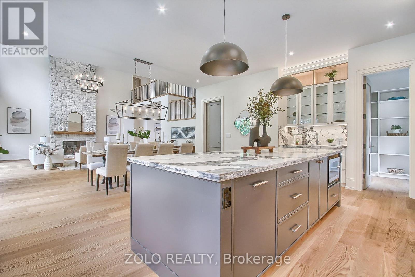 Steps from Lake Simcoe, this custom built masterpiece combines cutting-edge construction with timeless design. Offering approx. 6,800 sq ft of finished living space, the home is built entirely with ICF (Insulated Concrete Form) from the foundation up-delivering exceptional energy efficiency, superior durability, and whisper-quiet comfort. Multi-zone hydronic heating and dual-zone cooling maintain consistent temperatures throughout, making the home more efficient than many properties a fraction of its size. With 4,100 sq ft above grade, every detail has been thoughtfully curated to elevate everyday living. Top 5 Features We Love: 1) The Great Room - 20 ft ceilings, a floor-to-ceiling limestone fireplace, and 16 ft sliding glass doors that create a seamless indoor-outdoor connection. 2) Designer Kitchen - 10 ft centre island, gas range with pot filler, quartz counters/backsplash, walk-in pantry, and built-in stainless steel appliances. 3) Light-Filled, Airy Layout - 10 ft ceilings on the main level and 9 ft ceilings upstairs for an open yet inviting feel. 4) Multi-Zone Heating & Cooling - Hydronic in-floor heating and zoned climate control for warm toes, cool summers, and low utility costs.5) Main Floor Primary Suite - A luxurious retreat with a spa-like ensuite featuring a frameless glass shower, freestanding soaker tub, heated floors, double vanity, premium finishes, and a generous walk-in closet. Bonus Features: Large main floor office/additional bedroom space. Oversized second primary bedroom with ensuite & walk-in closet, 3-car drive-thru garage with direct basement access, 10" baseboards, 8' doors, 100+ LED pot lights, Open-concept upper-level balcony lounge, Walk-in linen closet, EV charger rough-in. And so much more. A passion project by a top GTA premium builder, offering rare construction quality and exceptional value. **Staging furniture has been removed.** (id:4555)