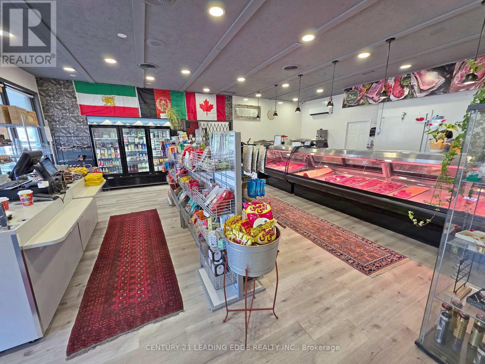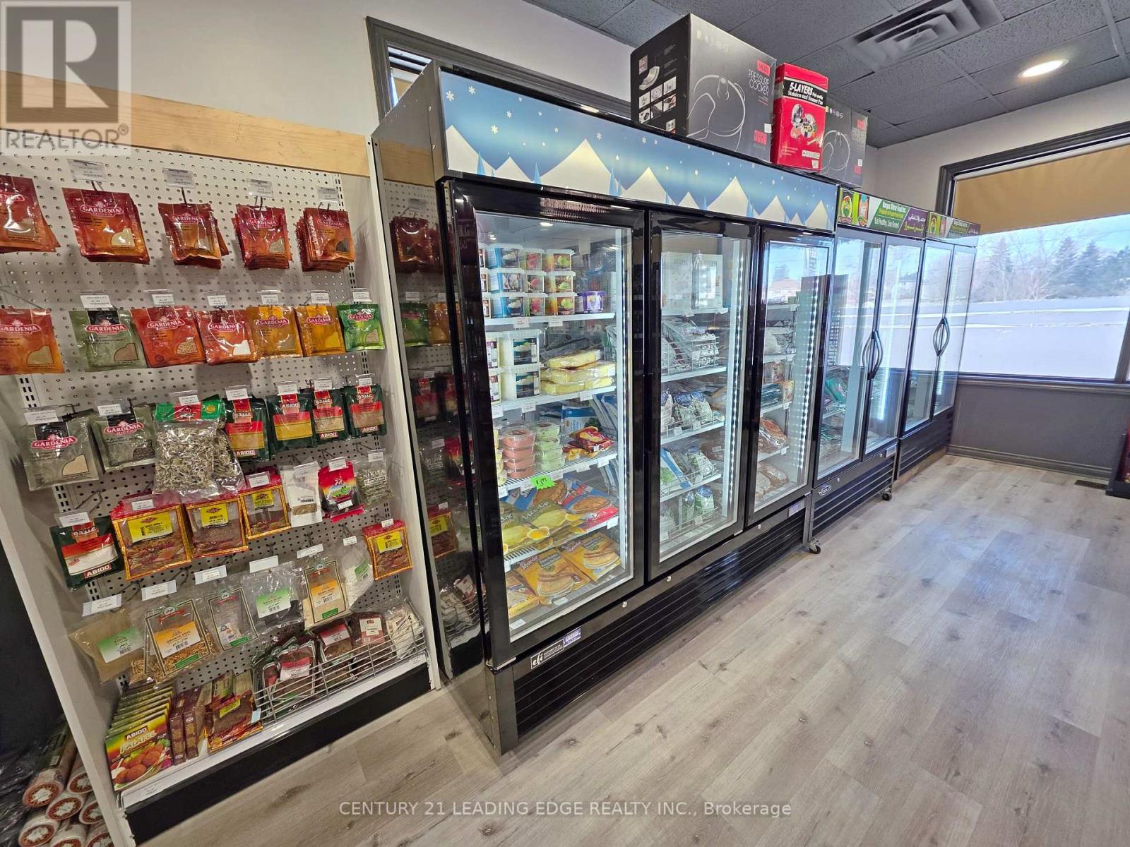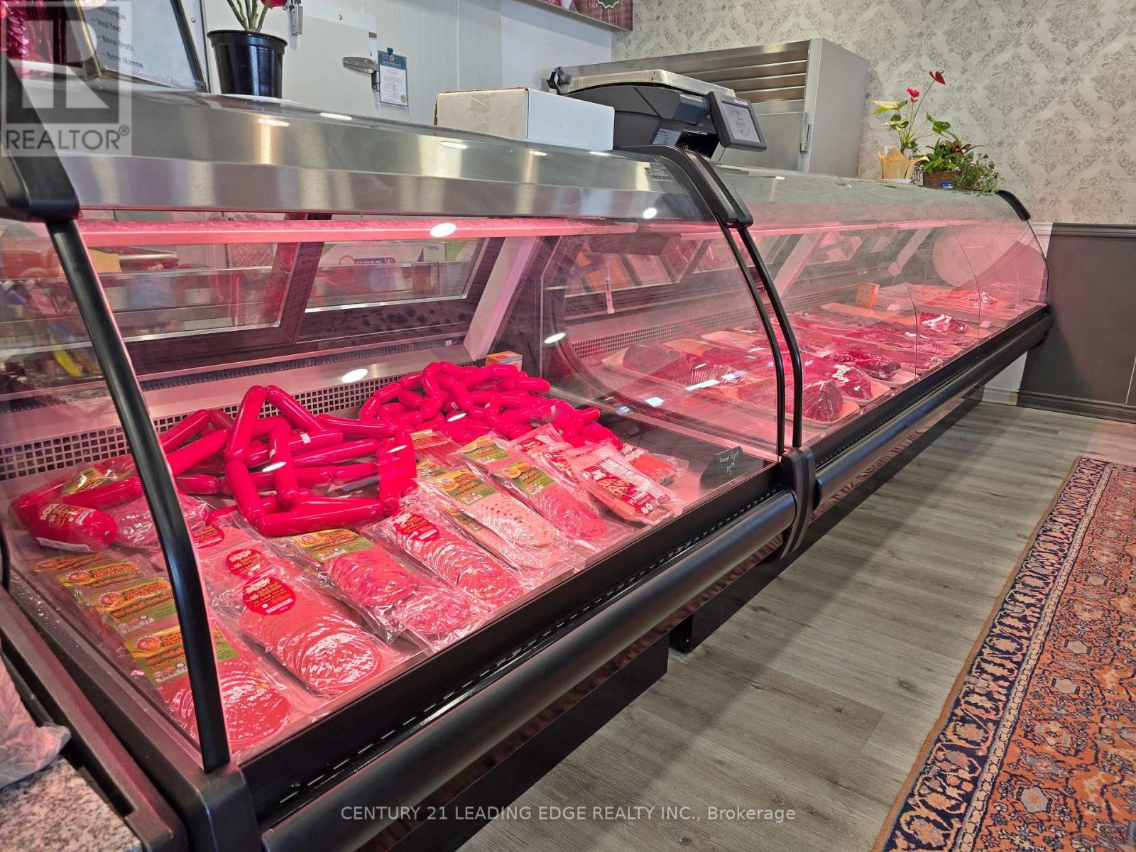 Fully renovated and turn-key, this independent, freestanding Middle Eastern grocery store spans approximately 4,000 sq. ft. and offers an established customer base and excellent visibility on a major roadway in the heart of Keswick. Ideal for owner-operators or investors seeking passive income, with a portion of the unit currently subleased. Enjoy strong cash flow with low overhead and exceptional lease terms! Sale price includes over $300,000 in renovations and $200,000 in equipment. All key chattels include: display shelving, shopping carts (x20), 12' and 4' meat display cases, Bizerba scales (x2), POS systems (x2), TVs (x5), display freezer, display fridge, 3-door freezers (x2), 2-door freezer, meat slicer, meat grinders (x2), VacMaster, meat saw, butcher table, walk-in cooler, and meat marinator/tumbler. A fully accessible basement provides valuable additional storage and potential for business expansion. Conveniently located in a growing residential area surrounded by thousands of homes with more under construction. Close to all town amenities: schools, parks, shopping, restaurants, community centres, beaches, marinas, Highway 404, and lots more! (id:4555)