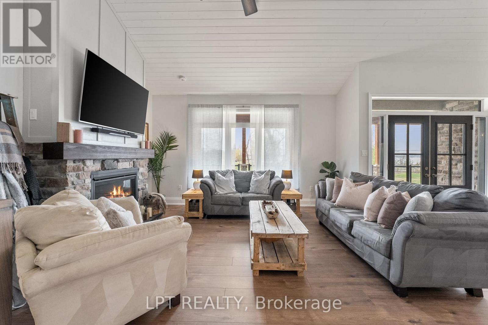 Where Luxury Meets Lake Life. Nestled In The Exclusive Lakeside Community Of Balfour Beach, This Incredible Property Offers Unobstructed Lakefront Views, Access To A Private Park, Sandy Beach, And Marina, And The Ease Of Community-Maintained Landscaping - Making Every Day Feel Like A Getaway. Step Inside This Beautifully Custom-Crafted Raised-Bungalow, Built In 2020, Offering Over 1600 Sq Ft On The Main Floor With Soaring Cathedral Ceilings, Engineered Laminate Floors, A Stunning Gas Fireplace, And A Spacious Open-Concept Layout Designed For Effortless Living And Entertaining. The Custom Kitchen Is A True Showstopper With A Large Centre Island, Quartz Counters, Pantry And Thoughtful Finishes Throughout. With 3+1 Bedrooms And Four Bathrooms, There's Plenty Of Space For Both Family And Guests. Downstairs, The Lower Level Is Mostly Finished And Ready For Your Personal Touches - Ideal For A Recreation Room, Additional Living Space, Or Guest Suite. Radiant In-Floor Heating Runs Throughout The Basement And Continues Into The Extra-Wide, Drive-Thru Two-Car Garage. Outside, A 40 Ft X 8 Ft Covered Front Porch Offers The Perfect Spot To Take In The Breathtaking Sunsets, While The Large Breezeway And Expansive Yard Add Even More Room To Relax Or Entertain. Just 10 Minutes From Highway 404 And Close To All Amenities, This Is Where Staycations Become Your Everyday Norm - With Views You'll Never Want To Leave. (id:4555)
