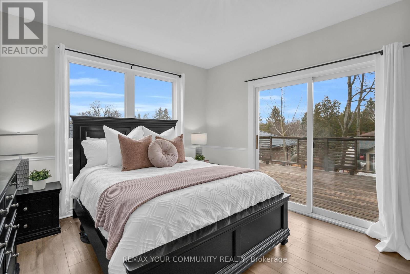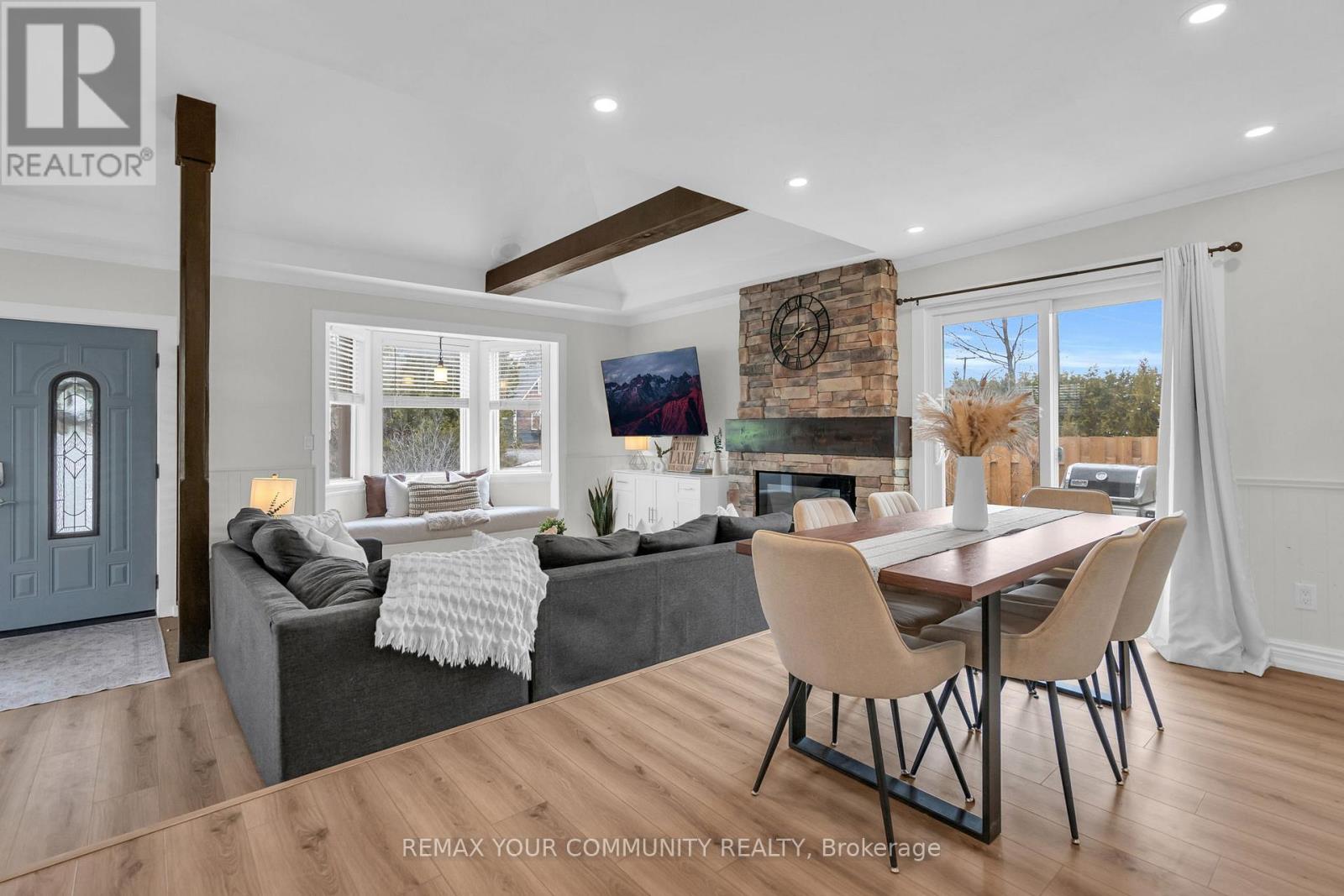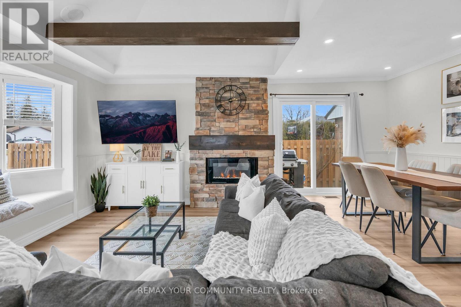Just steps from Lake Simcoe with exclusive residents only lake access, this well maintained home features a bright updated kitchen with quartz countertops, new flooring throughout the main floor, fresh paint, and plenty of natural light. The sunken living room is full of character with cathedral ceilings, wooden beams, a cozy bow window nook, and a beautiful new fireplace feature. The spacious primary suite offers a private ensuite and walkout to a balcony perfect for peaceful mornings. Sliding doors off the dining room lead to a fully fenced, beautifully landscaped backyard with a spacious driveway that leads right to the back, a shed for extra storage and a large detached garage with heat & hydro. Located in a sought after lakeside community, this home is perfect for relaxed living near the water. (id:4555)
