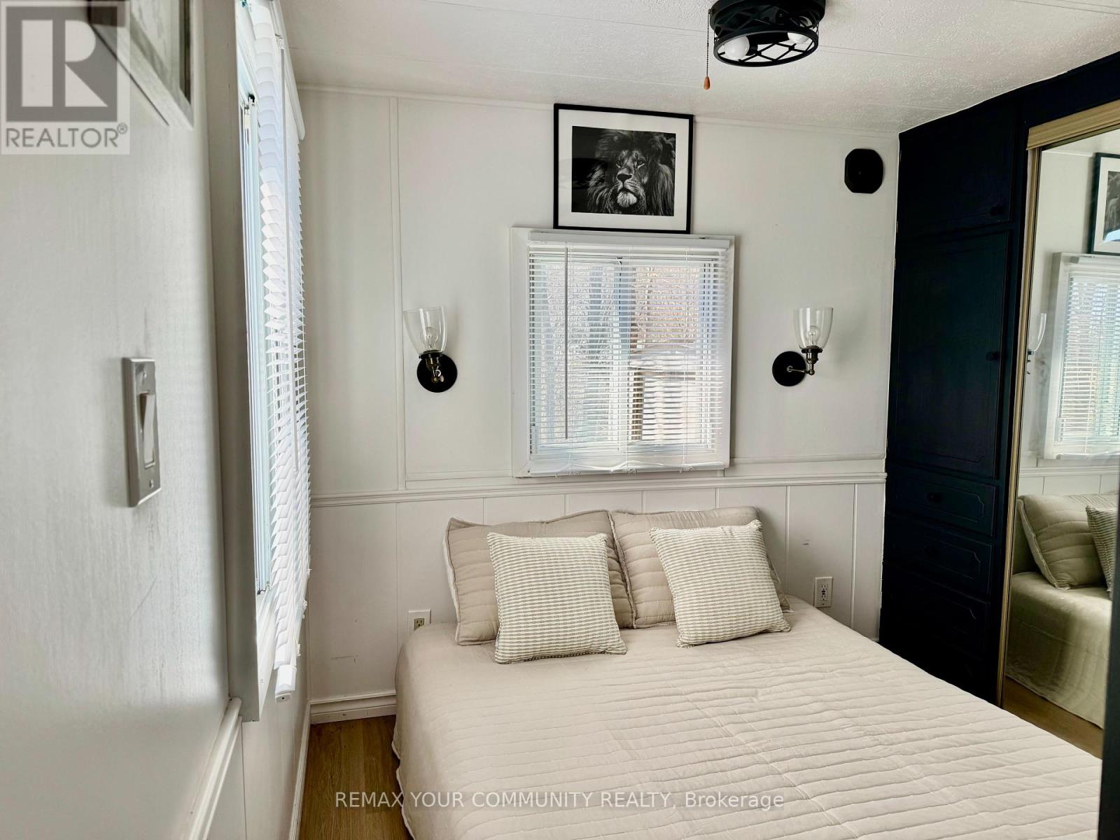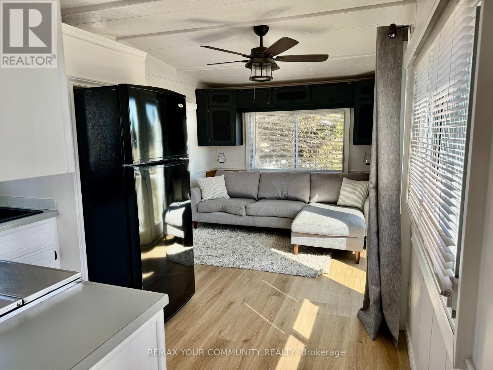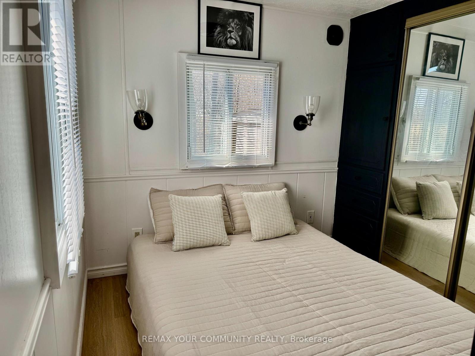 Welcome to affordable living! Cute and cozy 1+1 Bedroom, situated in popular Lyndhurst golf and park! Approximately 10 minutes from Lake Simcoe, and just under 15 minutes to the highway 404 extension! Backing onto Green space, enjoy this lot with no neighbours behind. Open concept home, one bedroom with a den! Updates include roof (re tarred) hot water tank owned, vinyl siding, vapor barrier and insulated al approximately 2023. Enjoy walking trails, an inground pool, and just steps from a beautiful 18 hole golf course! This home is located on leased land. The lease from April 26th to October 26th is $3575.00 plus HST. (id:4555)