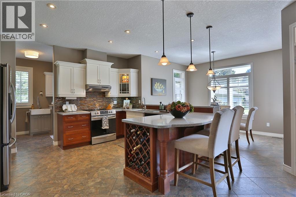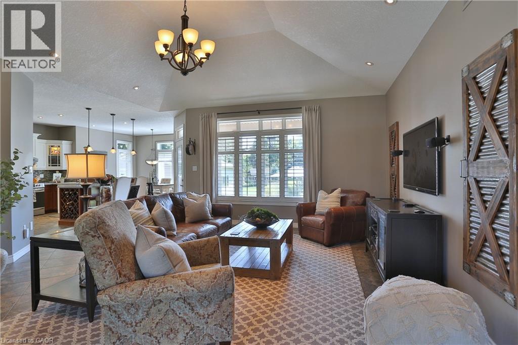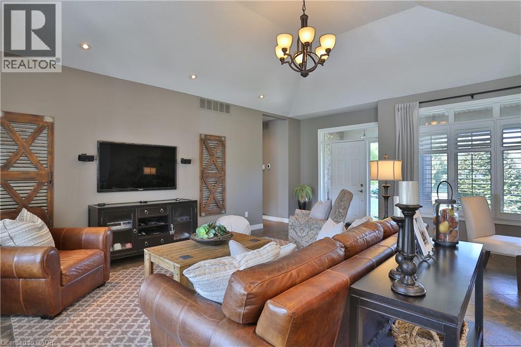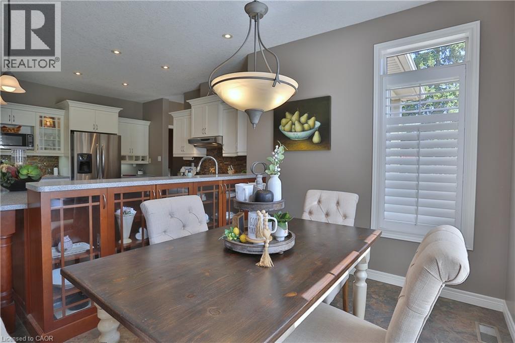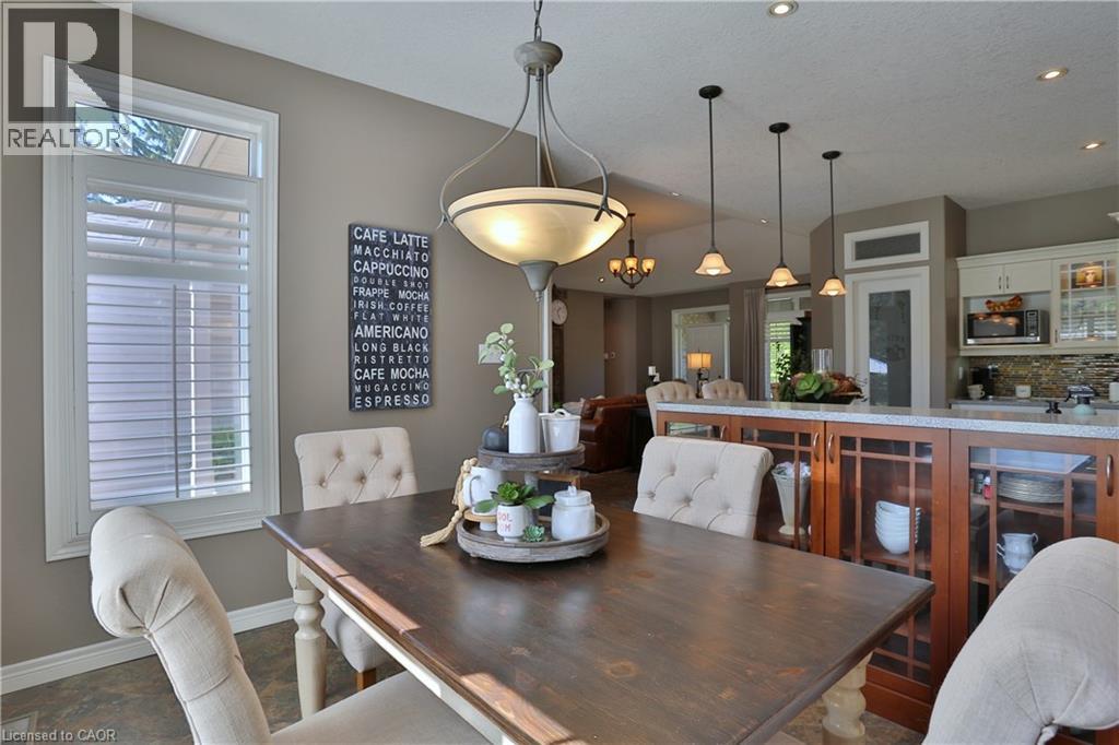 Welcome to this beautifully maintained Bungalow in the charming village of Glen Morris, offering the perfect blend of space, comfort, and versatility for modern living. Set on just over half an acre, this property is surrounded by mature trees and features a newly paved driveway with ample parking, along with both a 2-car attached garage and an impressive 24' x 40' drive-through detached garage with heated floors—ideal for hobbyists, contractors, or extra storage. The main floor offers a bright and spacious layout with 9’ ceilings and a stunning vaulted ceiling in the living room, enhanced by elegant transom windows that fill the space with natural light. You’ll find 3 generously sized bedrooms, including a large primary suite complete with a walk-in closet and private en-suite bathroom featuring heated floors for added comfort. Step outside to enjoy the private backyard retreat, featuring a deck and ground level interlocking patio—perfect for entertaining or relaxing while taking in the peaceful surroundings. The fully finished basement is exceptionally well-suited for extended family or multi-generational living, offering a direct walk up entrance, 3 additional bedrooms, bathroom, and a kitchenette. Located in a quiet, family-friendly community with a small-town feel, this property offers the space you want with the flexibility you need with over 3500 finished SqFt. A rare opportunity to enjoy country-style living with all the conveniences of a thoughtfully designed home. (id:4555)
