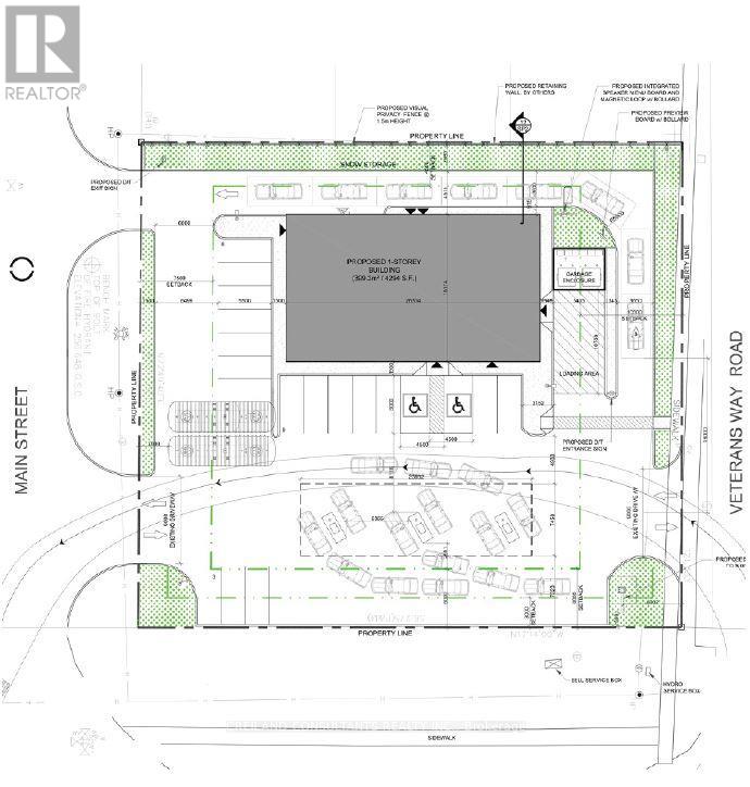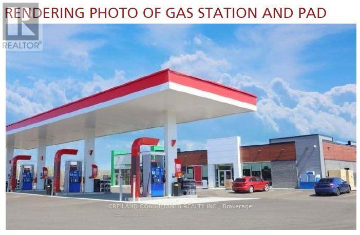 Exceptional 0.70-acre of land with site plan approval for a gas station business and a retail investment development opportunity. The site is approved for a +/- 4,294 SF commercial retail building consisting of three units with an endcap drive-thru wrap around, a three gas pump bar, two underground storage tanks, and 19 parking spaces (2 H. accessible). The property has frontage on three streets along with multiple access points from both Main Street and Veterans Way. Esso-approved location with projected 5 million litres. LOI from petroleum retailers to lease gas bar and c-store for $175,000 + TMI per annum. Preliminary interests from franchise QSR brands for the retail units projecting over $110,000 annual rental income. (id:4555)