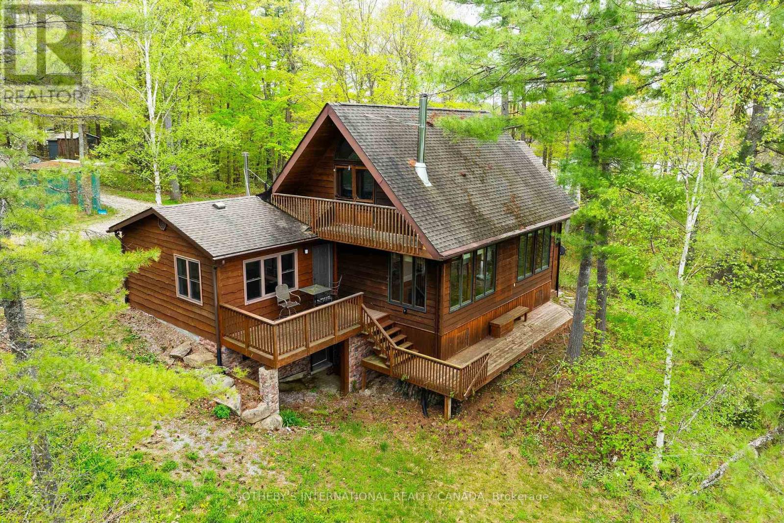 A Muskoka Rarity: 29-Acre Waterfront Estate with Over 2,200 Feet of Shoreline. Welcome to an extraordinary waterfront offering 29.41 acres of complete privacy and over 2,230 feet of pristine south-to-west-facing shoreline on beautiful Bass Lake, with direct boat access into Kahshe Lake. Whether you're dreaming of a year-round residence or a four-season retreat, this one-of-a-kind property offers thebest of both worlds: unmatched seclusion, natural beauty, and endless potential. The land is a stunning mix of level terrain and iconic Muskoka granite, with mature pines, curated perennial gardens, and a private sandy beach tucked into your own quiet cove. A thriving raised bed vegetable garden and charming outbuildings including a chicken coop and tiny cabin on the point add to the charm and functionality. The main residence offers approximately 2,000 square feet of well-kept living space with 3 bedrooms and 2 bathrooms. A separate 1,200 sq. ft. heated garage/workshop with an unfinished loft provides opportunity for guest quarters, a studio, or home office. The septic system is sized for 4 bedrooms, offering future flexibility. Additional outbuildings include a 28 x 32 detached garage and multiple storage structures. The property is also well-positioned for potential severance, without compromising its serene character. Located just two hours from Toronto, this rare legacy property invites you to swim, paddle, fish, or simply take in spectacular sunsets from your own shoreline. The setting is magical,the lifestyle exceptional - and the possibilities, endless. (id:4555)