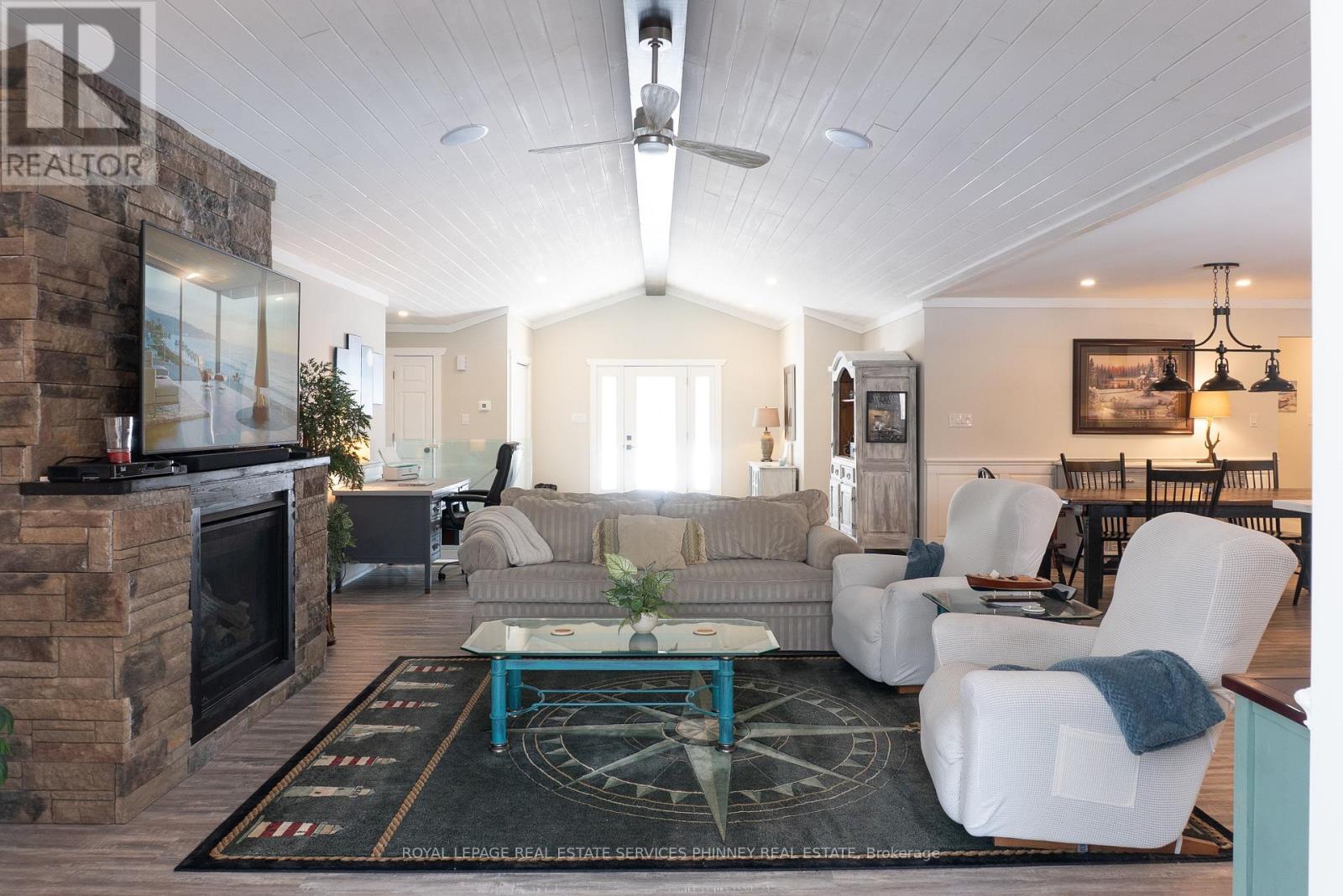 Welcome to this stunning custom-built bungalow in the Muskoka area, nestled in one of the most sought after communities of custom built homes, this breathtaking property offers the perfect blend of luxury, privacy, and natural beauty. Surrounded by a lush, private treed lot, the home is an architectural masterpiece designed to maximize both elegance and comfort. As you enter, you are greeted by soaring ceilings, expenspansive windows , and an open concept floorplan that flows seamlessly from room to room. The gourmet kitchen is a chefs dream featuring high-end appliances, custom cabinetry and spacious quartz countertop island, perfect for entertaining. This exquisiteresidenceoffers4,140 sq. ft. of finished living space, blending luxurious finishes with modern conveniences. The lower level features a fully finished basement with a second kitchen, ideal for hosting gatherings or as an in-law suite. For the car enthusiast or those in need of extra storage, the massive 30'x 42' (1,200 sq. ft.) garage is insulated, heated, and roughed in for a generator and an electric car charging station, ensuring you have all the space and amenities you need. Outside, the private, treed lot offers ample space and privacy, with a septic-bed in the front yard that provides the perfect opportunity to add a pool in the backyard to complete your dream home. This exceptional property offers unparalleled quality, and potential. Don't miss your chance to own this one-of-a-kind home in a community of luxury. (id:4555)