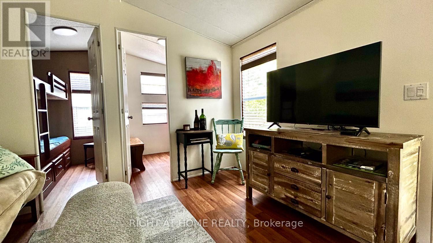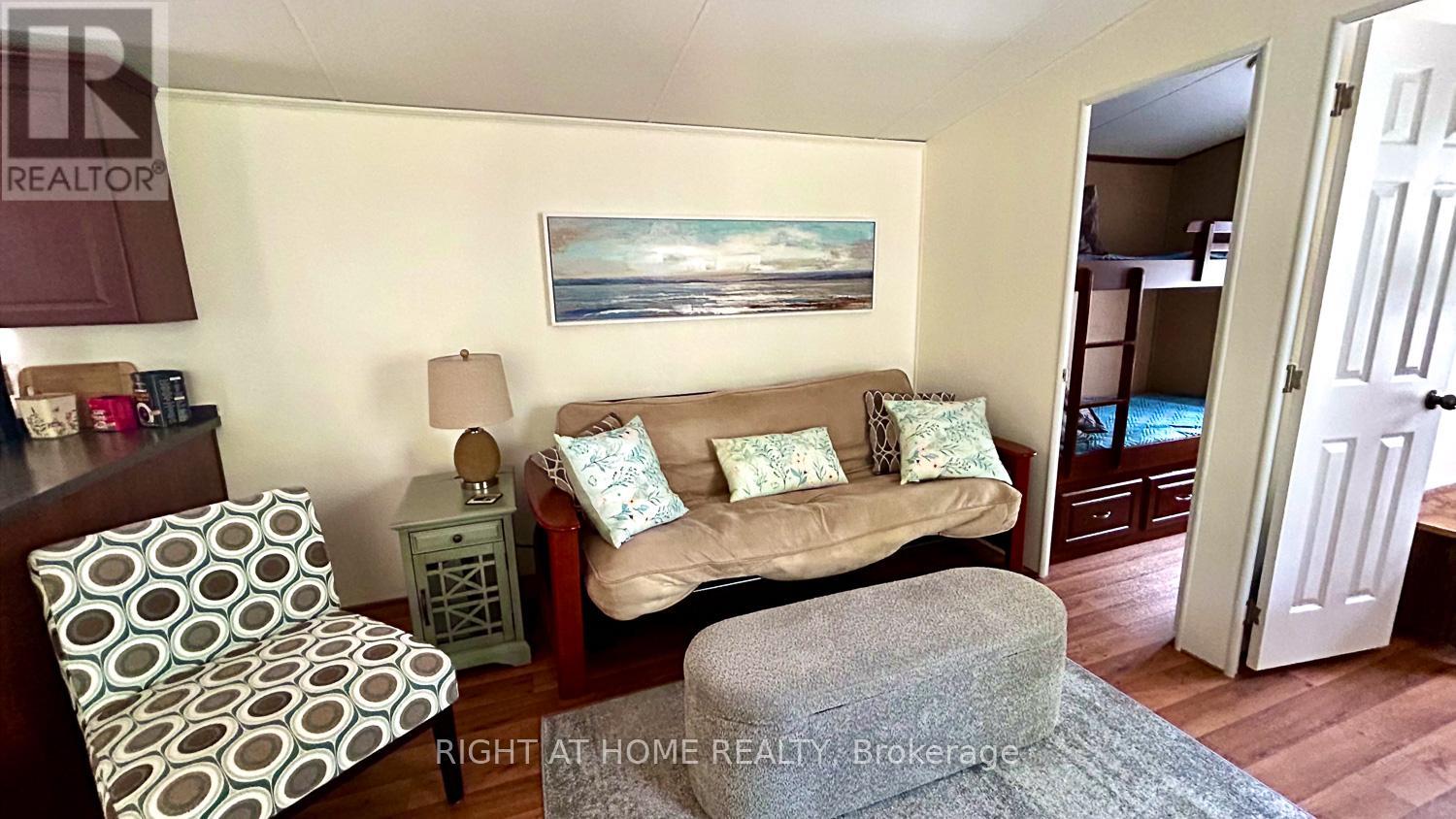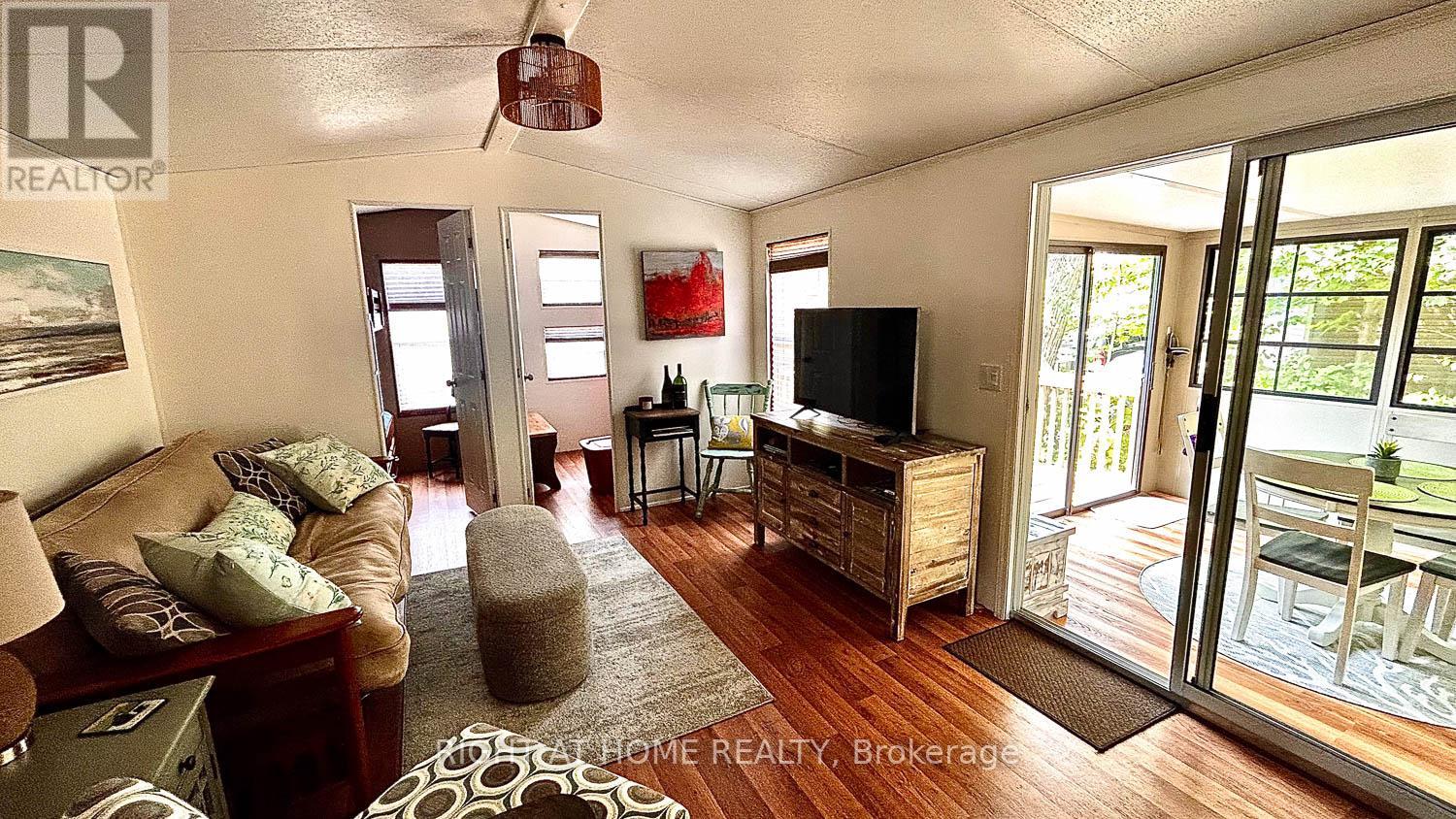 ~ PRICED TO SELL! MOTIVATED! RESORT OPENS MAY 1 ~ There is no better alternative to owning a TURNKEY cabin by the lake than becoming an owner at Lantern Bay Resort, a waterfront, family/pet-friendly seasonal cottage resort in Gravenhurst. Just imagine: a cozy cabin built in 2010 with 3 bedrooms and sunroom (used as dining area), a front + back deck, and located on a rustic lot with partial water views. PRIVACY GALORE! A true "cabin in the woods" vibe surrounds you. The cabin itself has been freshened up with a lighter colour palette, stylish furniture and accessories, new lighting w/ dimmers, and new LVP flooring in the sunroom with a DRICORE subfloor, and much more. Lantern Bay is one of 8 resorts in the Great Blue family with amenities that include (2) heated pools, a community pavilion, a multi-sports court, playground, fitness centre, laundry, pickleball court, private beach, non-motorized watercraft, and organized events throughout the season. The seasonal fee of $10,450 + HST includes ALL AMENITIES (a 5-min walk from path across road) + EVENTS, plus lot rental, water, unlimited hydro, sewer, and grounds keeping from May 1 to October 31. BOAT SLIPS available for an additional seasonal fee. Inside, you will have everything you need to kickstart cabin life because most of the furniture (some antiques), accessories, and equipment are INCLUDED. And by the way, this is not one of those cabins from summer camp: you have a propane-powered furnace, electric-powered central air, and a nicely appointed kitchen. The flooring is a commercial grade, non-slip vinyl that can handle serious wear and tear. The 3rd bedroom (a former bedroom w/ kiddie bunk beds) has been converted to an office but if you need more sleeping room, the futon couch folds down to a comfy double bed. If you think living the cottage country dream in Muskoka is not possible, book a showing and tour at Lantern Bay Resort and you'll quickly discover how POSSIBLE (and AFFORDABLE) it can be. (id:4555)