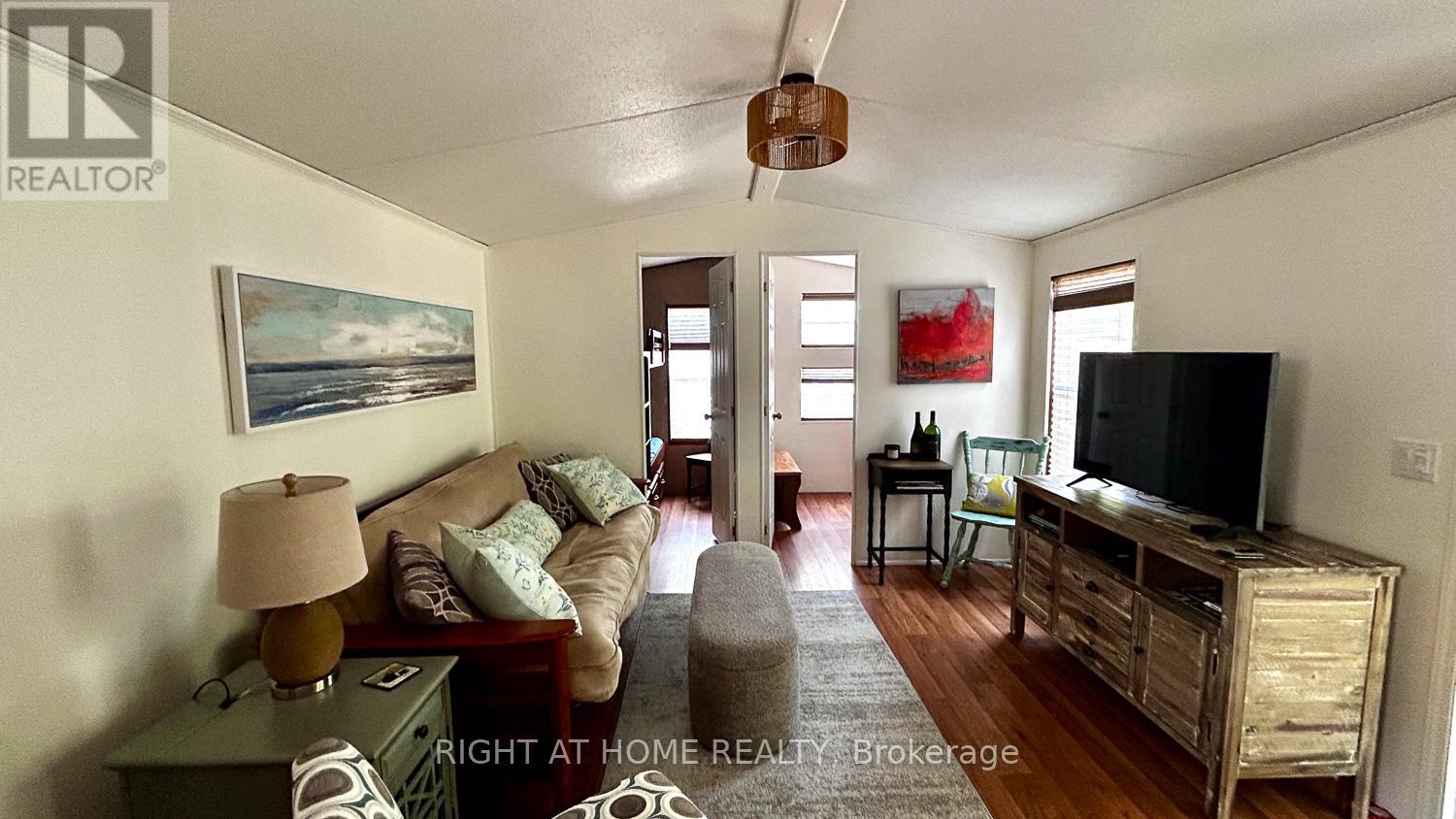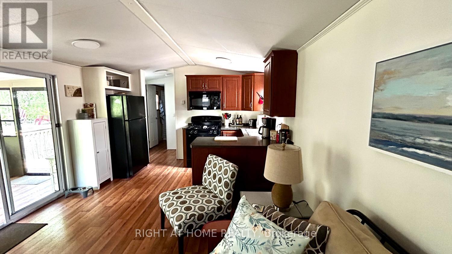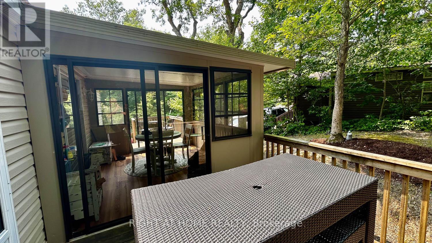 ~ PRICED TO SELL! MOTIVATED! RESORT OPENS MAY 1 ~ There is no better alternative to owning a TURNKEY cabin by the lake than becoming an owner at Lantern Bay Resort, a waterfront, family/pet-friendly seasonal cottage resort in Gravenhurst. Just imagine: a cozy cabin built in 2010 with 3 bedrooms and sunroom (used as dining area), a front + back deck, and located on a rustic lot with partial water views. PRIVACY GALORE! A true "cabin in the woods" vibe surrounds you. The cabin itself has been freshened up with a lighter colour palette, stylish furniture and accessories, new lighting w/ dimmers, and new LVP flooring in the sunroom with a DRICORE subfloor, and much more. Lantern Bay is one of 8 resorts in the Great Blue family with amenities that include (2) heated pools, a community pavilion, a multi-sports court, playground, fitness centre, laundry, pickleball court, private beach, non-motorized watercraft, and organized events throughout the season. The seasonal fee of $10,450 + HST includes ALL AMENITIES (a 5-min walk from path across road) + EVENTS, plus lot rental, water, unlimited hydro, sewer, and grounds keeping from May 1 to October 31. BOAT SLIPS available for an additional seasonal fee. Inside, you will have everything you need to kickstart cabin life because most of the furniture (some antiques), accessories, and equipment are INCLUDED. And by the way, this is not one of those cabins from summer camp: you have a propane-powered furnace, electric-powered central air, and a nicely appointed kitchen. The flooring is a commercial grade, non-slip vinyl that can handle serious wear and tear. The 3rd bedroom (a former bedroom w/ kiddie bunk beds) has been converted to an office but if you need more sleeping room, the futon couch folds down to a comfy double bed. If you think living the cottage country dream in Muskoka is not possible, book a showing and tour at Lantern Bay Resort and you'll quickly discover how POSSIBLE (and AFFORDABLE) it can be. (id:4555)