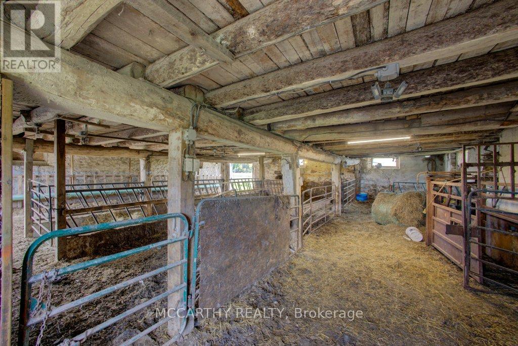 133 acre Farm with beautiful Brick 2.5 storey House, Bank Barn and Driving Shed with workshop. Barn is 52 x 60ft, with 30x 36ft add on, Driving Shed 40 x 44 ft with gravel floor and 30 x 40 ft Workshop with concrete floor and insulated. 80 Acres in hay and pasture. Fenced for cattle. Bank barn is set up for Cattle, feeding trough down the middle of the barn. House has Large Primary Bedroom on second Floor, with 9ft high ceilings, broadloom, His and Hers closets with pretty barn door style doors. Second Bedroom is large with lots of natural light from 2 large windows. Windows are updated. 3rd floor is a finished attic, with stairs for easy access, has three skylights for natural lighting . Wood floors and is heated. Use for extra bedroom, rec room , play room, office or storage. Enter the home off a large wrap around deck. Plenty of room to entertain. Walk into the Family room with tile floor, large windows and cozy wood stove. Has hook up for laundry if desire to have main floor laundry. Relax in the large Living room with Stone hearth with wood mantel over a wood fire place. Plenty of room for your oversized couch and chairs. Formal Dining room, has high ceilings and room for table for 14. Tall windows bring in the natural Light. Kitchen has updated corian countertops, farmhouse sink with window overlooking the expansive deck. Plenty of room for Family dinners and entertaining. This farm is waiting for its next family to enjoy the peaceful location. Pond and beautiful gardens. Pretty lawns for running and playing. Property is conveniently located beside an unopened road allowance and goes all the way back to have a frontage on another municipal road. So many opportunities for a Farmer, Hobby Farm, country Homestead. Come and see this beautiful property before it is gone. (id:4555)