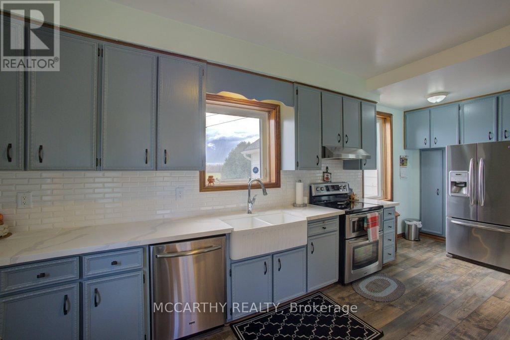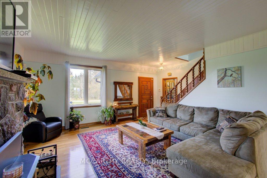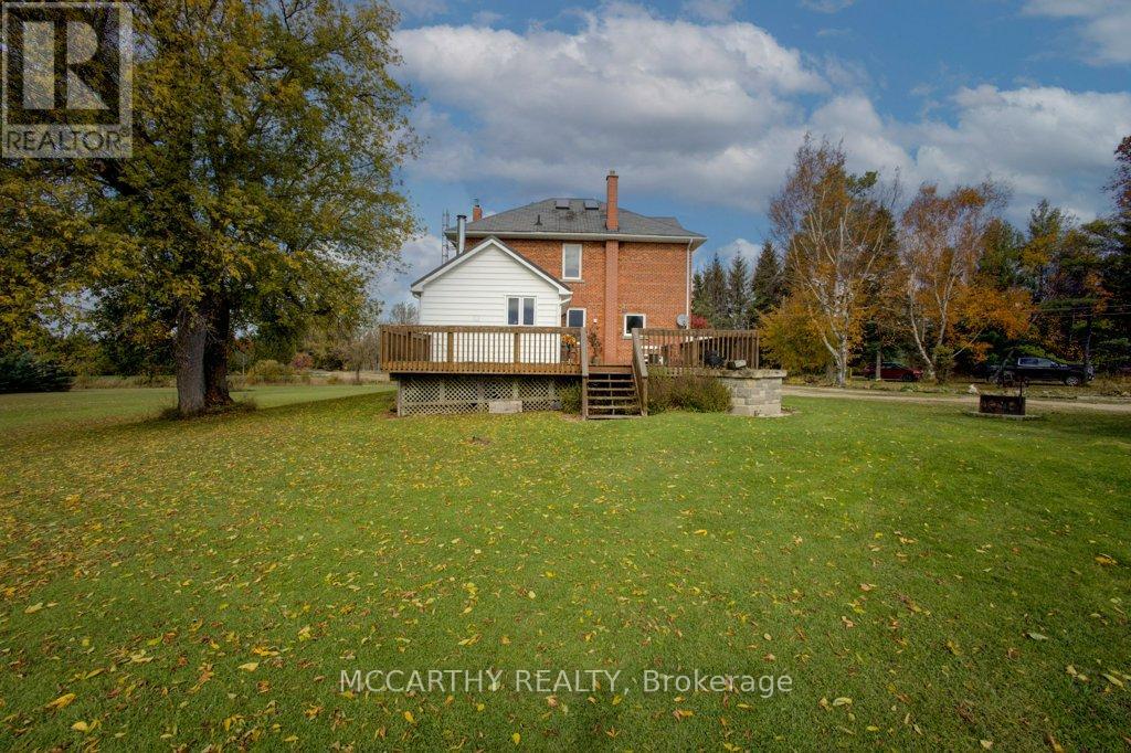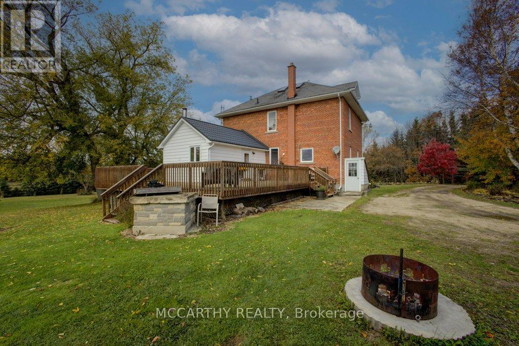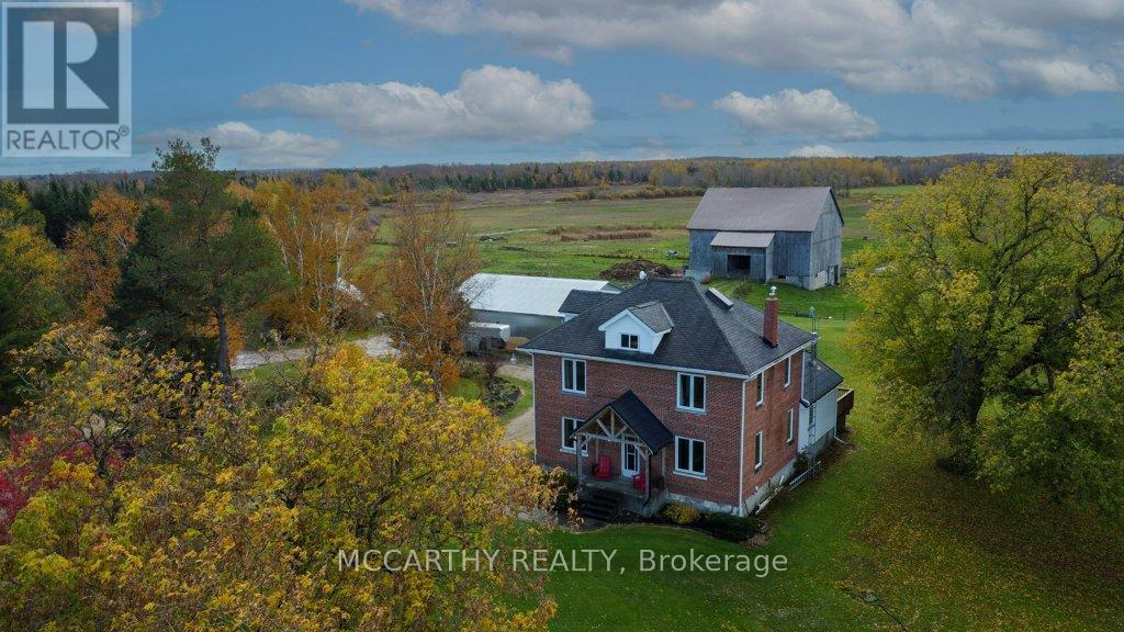 133 acre Farm with beautiful Brick well Maintained 2.5 storey House, Good Bank Barn and large Driving Shed with workshop. Barn is 52 x 60ft, with 30x 36ft add on, Driving Shed 40 x 44 ft with gravel floor and 30 x 40 ft Workshop with concrete floor and insulated and heated. 80 Acres in hay and pasture. Fenced for cattle. Bank barn is set up for Cattle, feeding trough down the middle of the barn. Enter the home off a large wrap around deck. Plenty of room to entertain. Walk into the Family room with tile floor, large windows and cozy wood stove. Has hook up for laundry if desire to have main floor laundry. Relax in the large Living room with Stone hearth with wood mantel over a wood fire place. Plenty of room for your oversized couch and chairs. Formal Dining room, has high ceilings and room for table for 14. Tall windows bring in the natural Light. Kitchen has updated countertops, farmhouse sink with window overlooking the expansive deck. Plenty of room for Family dinners and entertaining. Pretty 2.5 story House has Large Primary Bedroom on second Floor, with 9ft high ceilings, broadloom, His and Hers closets with pretty barn door style doors. Second Bedroom is large with lots of natural light from 2 large windows. Windows are updated. 3rd floor is a finished attic, with stairs for easy access, has three skylights for natural lighting . Wood floors and is heated. Use for 3rd extra bedroom, rec room , play room, office, craft, quilt room, Man cave or storage. This farm is waiting for its next family to enjoy the peaceful location. Pond and beautiful gardens. Pretty lawns for running and playing. Property is conveniently located beside an unopened road allowance and goes all the way back to have a frontage on another municipal road. So many opportunities for a Farmer, Hobby Farm, country Homestead. Farming or recreation this is a pretty Farm with easy commute to Ski hills Come and see this beautiful property It is a must see! (id:4555)