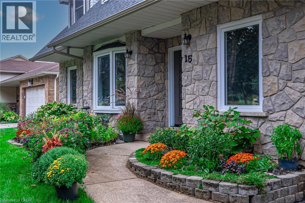 Tucked under a canopy of mature trees in one of Grimsby’s most peaceful lake-adjacent neighbourhoods, 15 Blue Forest Drive is where space, comfort, and timeless charm come together. With over 2,000 sq ft above grade and a fully finished basement, this home offers a family-friendly floor plan with thoughtful zones for relaxing, gathering, and entertaining — both indoors and out. Inside, you'll find five bedrooms and 3.5 bathrooms across three finished levels. The main floor invites connection with a bright and welcoming living room, a separate dining space with bay windows, and a cozy family room anchored by a classic wood-burning fireplace — perfect for game nights and laid-back evenings. The refreshed kitchen features granite countertops, updated cabinet doors, and pull-out storage, with direct access to the backyard patio and gazebo — ideal for hosting summer dinners or morning coffee in the fresh air. Upstairs, four spacious bedrooms include a primary suite complete with walk-in closet and private 4-piece ensuite. The finished basement offers exceptional flexibility with a rec room, home gym, guest suite or office, and a full 3-piece bath. Outside, the home shines with curb appeal — lush, colourful gardens frame a stately stone façade and newer windows. The fully fenced backyard features a covered gazebo, landscaped patio, garden shed, and certified hot tub wiring ready to go. Located just one street off Lake Ontario, you’re across the road from Cindy Court Park, steps to Grand Avenue School, Bal Harbour Park & lakeside trails, and just minutes to Station One, Bench Brewery, boutique gyms, bakeries, and multiple wineries. With its spacious layout, finished basement, and unbeatable location, this home is tailor-made for growing families ready to level up their lifestyle in Grimsby. (id:4555)
