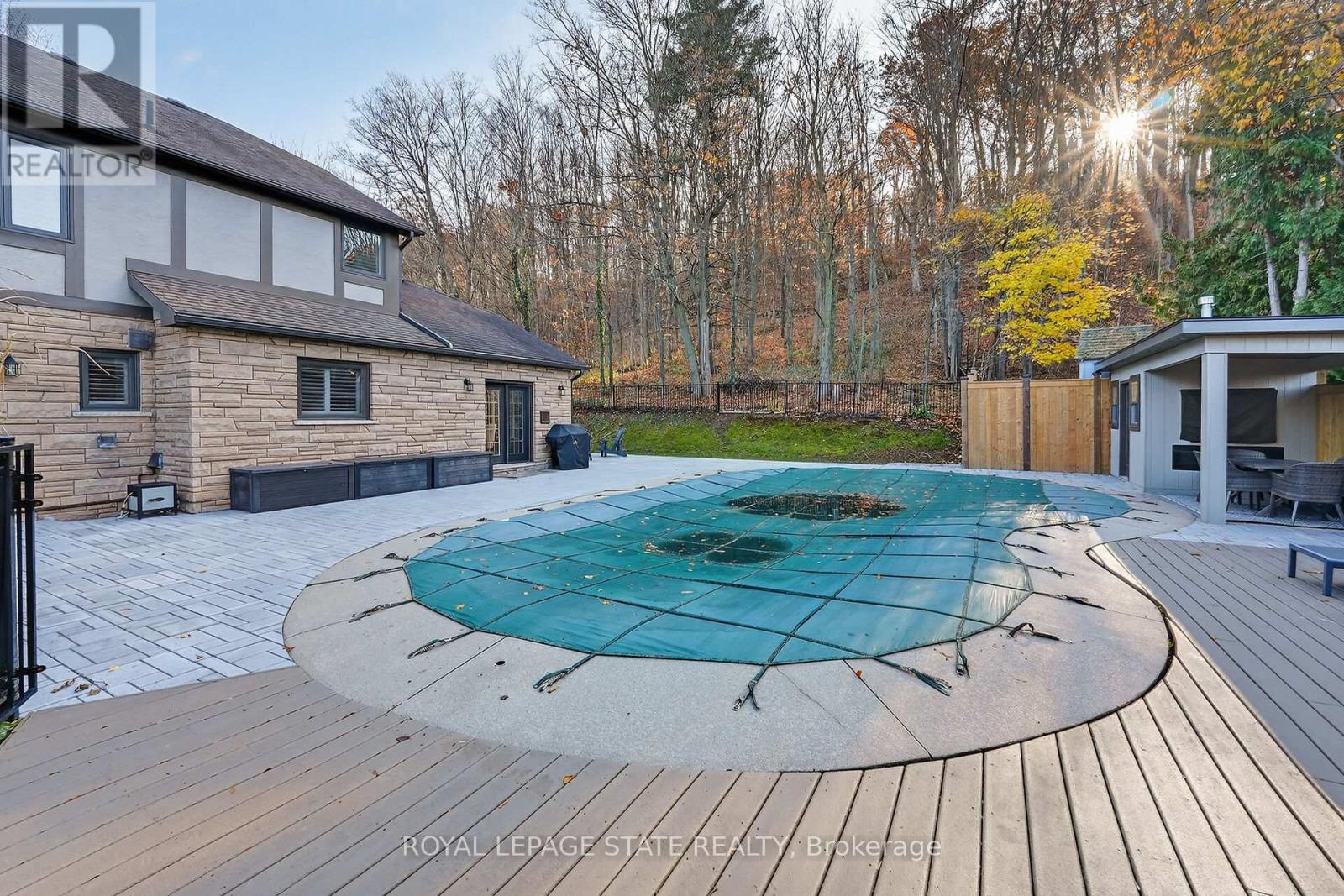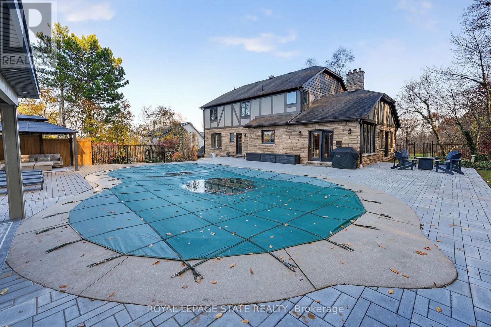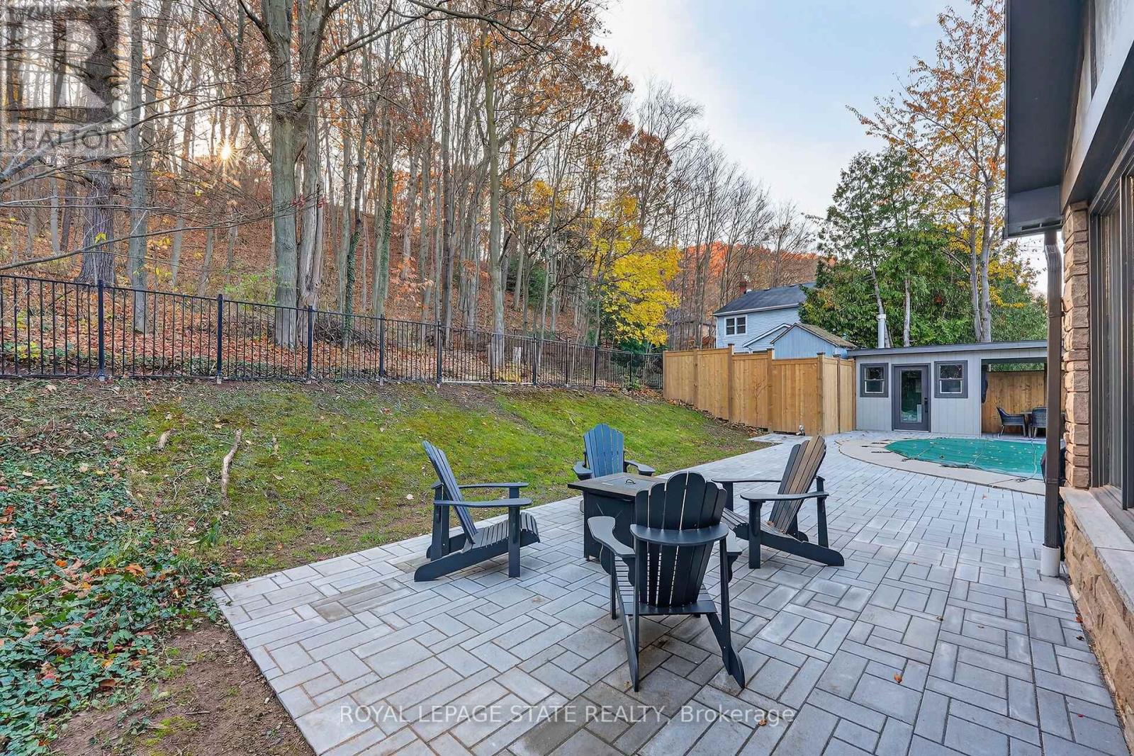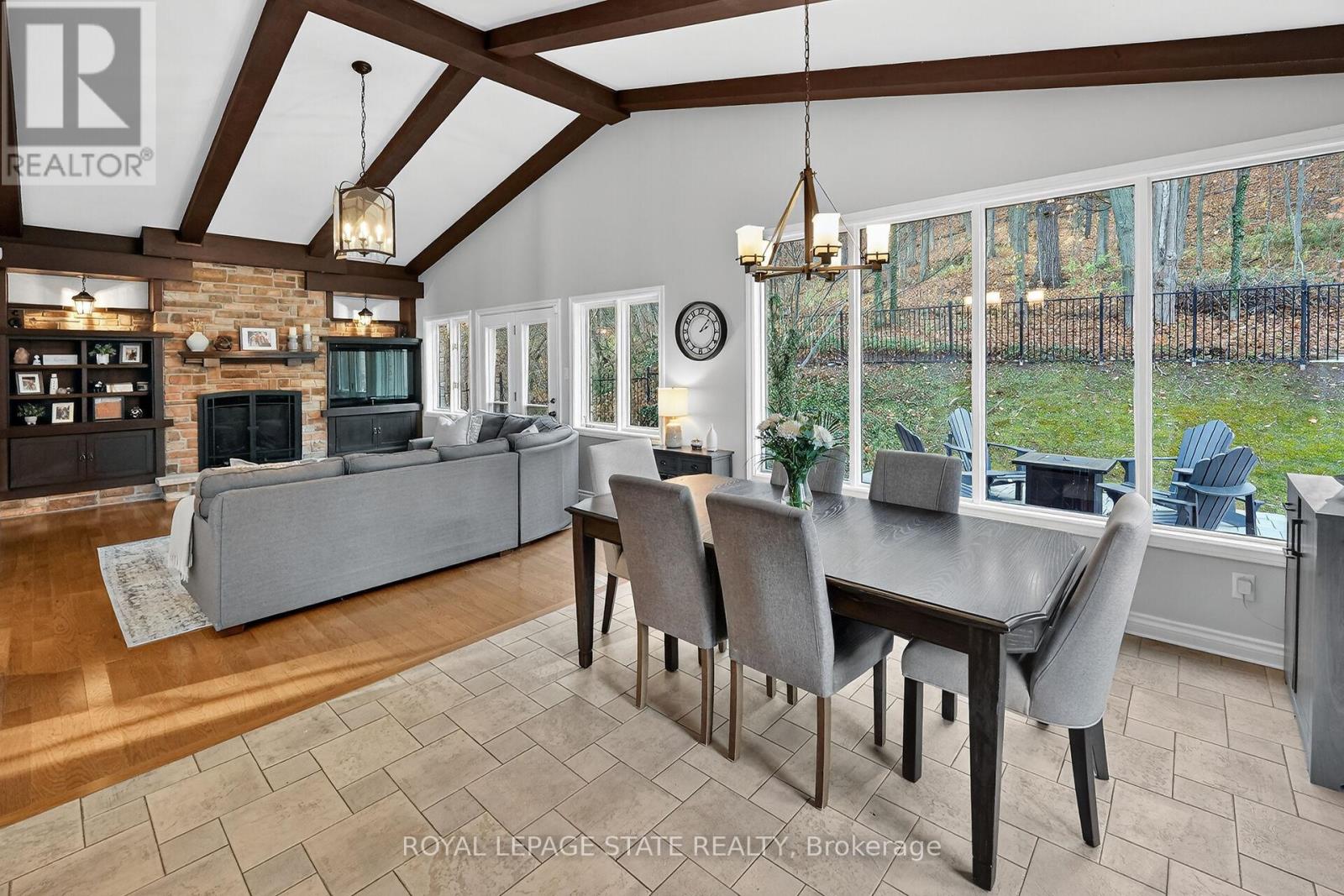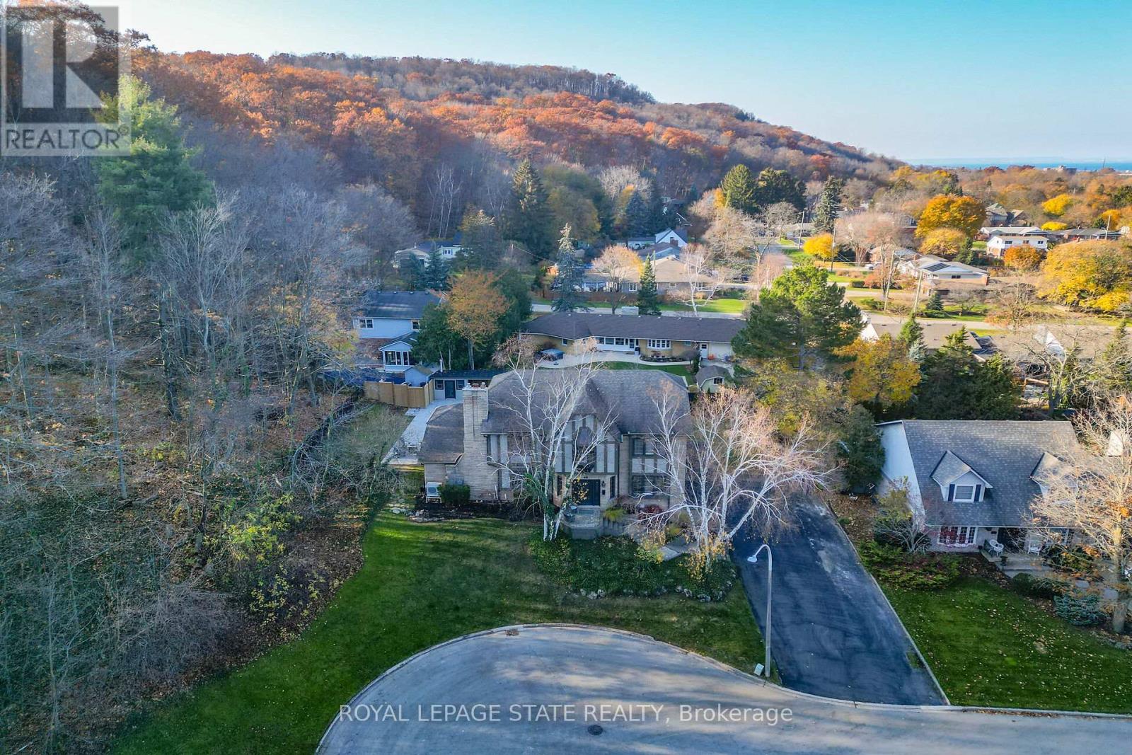Executive Niagara Escarpment Home with Inground Pool & Full In-Law Suite - Located on a quiet cul-de-sac in one of Grimsby's most desirable neighbourhoods and walking distance to downtown, this exceptional home offers over 4,500 sq. ft. of finished space and more than 110' of Escarpment frontage. With an inground pool, stunning natural views, and a fully self-contained in-law suite, this is a rare opportunity. The main floor features a spacious foyer, formal dining and living rooms, a large office overlooking the backyard, and a spectacular Muskoka-inspired family room with wall-to-wall windows, cathedral ceilings, custom built-ins, and a fireplace. The family room flows into the dining area and a well-appointed kitchen with extended-height cabinetry, granite counters, stainless steel appliances, a desk nook, and walk-in pantry. A powder room and laundry with backyard access complete this level. Upstairs, the primary suite offers outstanding Escarpment views, a 5-piece ensuite with soaker tub and glass shower, and a walk-in closet with custom organizers. Three additional bedrooms share a 5-piece bath. The former 3-car garage has been converted into a full in-law suite with open-concept kitchen/living area, 3-piece bath, and bedroom, plus a ventilated storage bay. Through the remaining garage bay is a spacious mudroom leading to the lower level with a rec room, guest area, and 3-piece bath-ideal as a games room, gym, or potential second in-law suite. The backyard, fully nestled into the Niagara Escarpment, offers exceptional privacy with an inground pool, multiple seating areas, gazebo, and a refreshed pool house with covered overhang. A rare blend of luxury, versatility, and natural beauty. (id:4555)