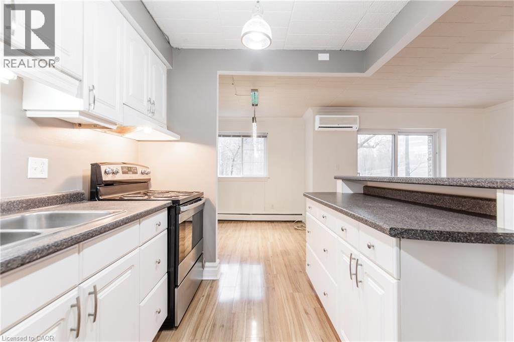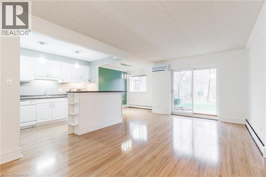 BEST LOCATION IN THE BUILDING! Discover the perfect blend of tranquility and convenience in this beautifully maintained main-floor 2-bedroom condo, ideally positioned with serene views of mature trees, a gentle creek, and your own private garden patio — perfect for morning coffee or an evening unwind. Peaceful, picturesque, and wonderfully quiet — a rare find in the heart of Grimsby. Enjoy the ease of having your dedicated parking spot just steps from your patio doors, making everyday living effortlessly simple. Bright interior with open-concept living, dining, and kitchen featuring laminate flooring throughout and updated cabinets. All appliances included. Living Room opens to the tranquil patio. In-suite laundry with washer/dryer. Updated 4-pc bath. Brand new A/C. Spacious primary bedroom plus versatile 2nd bedroom or office. Move-in ready with no disappointments. Maintenance fees include: Exterior maintenance, water, heat, hydro, basic cable TV, high-speed internet and parking. (id:4555)
