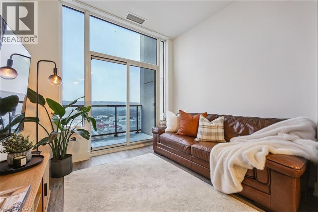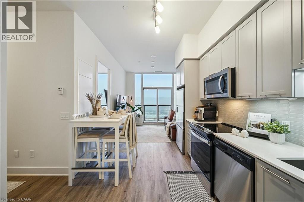 Bright, modern, effortless living with views that will take your breath away. Experience elevated lakefront living at #1901-385 Winston Road, a bright and beautifully finished 1(+ den) condo set high above Grimsby's waterfront community. This impressive top floor suite with 10 ft. ceilings is surrounded by natural beauty with Lake Ontario glistening to the north of the building and the Niagara Escarpment rising to the south, providing breathtaking views . Step inside and immediately feel the openness created by expansive windows featuring southern exposure giving an abundance of natural light. The modern kitchen flows seamlessly into the living space, creating the ideal layout for relaxing, hosting, or working from home. The versatile den is perfect as a home office, guest space, fitness nook, or storage zone, giving you flexibility that adapts to your lifestyle. Convenience comes built-in with in-suite laundry, private locker and TWO underground parking spots, a rare and valuable perk in condo living. Professionally maintained and showing A++, this home is move-in ready and truly stands out. Situated in the heart of Grimsby-on-the-Lake, you'll step outside to scenic waterfront trails, boutique shops, cafés, dining, and quick access to the QEW for effortless commuting. (id:4555)
