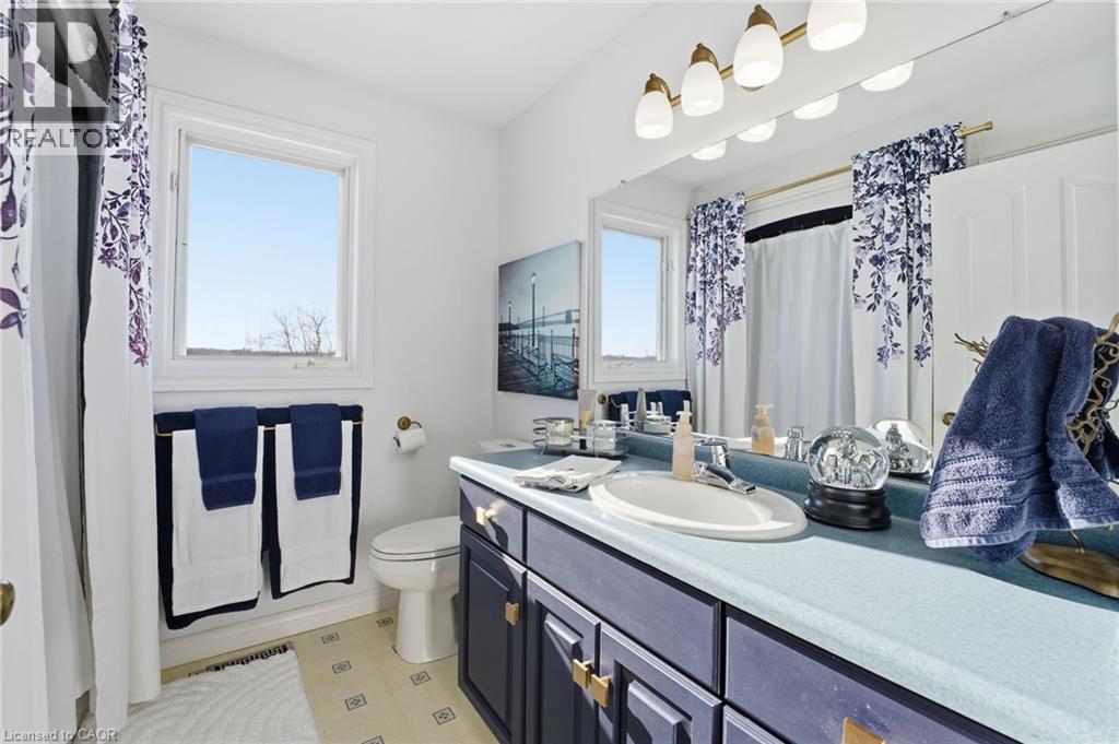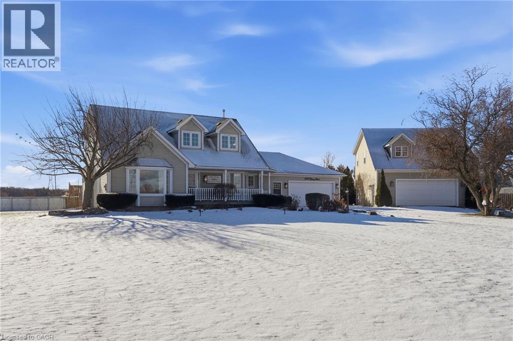 Set on nearly 20 acres with dramatic front and rear views, this custom-built 2,190 sq. ft. Cape Cod–style home offers the perfect blend of space, craftsmanship, and country living just minutes from Smithville and Grimsby. The main floor features a welcoming foyer with hardwood floors and oak staircase, a luxurious kitchen with granite counters, dark maple cabinetry, double pantry, breakfast island and eat-in area, a sunken family room with gas fireplace, separate living/dining room with bay window, private den with French doors, oversized laundry/mudroom, and a 2-piece bath with granite counter. Upstairs offers three bedrooms including a primary suite with vaulted ceiling, walk-in closet, and 4-piece ensuite with whirlpool tub and separate shower. The finished lower level includes a gym, fourth bedroom, rough-in for bath, and ample storage. Outdoor highlights include an interlock walkway, multi-level cedar deck with flower boxes and pool deck. Completing the property are a double attached garage and a separate two-storey double garage with workshop and finished upper-level office or games room, its own heating and A/C, and walkout to a deck—an exceptional rural retreat with unmatched versatility. (id:4555)