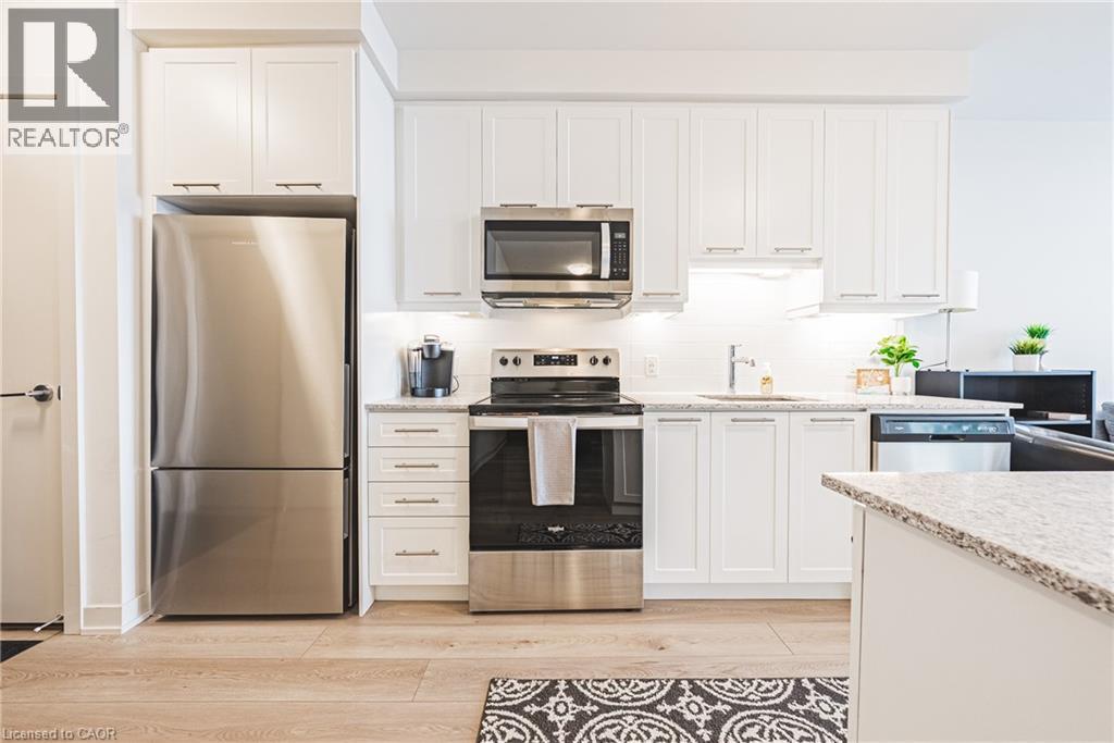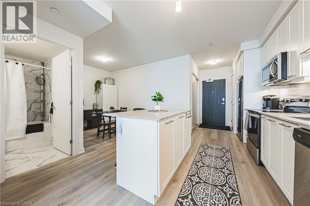 Enjoy breathtaking views of Lake Ontario and the Niagara Escarpment from this bright, modern condo in a highly desirable waterfront community. Just steps from the beach, local shops, cafes, dining, and scenic lakefront trails. Huge upgrade with two parking spots logistically positioned side by side and steps from the elevator. This thoughtfully designed unit features sleek laminate flooring throughout with massive island, stainless steel appliances, and an open-concept layout. The spacious den offers versatility—ideal for dinette and entertaining, guest room, office or nursery. Floor-to-ceiling windows flood the space with natural light, creating a warm and inviting atmosphere. Resort-style building amenities include a fully equipped gym, yoga/spin studio, self-serve pet spa, rooftop terrace with BBQs and indoor/outdoor dining, a sky lounge with fireplace, stylish party room, indoor bicycle storage, 24-hour concierge, and security cameras for peace of mind. Located just 30 seconds from the QEW for easy commuting. Includes one parking spot and one locker. Costco, Metro, LCBO, coffee shops, and restaurants are just across the street. Ideal for first-time buyers, professionals, or investors looking for lifestyle and location in one unbeatable package. (id:4555)