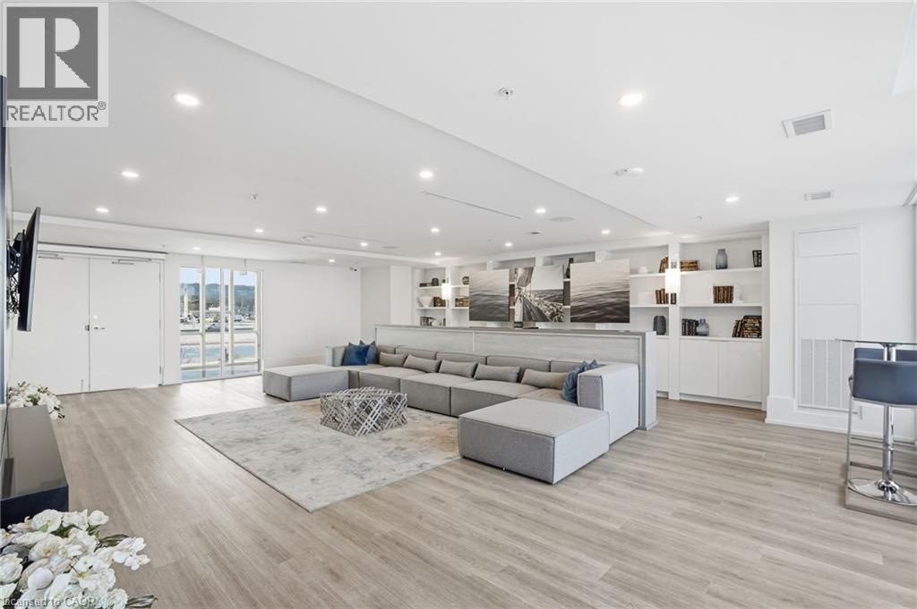 3rd floor suite offering over 1100 sq. ft. of carpet-free living with 9’ ceilings, crown moulding, and wall-to-wall windows. Private 55 sq. ft. north-east facing balcony with open views of the pool and courtyard. Upgraded kitchen featuring a waterfall quartz breakfast bar, soft-close cabinetry, and stainless steel appliances. Includes in-suite laundry and smart thermostat with independent heating/cooling. Resort-style amenities include an in-ground pool, cabana, fitness centre, party/media rooms, and BBQ area. Comes with 2 owned parking spaces and 2 lockers, plus EV charging in visitor parking. Pet-friendly building close to highways, future GO Train, waterfront trails, shopping, dining, schools, and beaches. (id:4555)