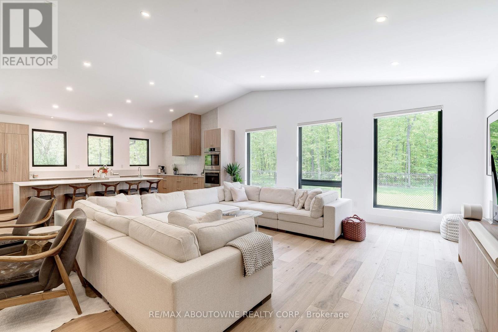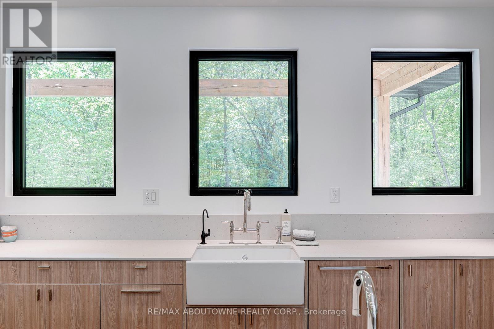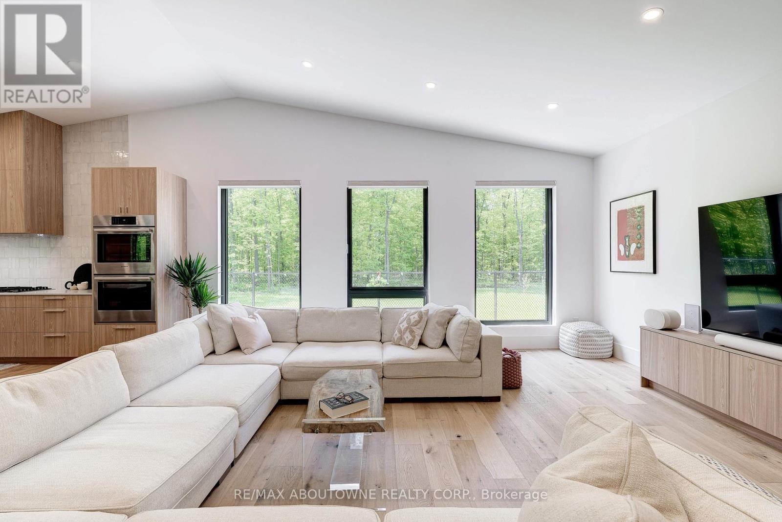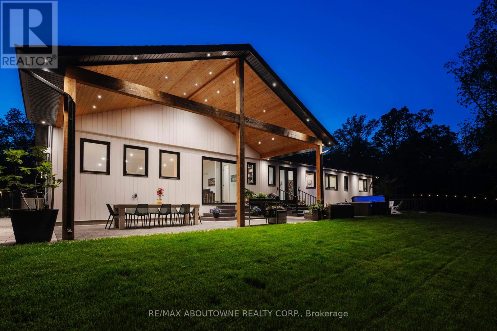 Welcome to The Forest Home! Live inside a painting with the changing seasons. A breathtaking custom estate nestled on 6.39 acres of pristine, wooded landscape, offering the ultimate in privacy, serenity, and refined living. Designed as a forever home and built to exacting standards, this exceptional bungalow is a masterclass in modern elegance and timeless design. From the moment you arrive, the home's architectural symmetry impresses with two double garages flanking the stately entrance for a dramatic and balanced curb appeal. Inside, approximately 3,250 sq. ft. of thoughtfully curated main floor living unfolds in an airy, open-concept layout. Inspired by Scandinavian simplicity and elevated farmhouse style, every space feels grounded in nature yet luxuriously appointed. Impeccable finishes and high-end upgrades are found throughout; too numerous to list here, but detailed in the attached brochure. Every detail has been carefully considered: from the gourmet kitchen, walk in pantry, coffee bar, every bathroom having a different theme with imported tiles and the rustic wood stove that boasts the most amazing roaring fires! Outdoor living is equally spectacular. Enjoy alfresco dining on the covered patio, unwind in the outdoor lounge, or soak in the hot tub under the stars and an entertainers dream and a private retreat in one. The expansive walk-out basement with separate entrance offers limitless potential for an in-law suite, studio, or bespoke entertaining space. The long driveway accommodates guests with ease, while the brand-new 40 ft well and septic system provide long-term peace of mind. Siding onto the 40 Mile Creek, this estate feels worlds away yet is just 6 minutes from charming downtown Grimsby and 30 minutes from the renowned wineries, boutiques, and fine dining of Niagara-on-the-Lake and Niagara Falls. With easy access to Hamilton and Burlington, this location perfectly balances seclusion and convenience. (id:4555)